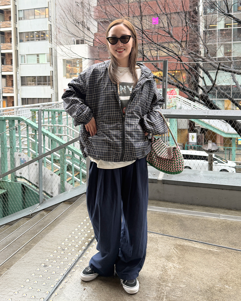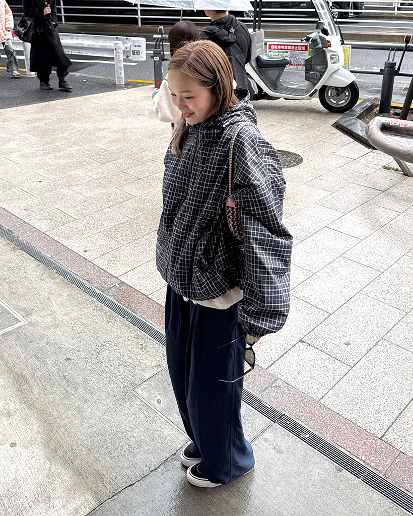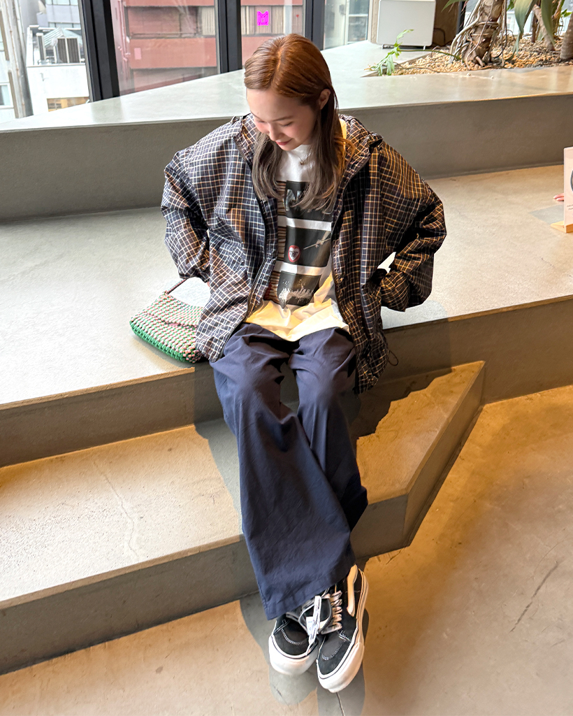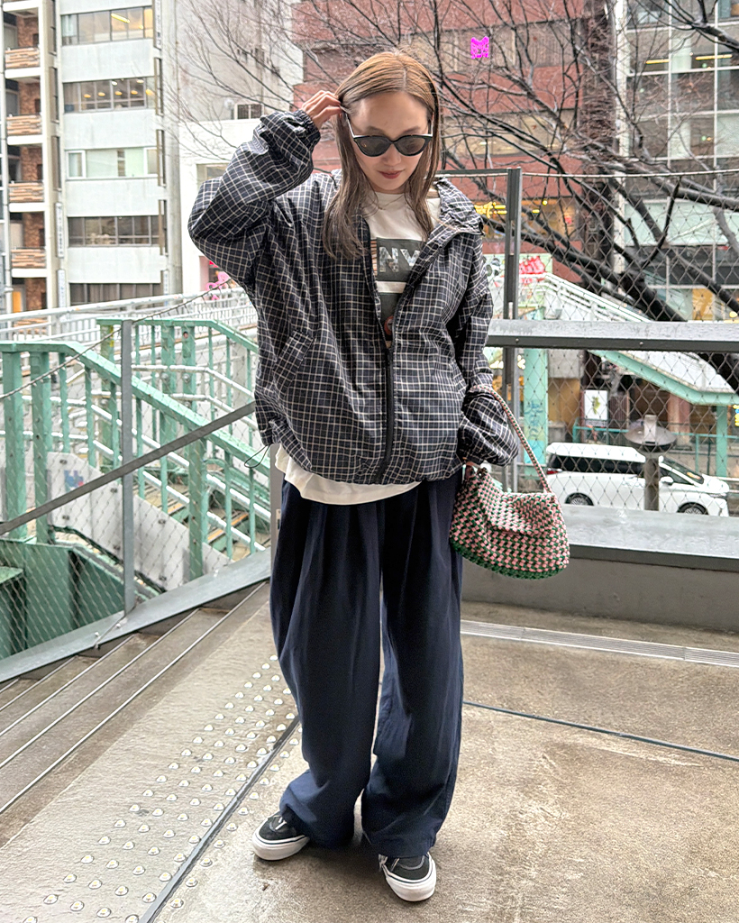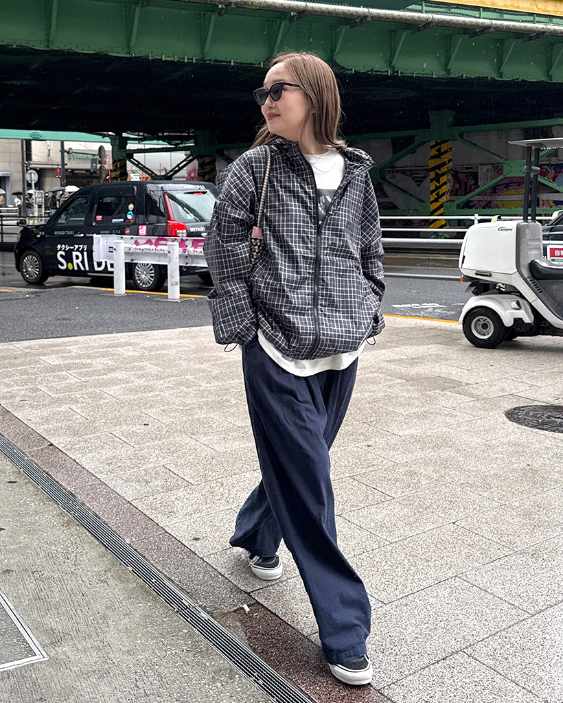 チェックフードウィンドブレーカー