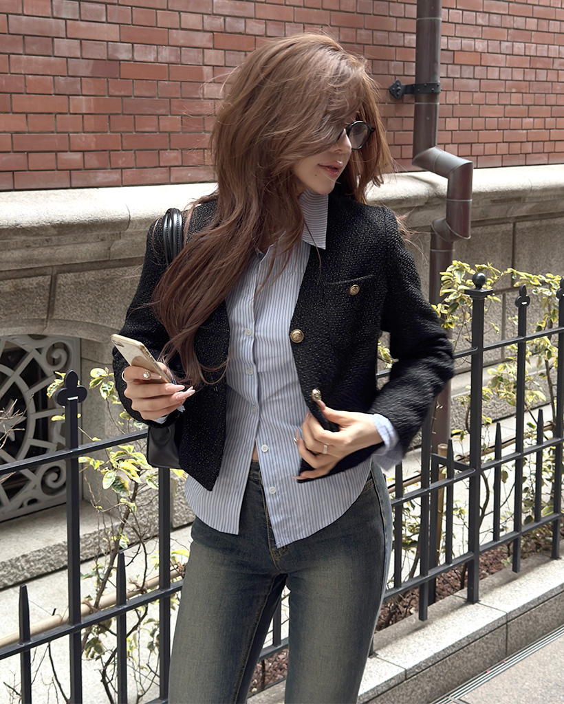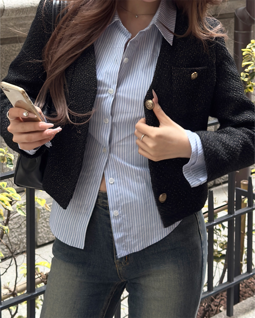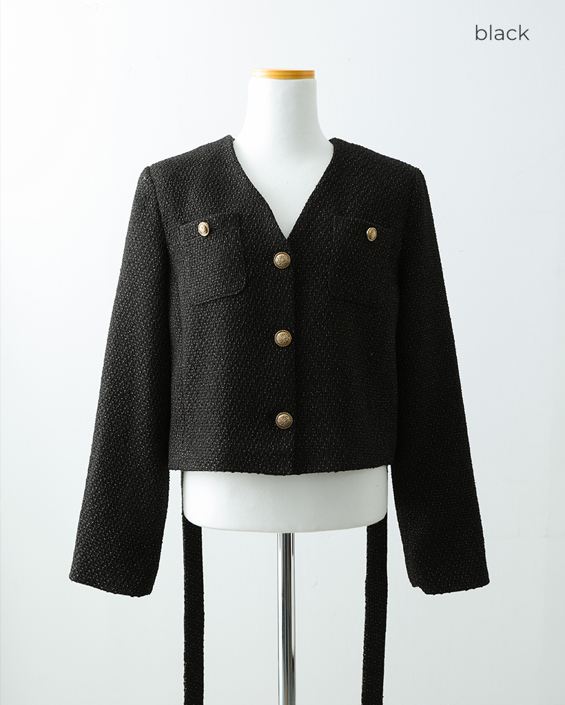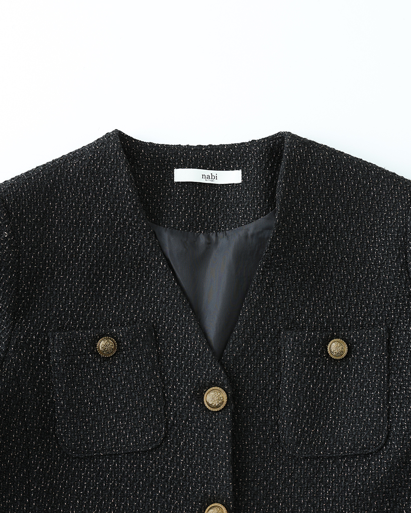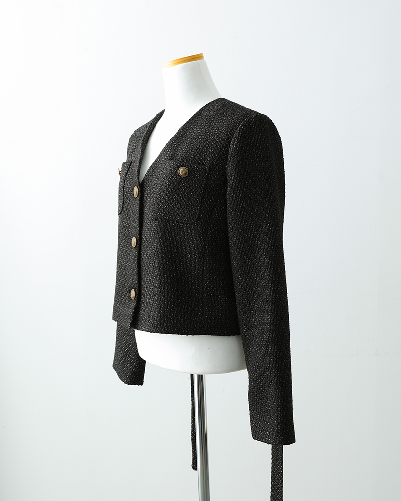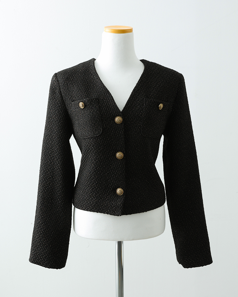 (ORIGINAL) Vネックゴールドボタンツイードジャケット