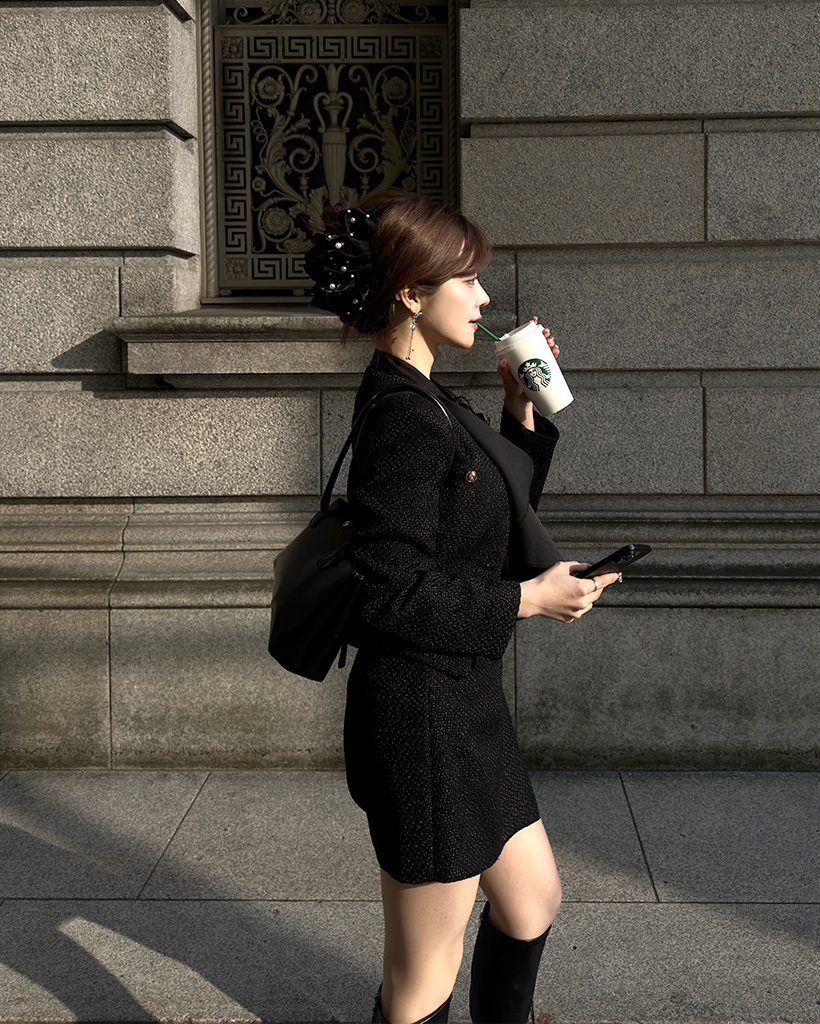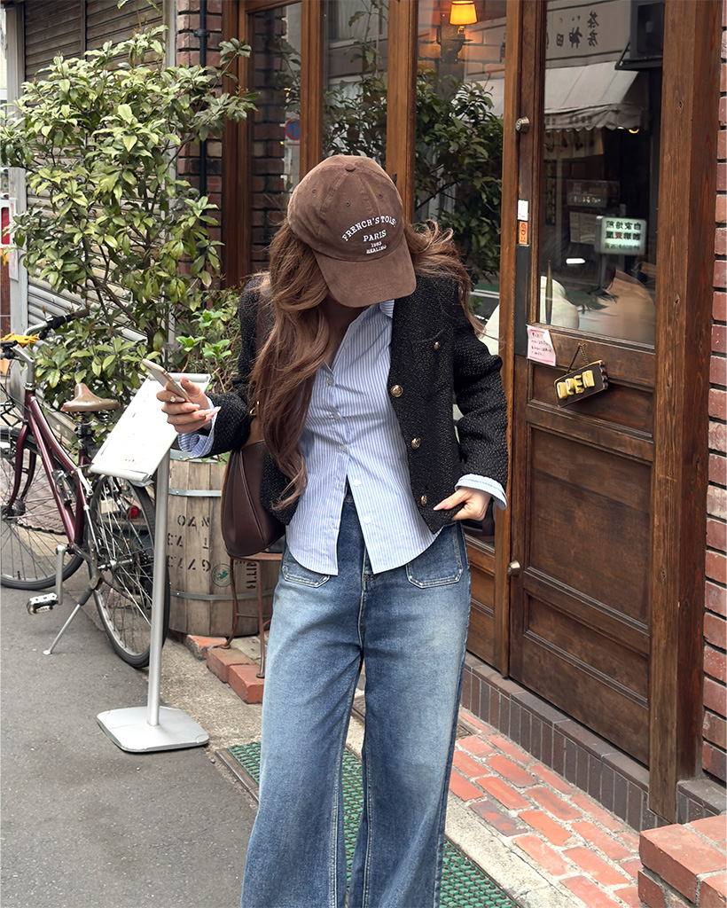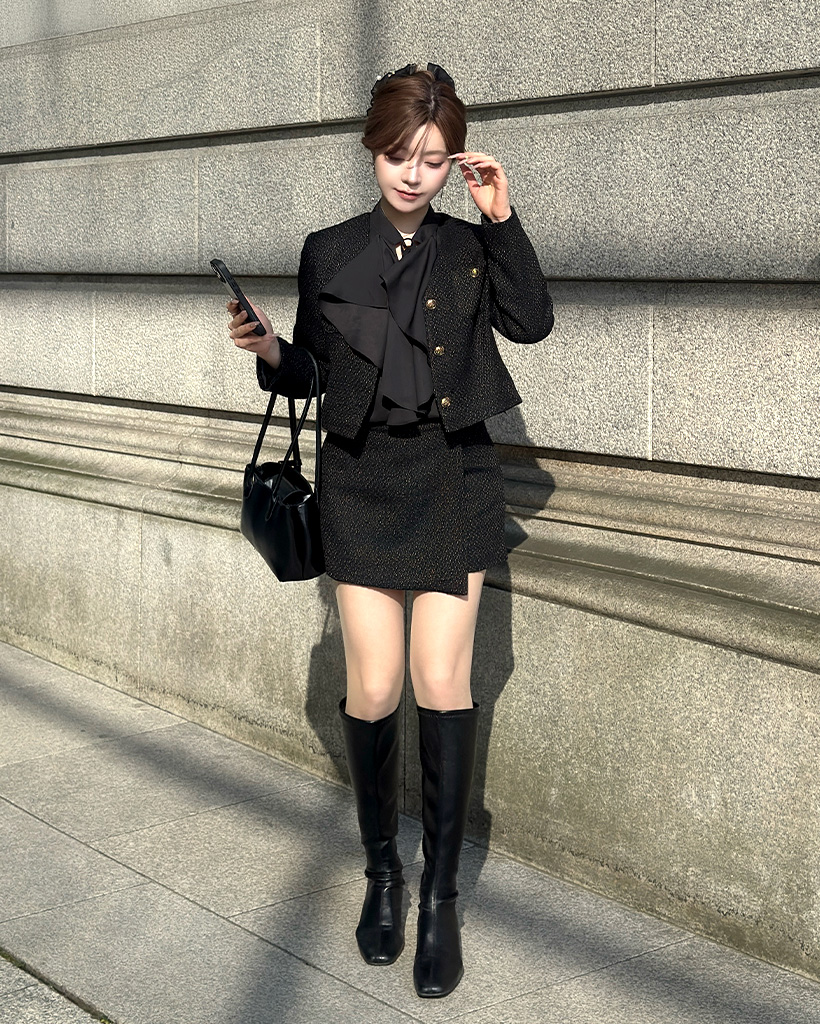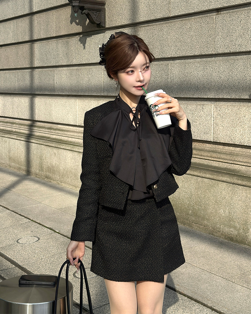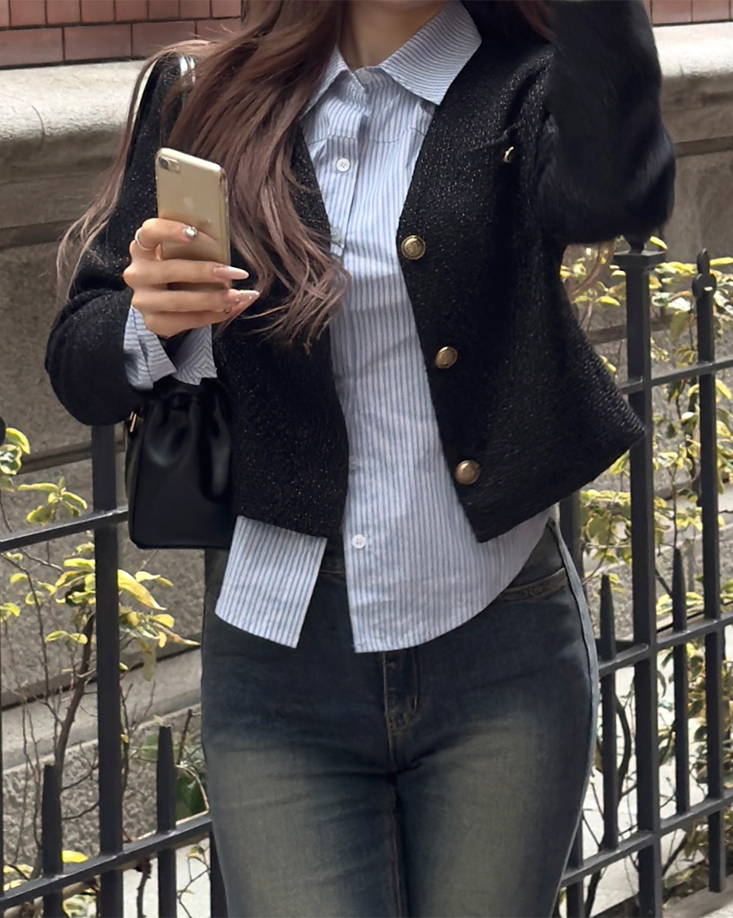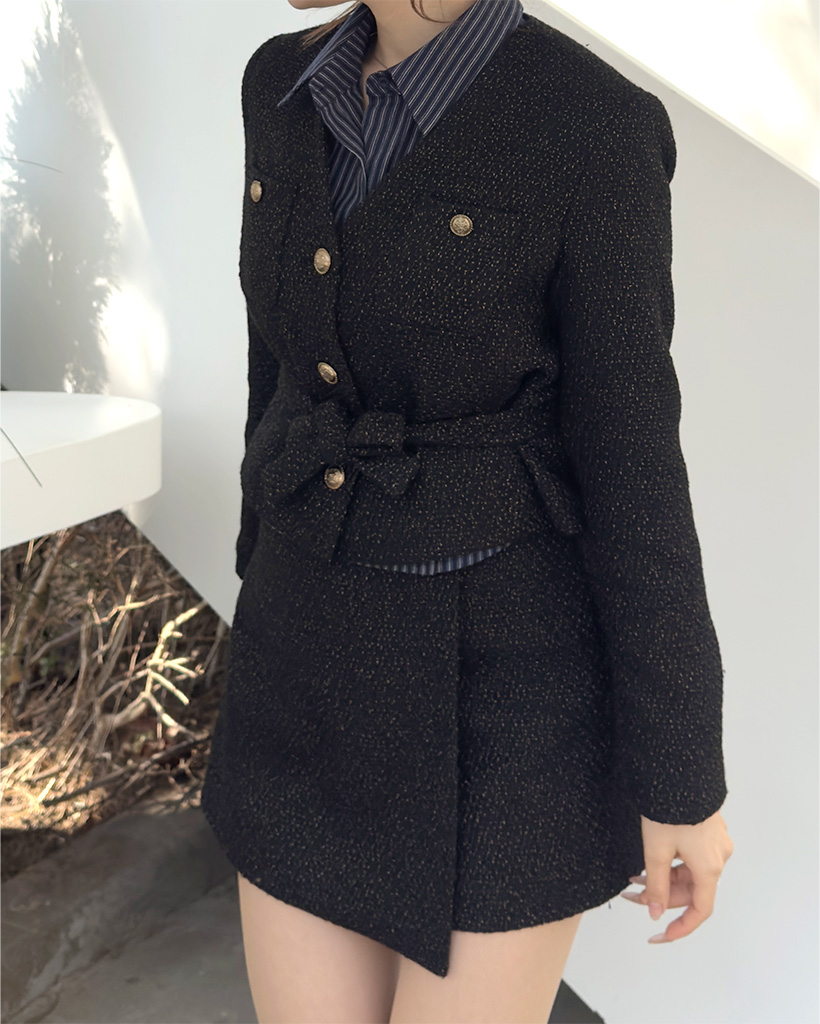 (ORIGINAL) Vネックゴールドボタンツイードジャケット