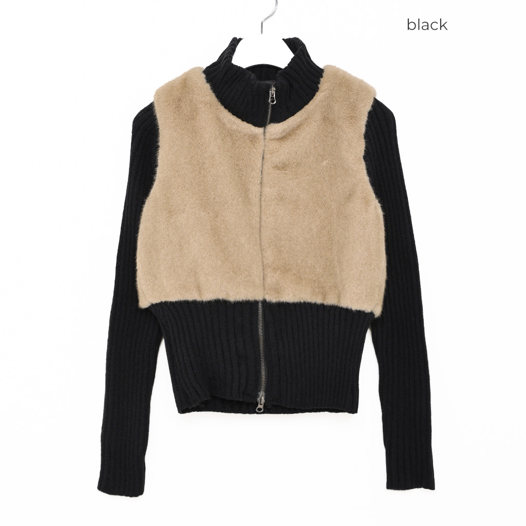 ファーバイカラーリブ2wayジップアップ