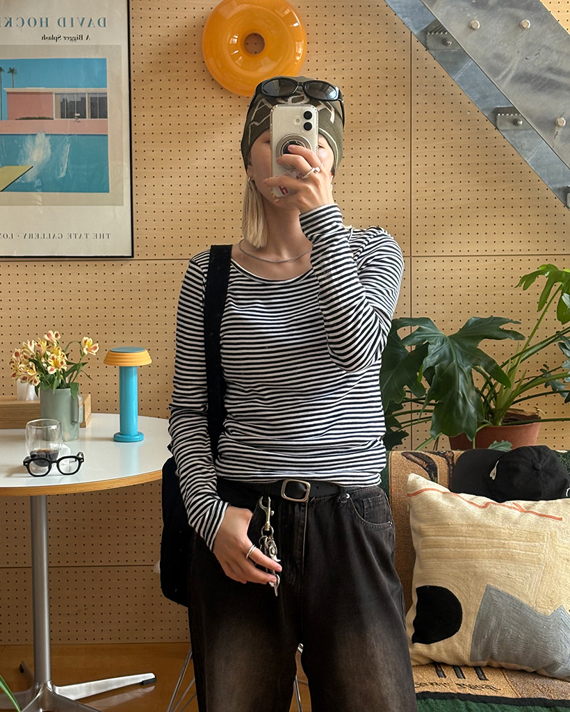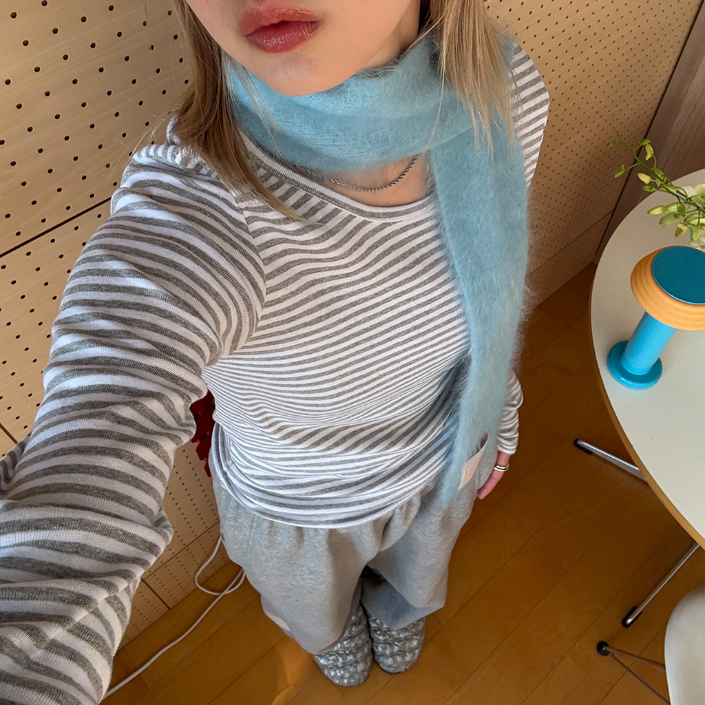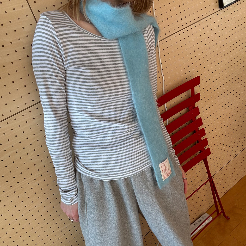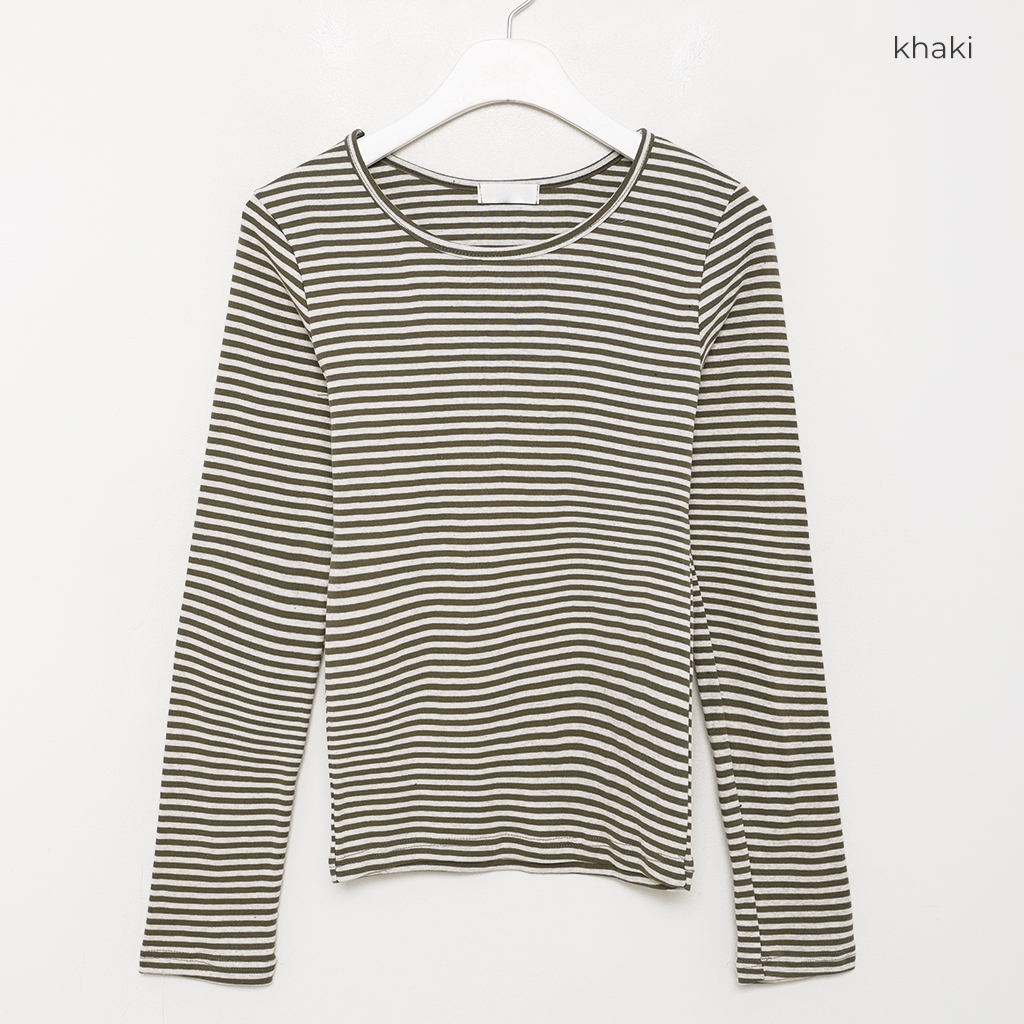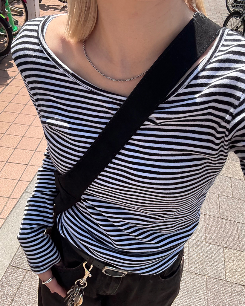 ヘンリーネックボーダーロングTシャツ