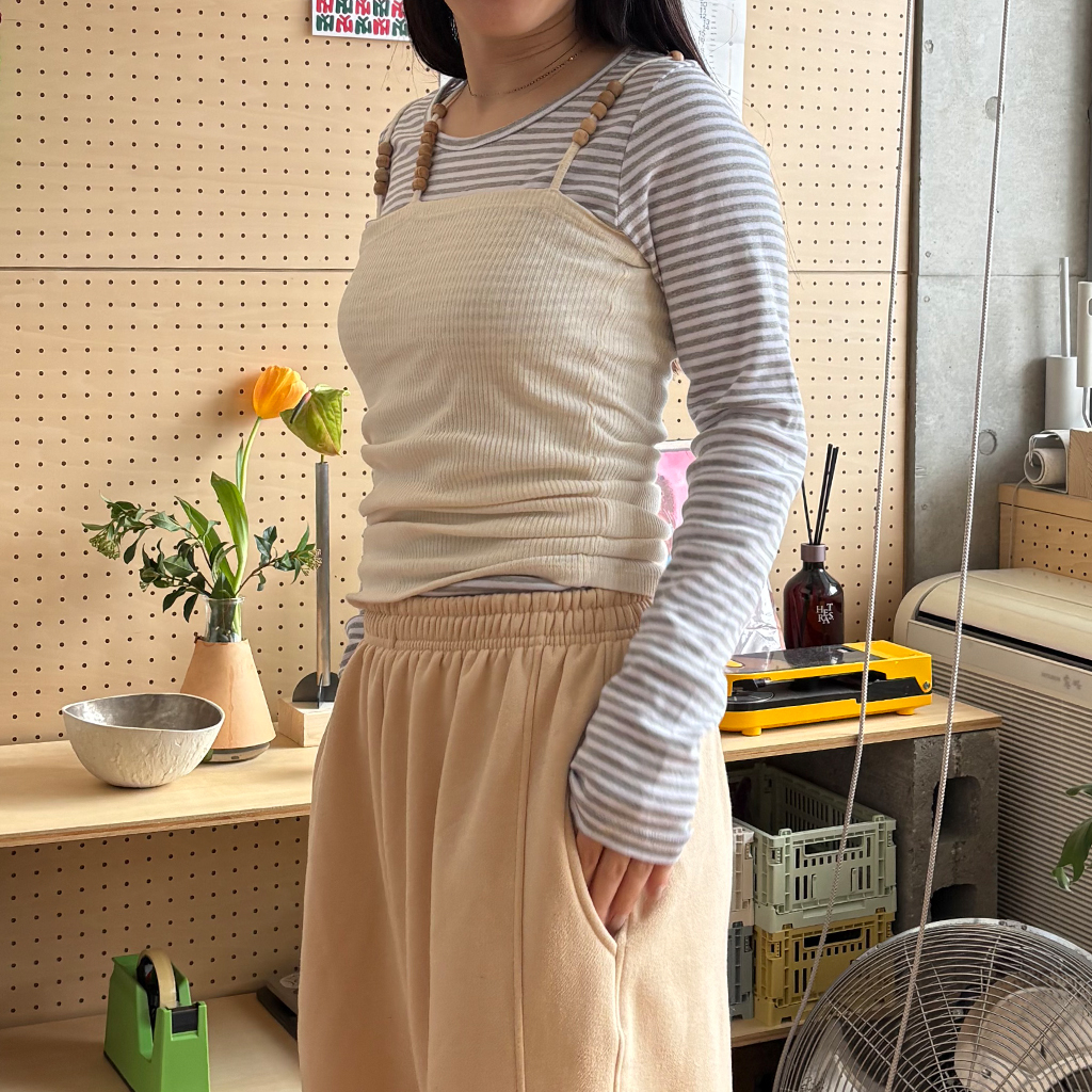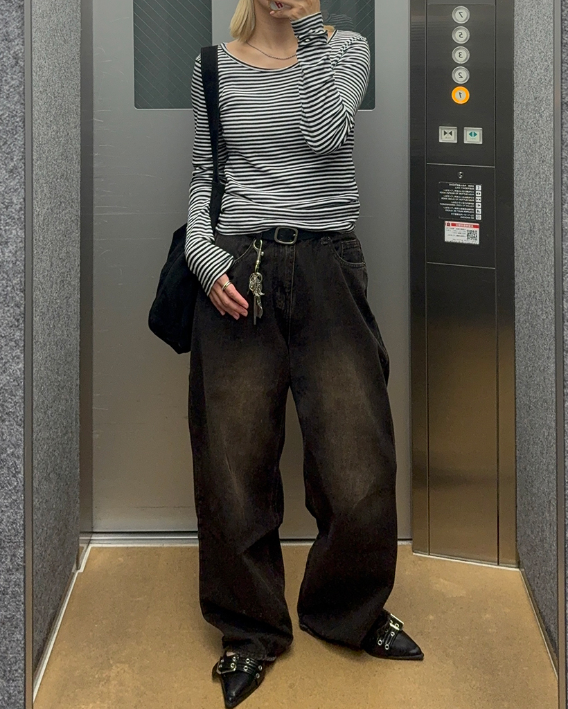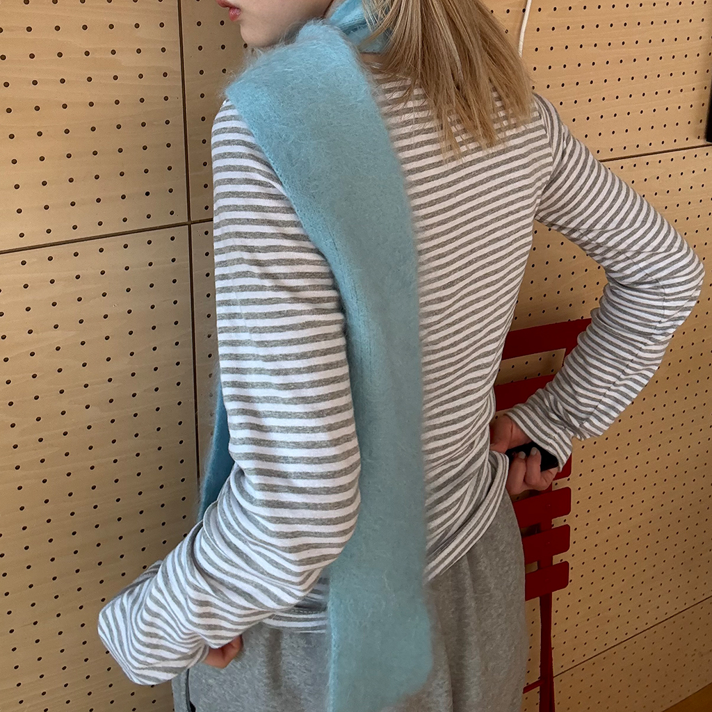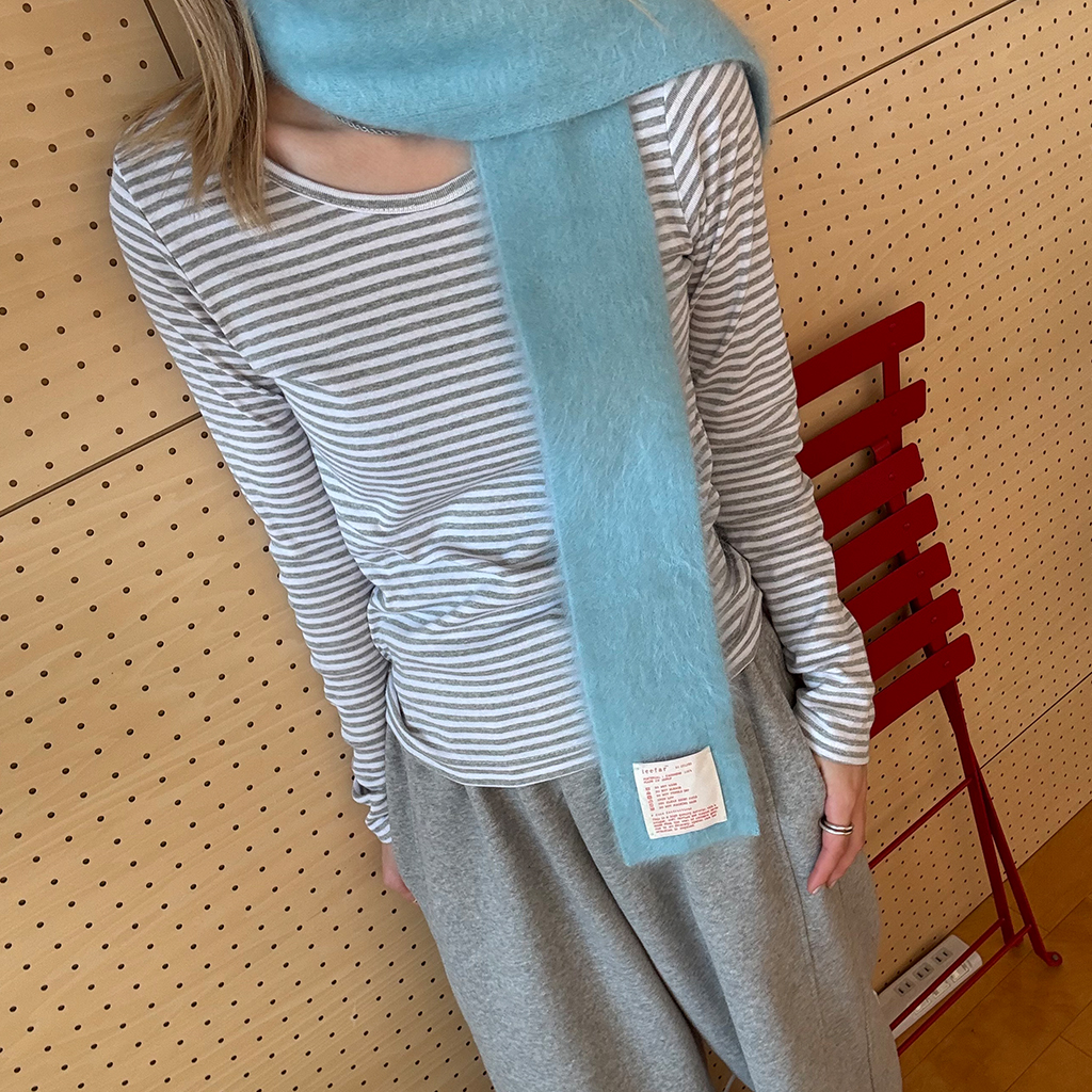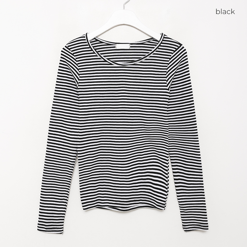 ヘンリーネックボーダーロングTシャツ
