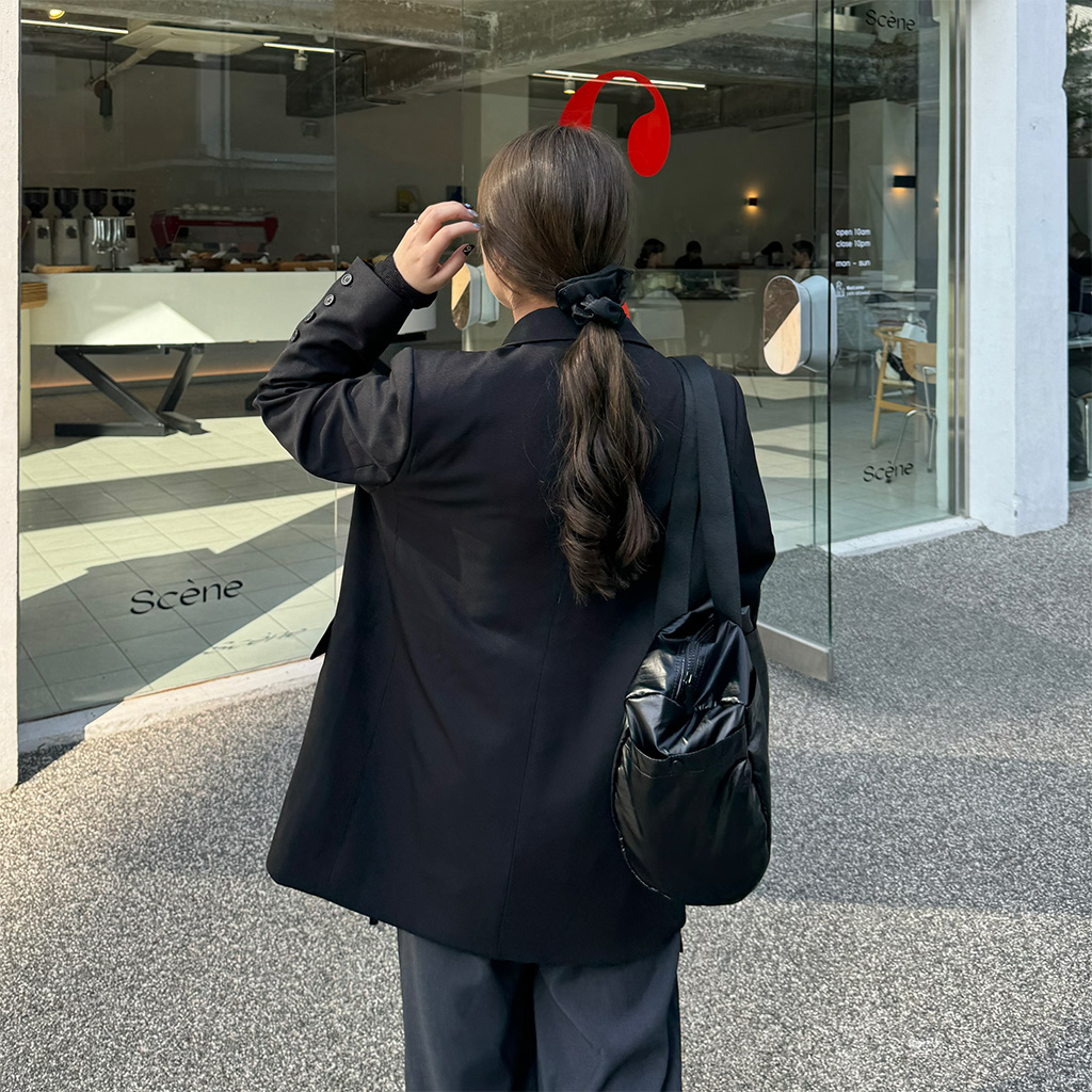 #マユ#157cm#ウェーブ#モノトーン#ユニセックス#カジュアル
