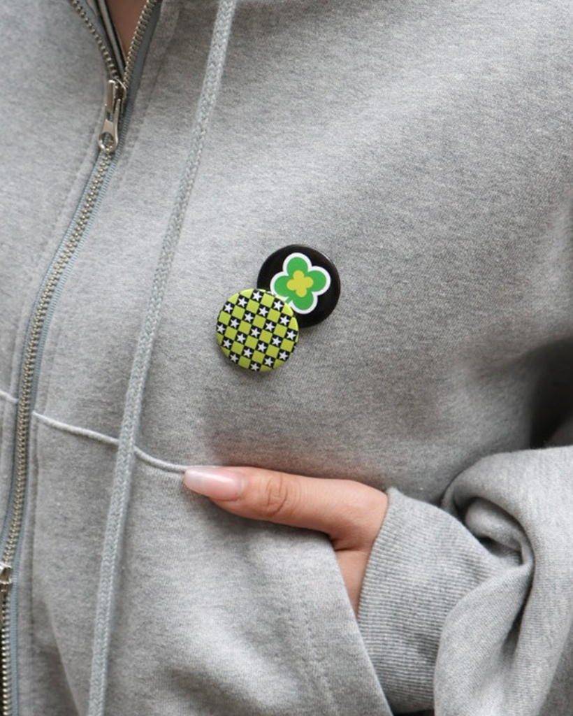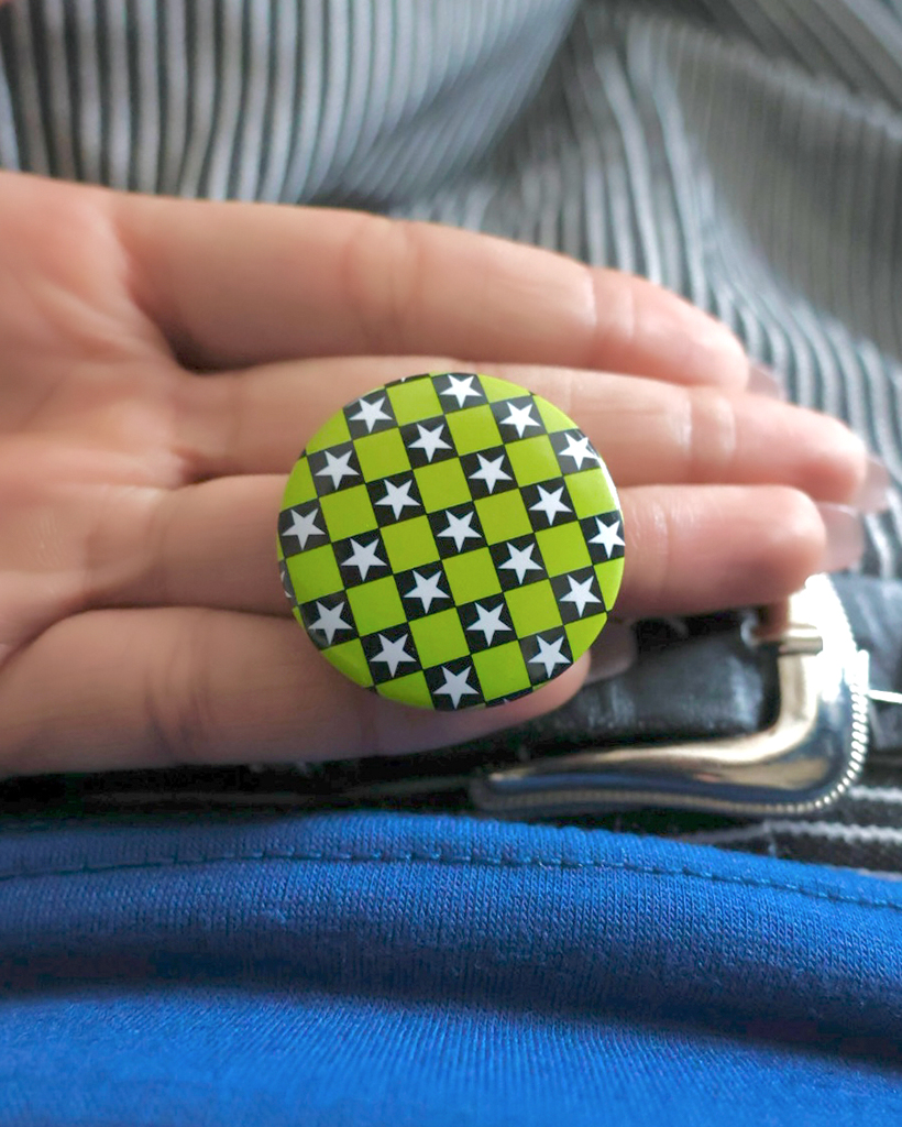 ブロックチェックスター缶バッチ