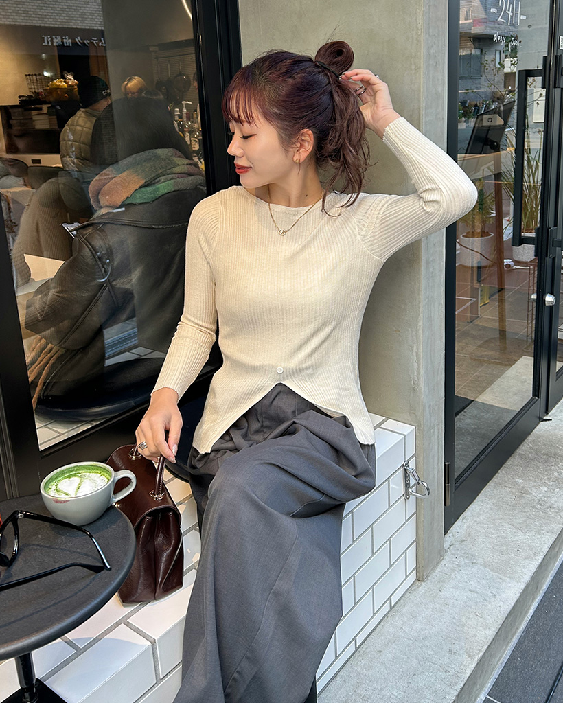 スリットボタンリブニット