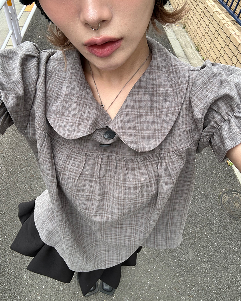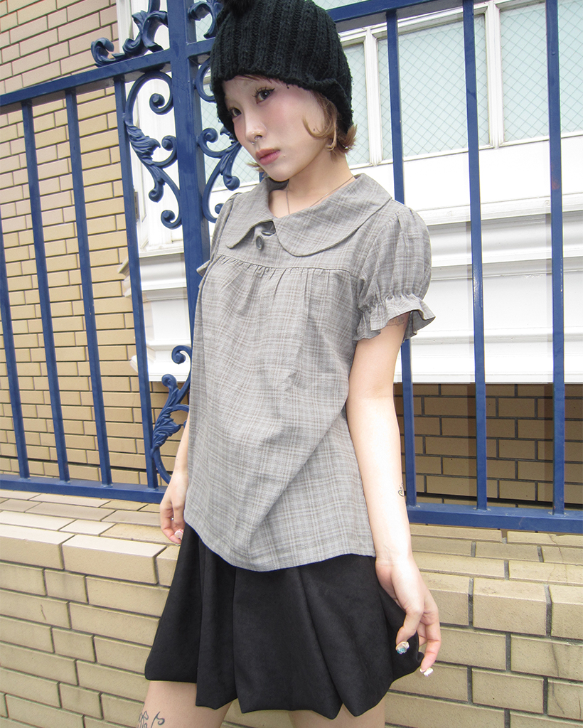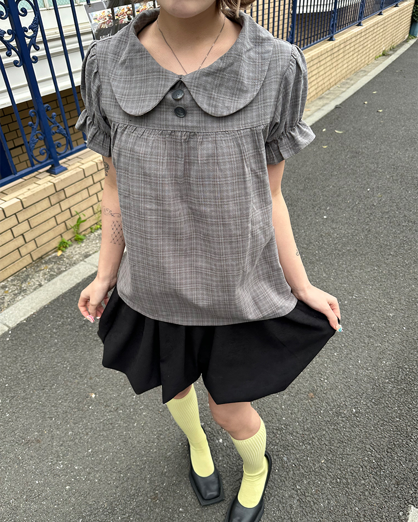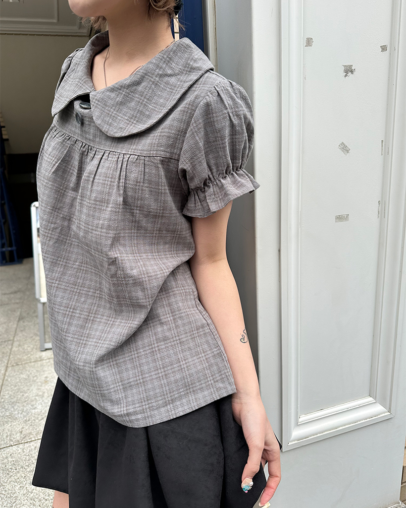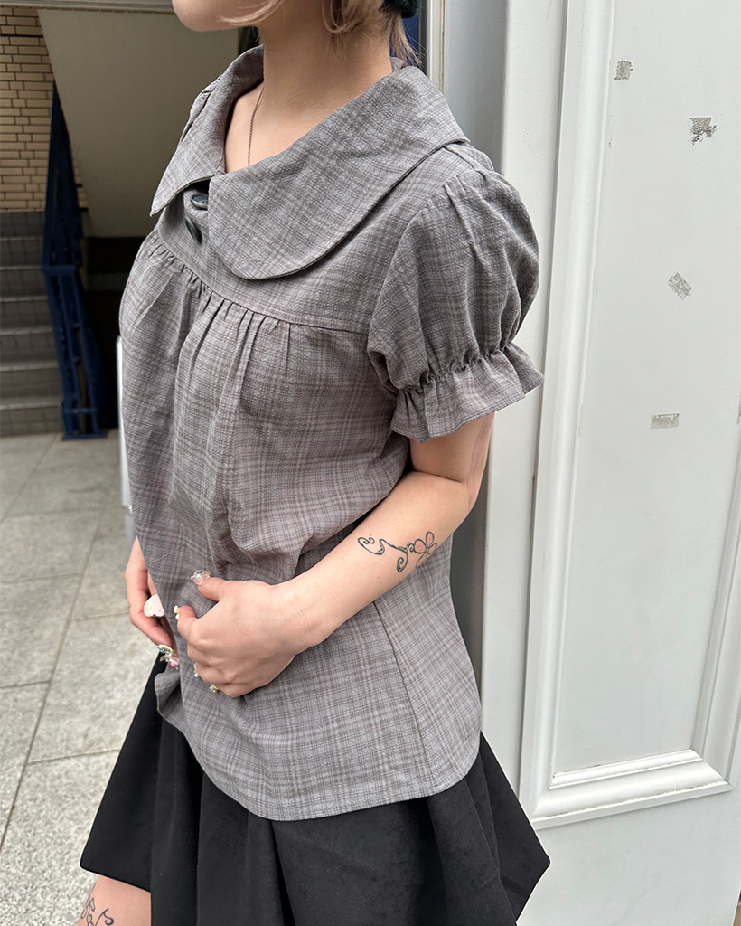 ボタンバストギャザーヨークパフブラウス