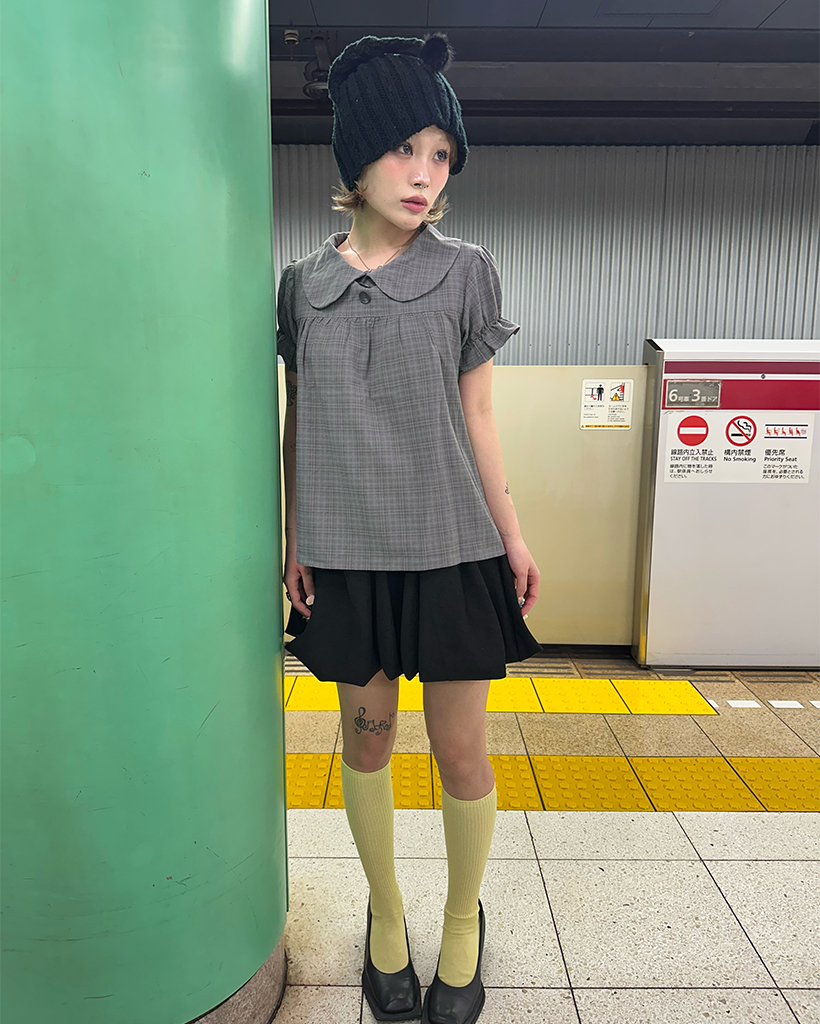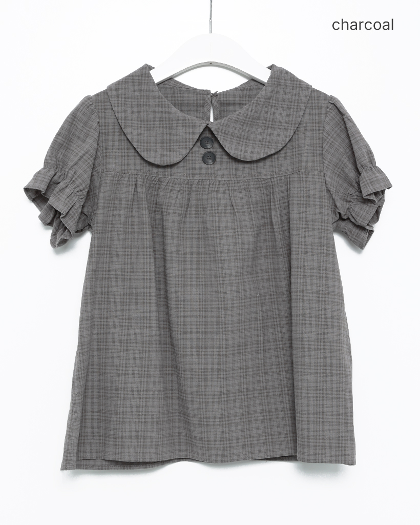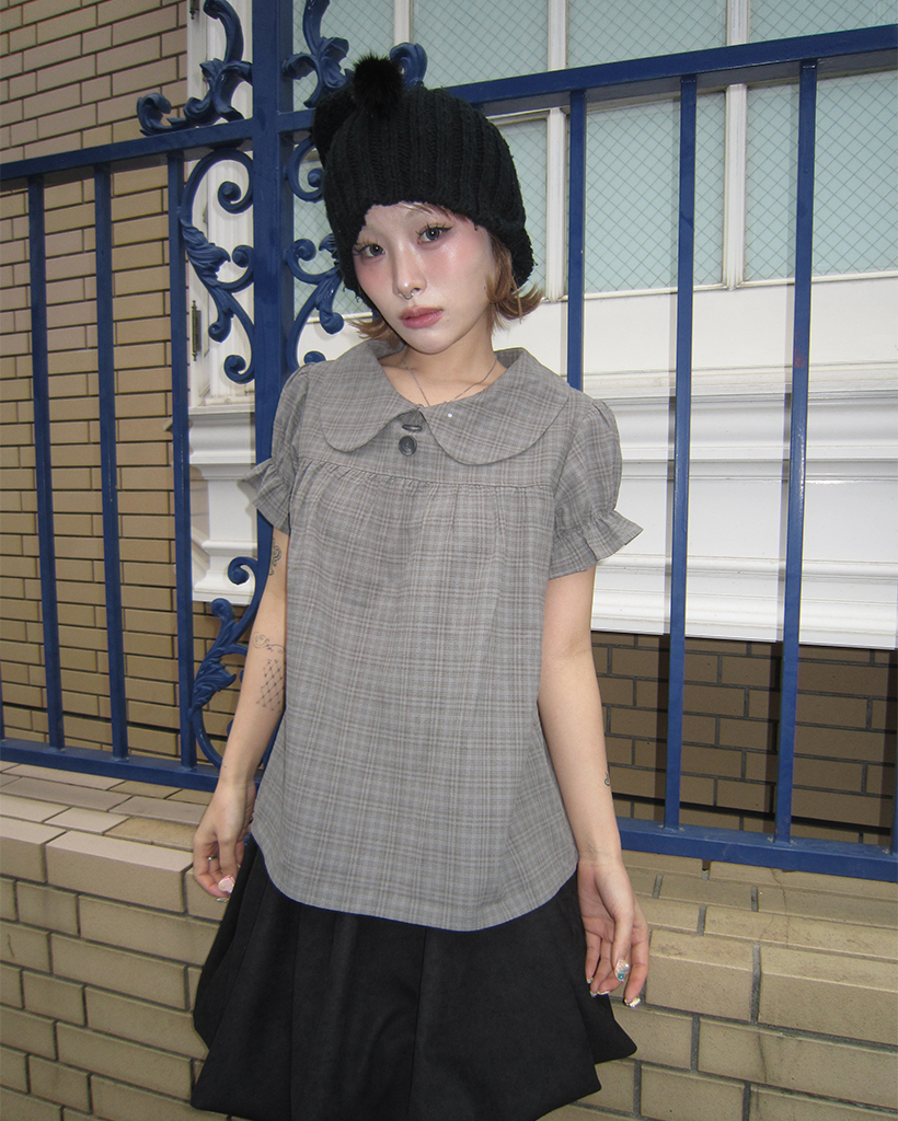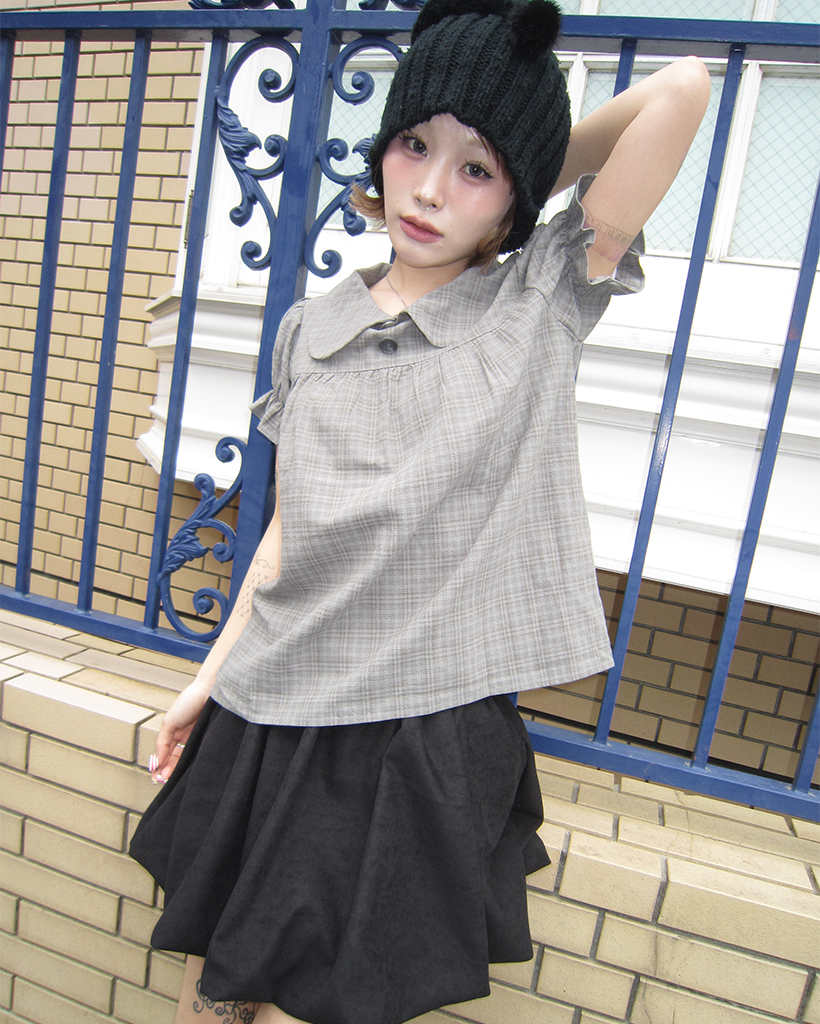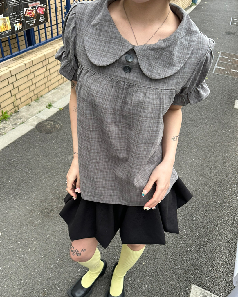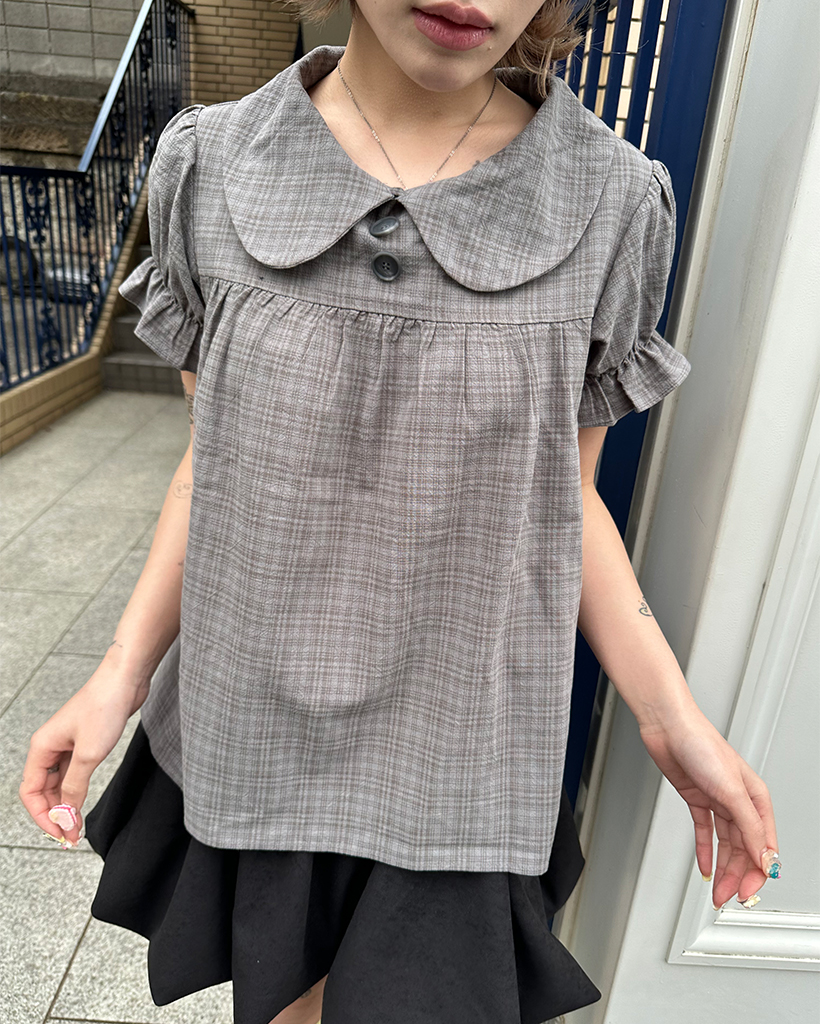 ボタンバストギャザーヨークパフブラウス