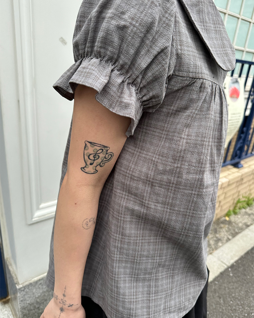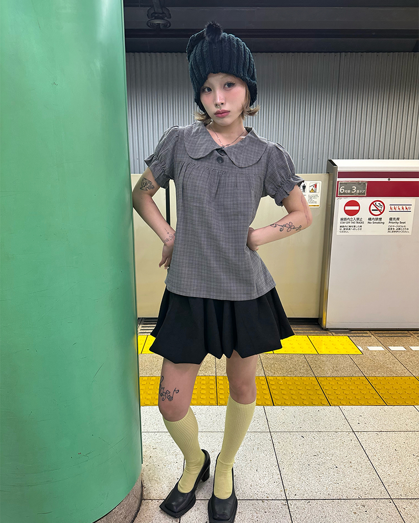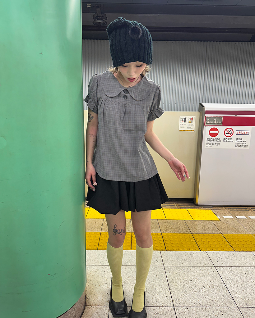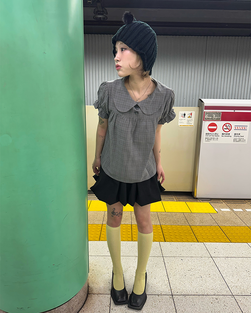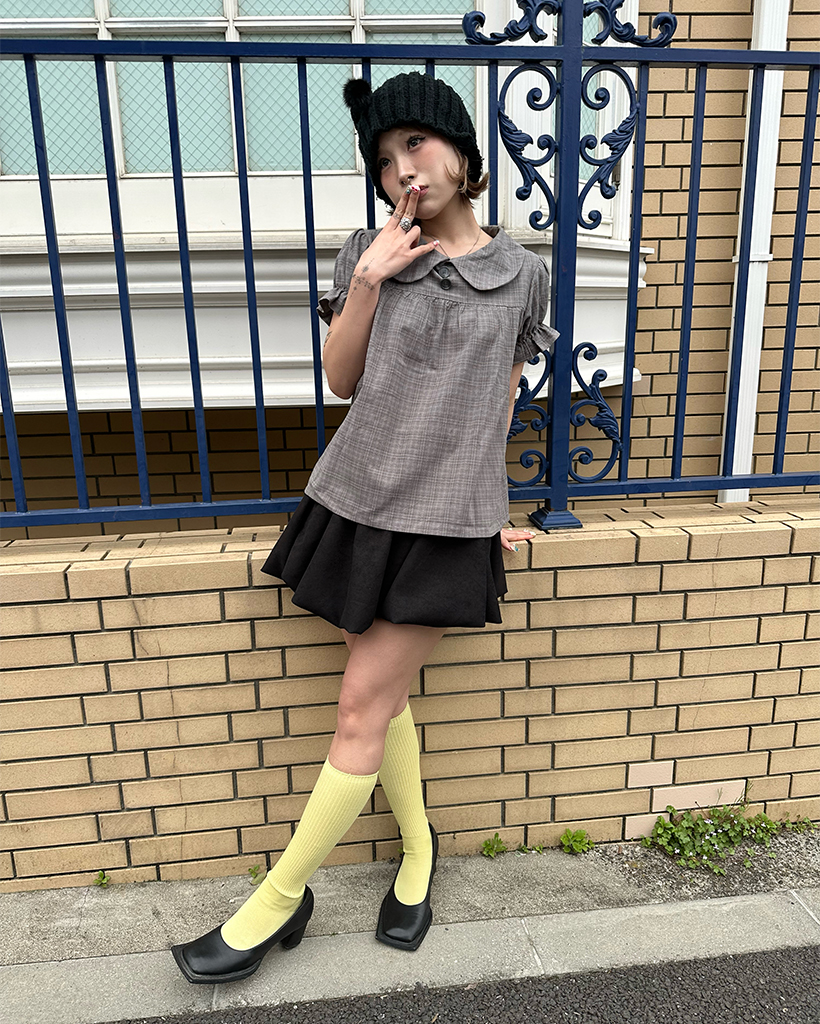 ボタンバストギャザーヨークパフブラウス