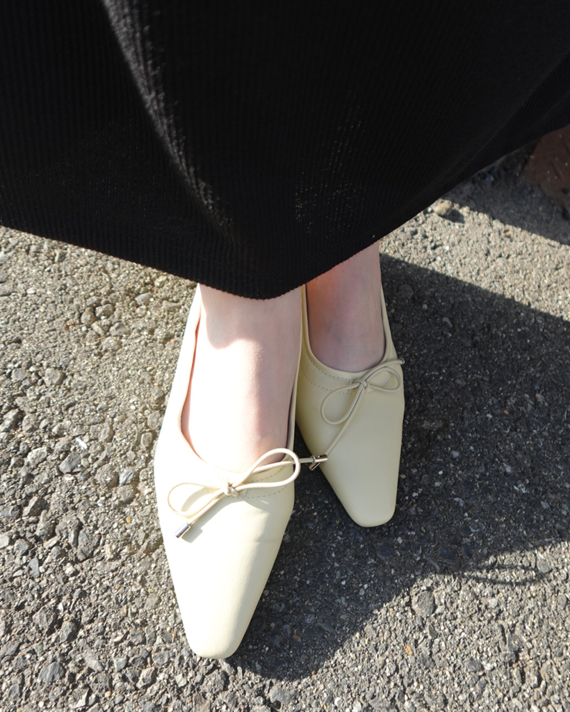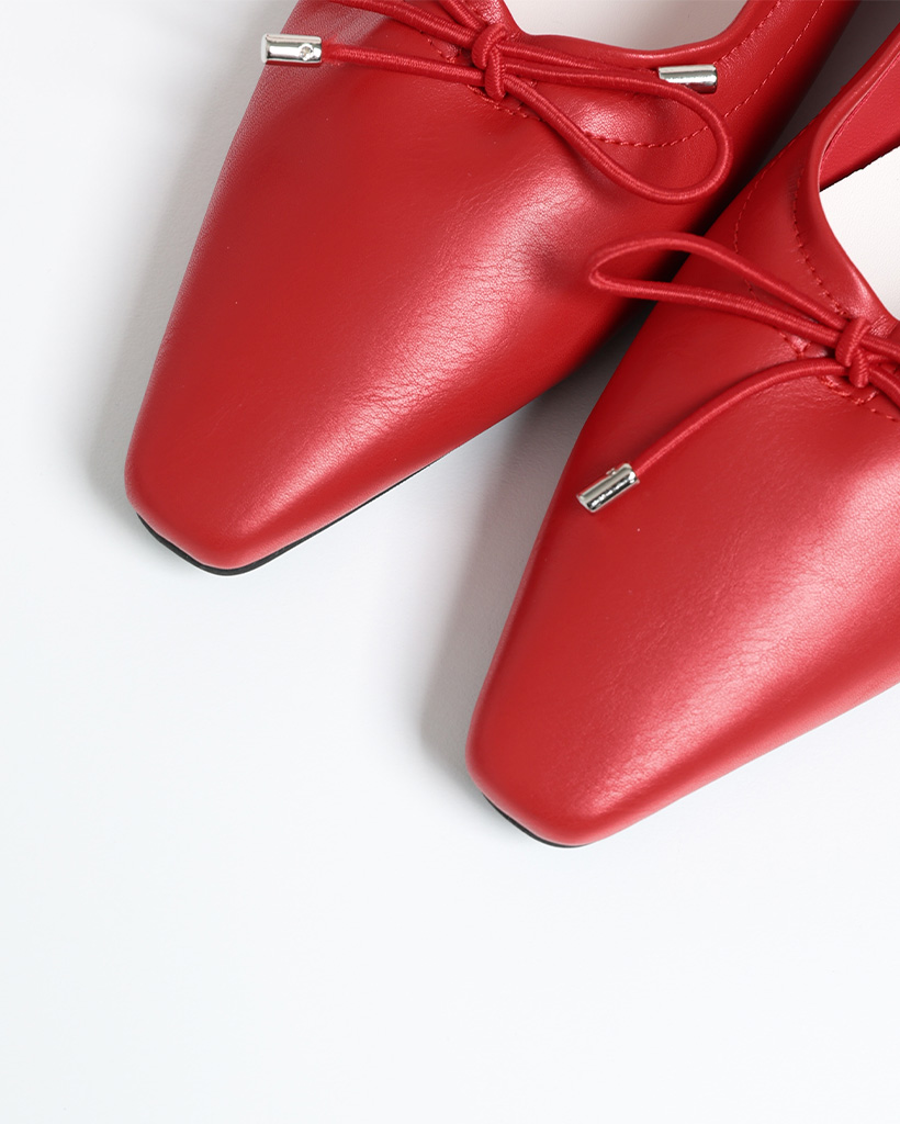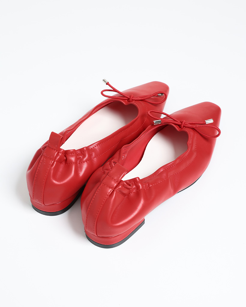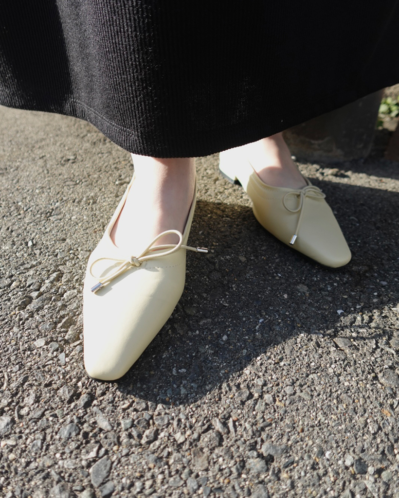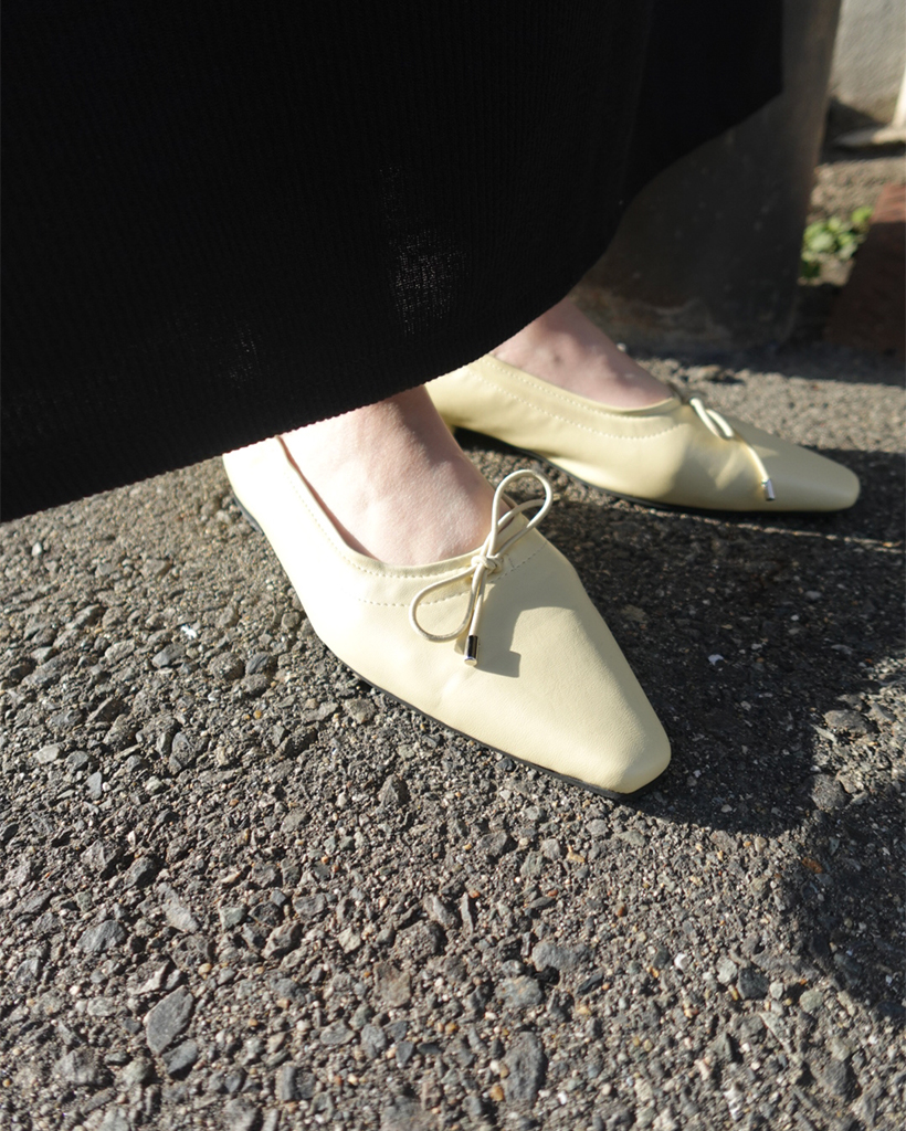 スクエアトゥリボンフラットシューズ