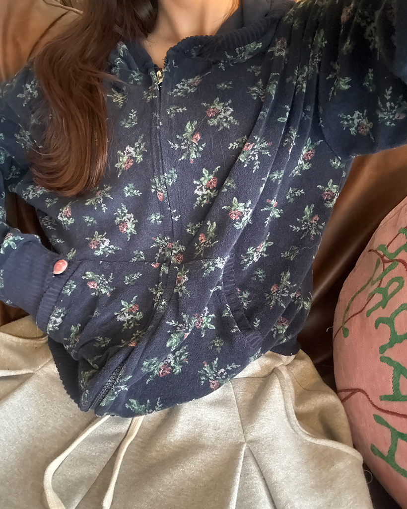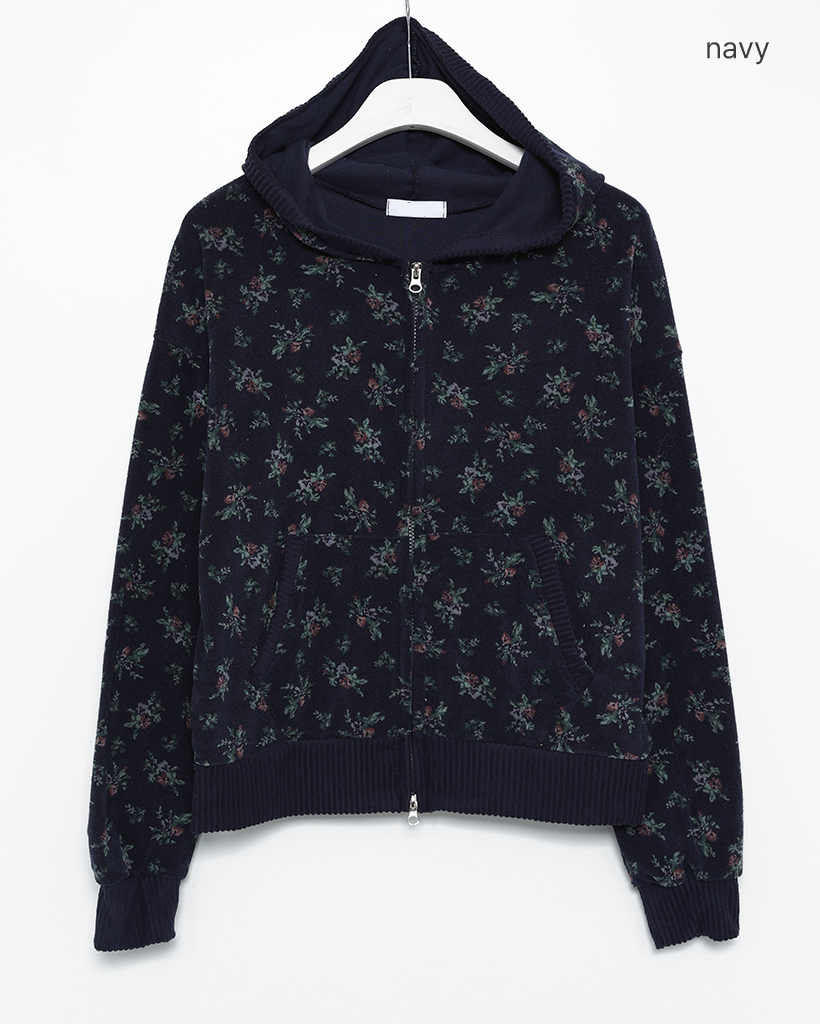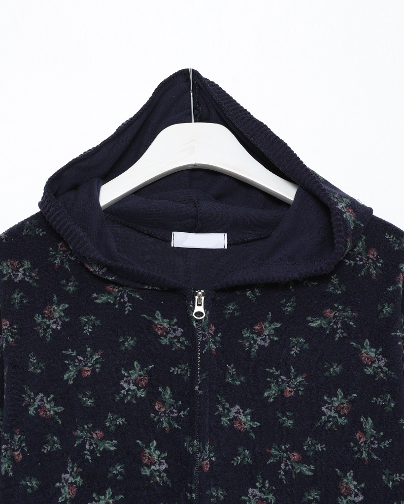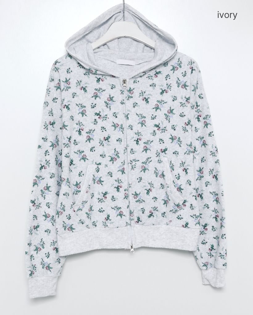 フラワーパイルリブダブルジップアップパーカー