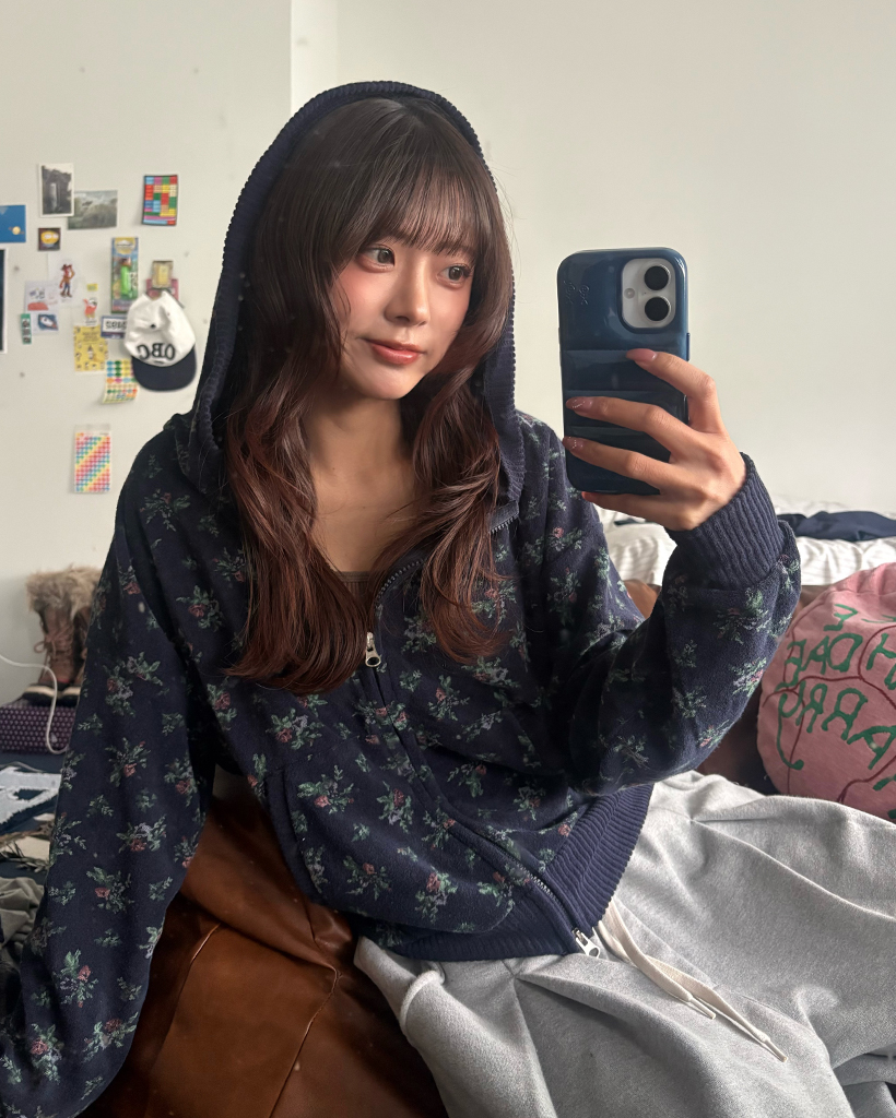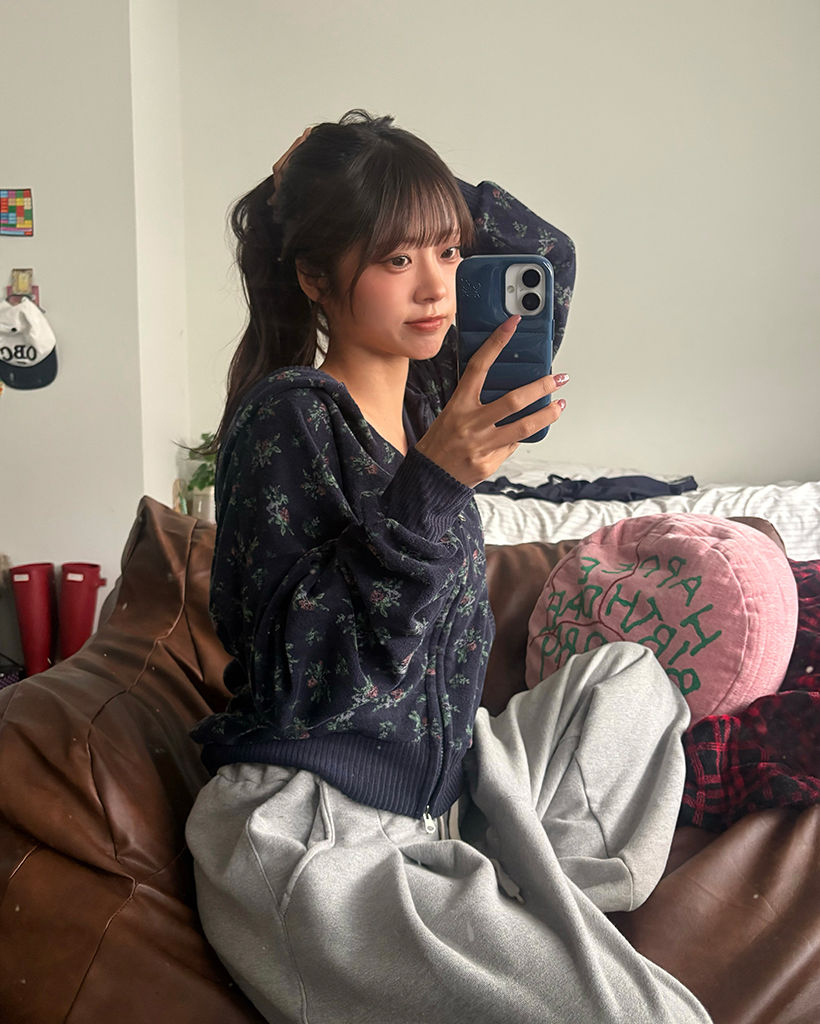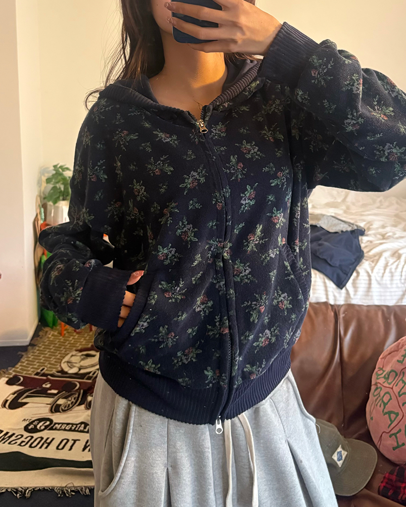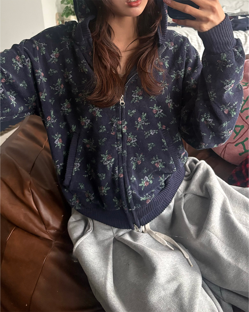 フラワーパイルリブダブルジップアップパーカー
