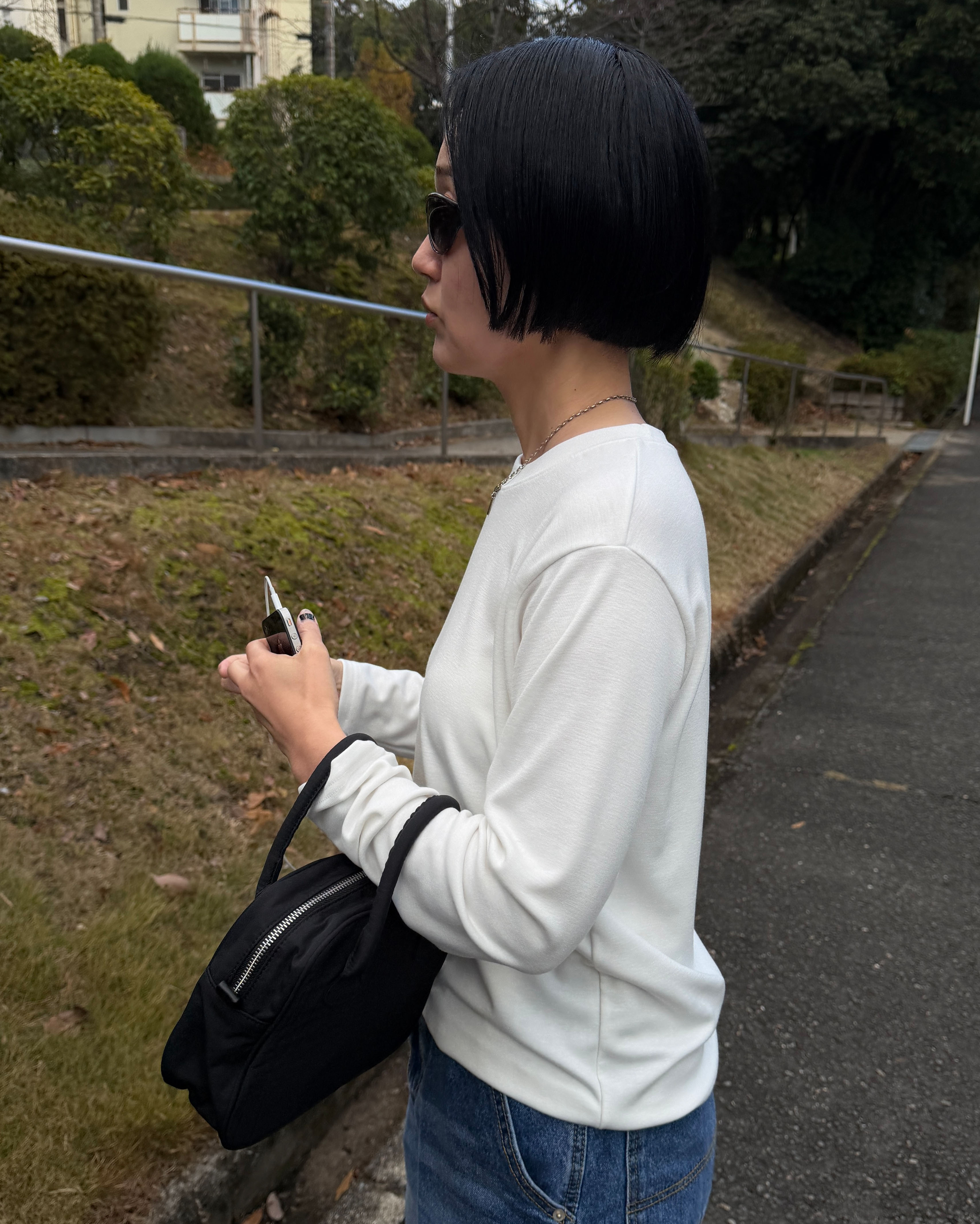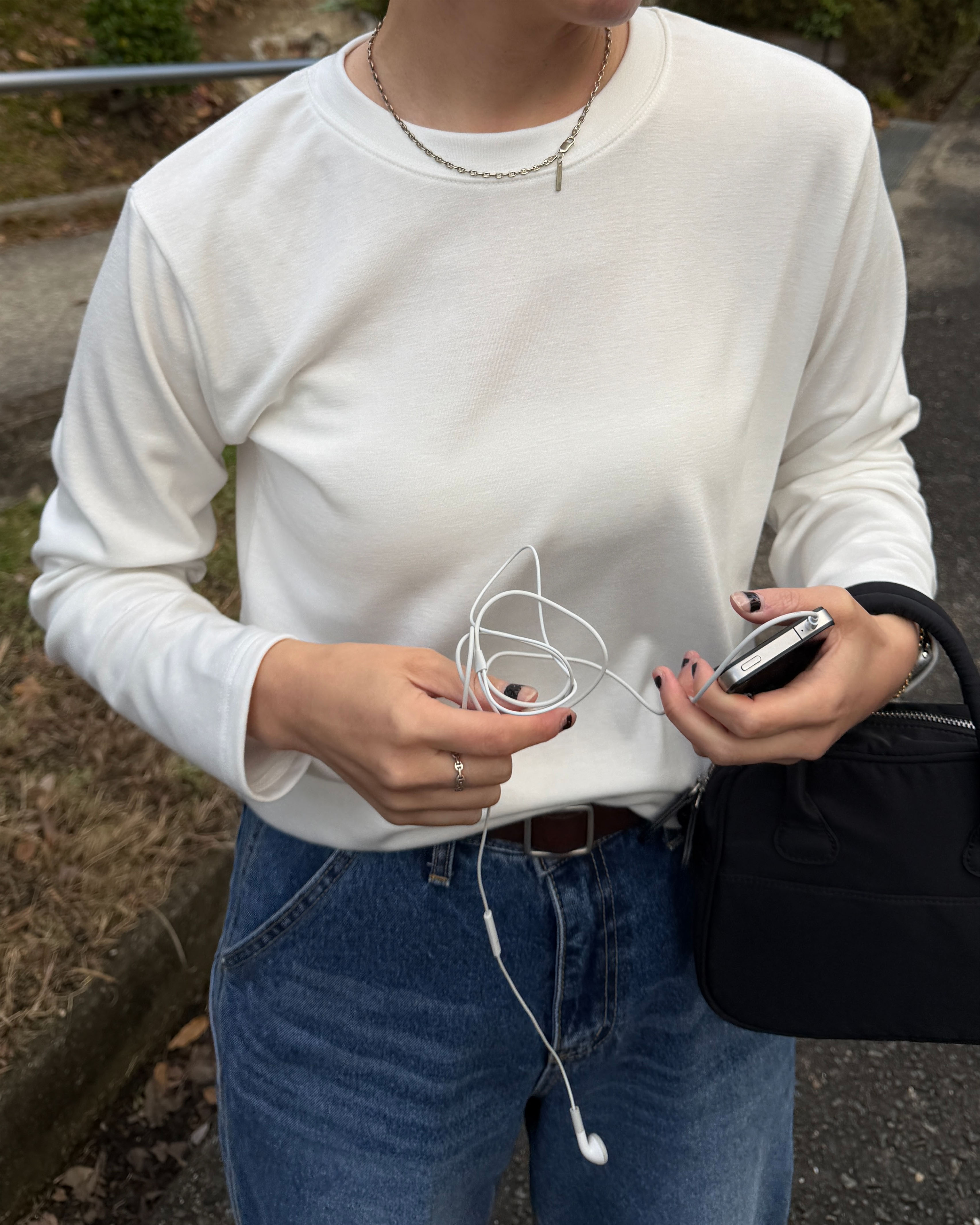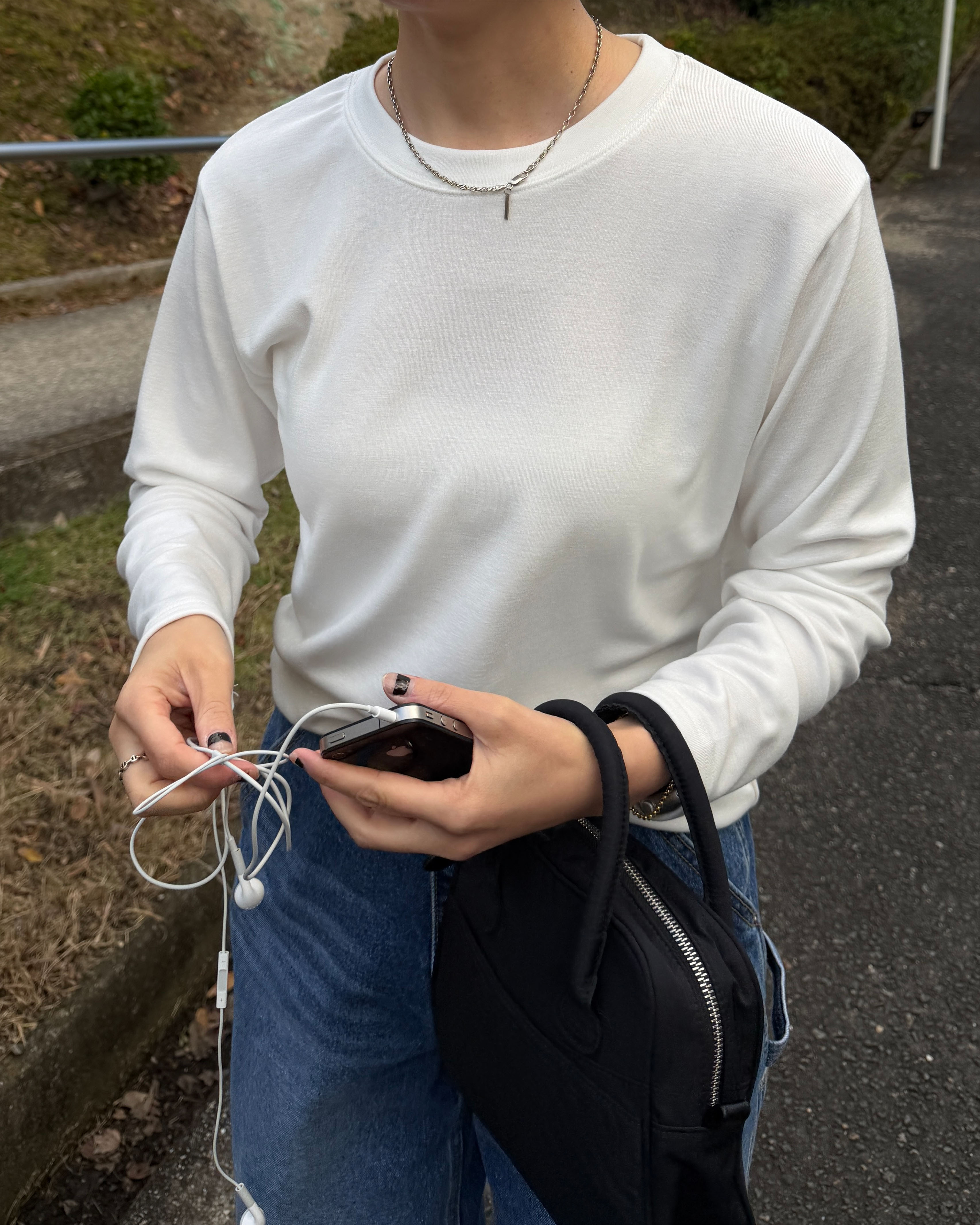 シンプル裏起毛ラウンドネックロンT