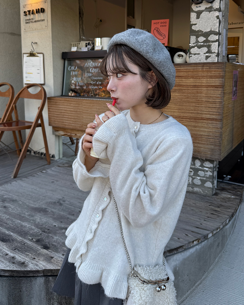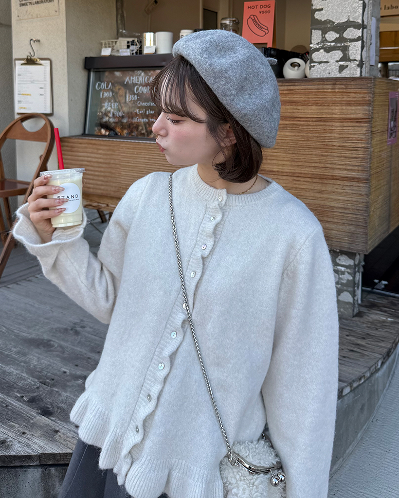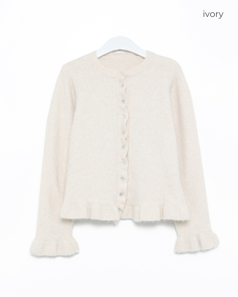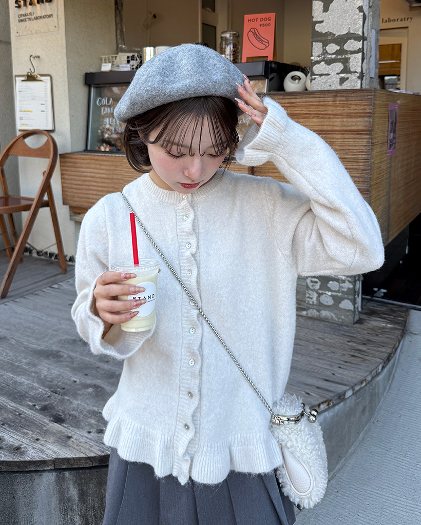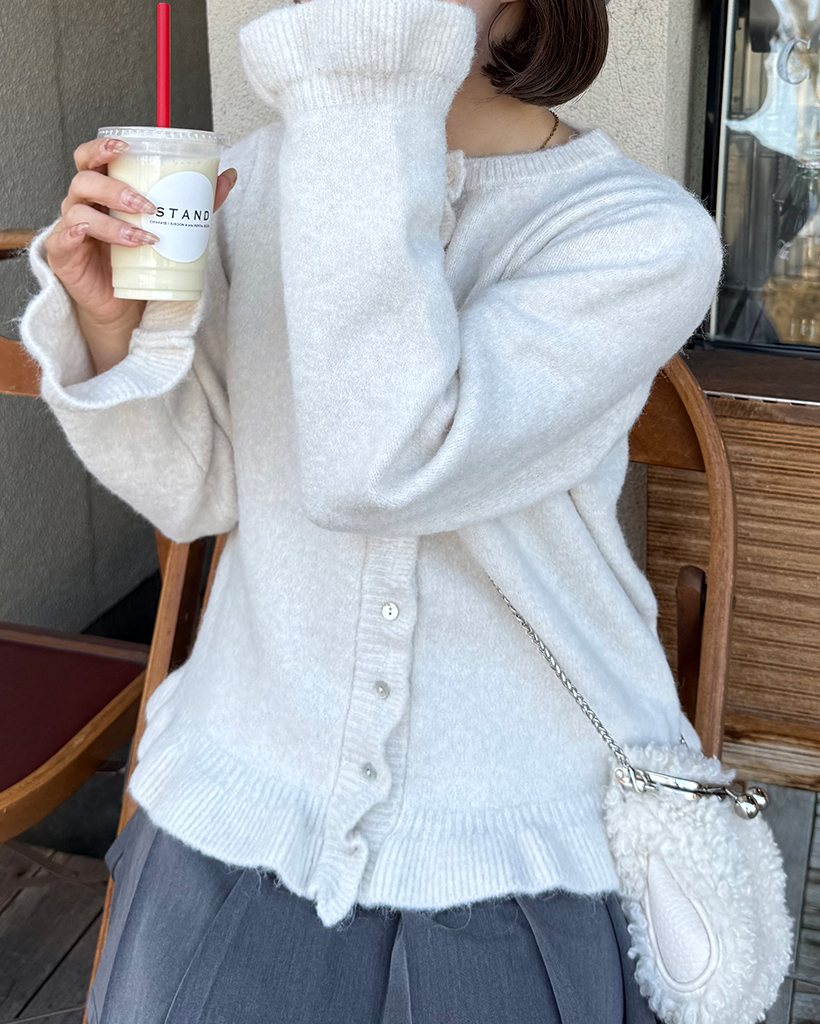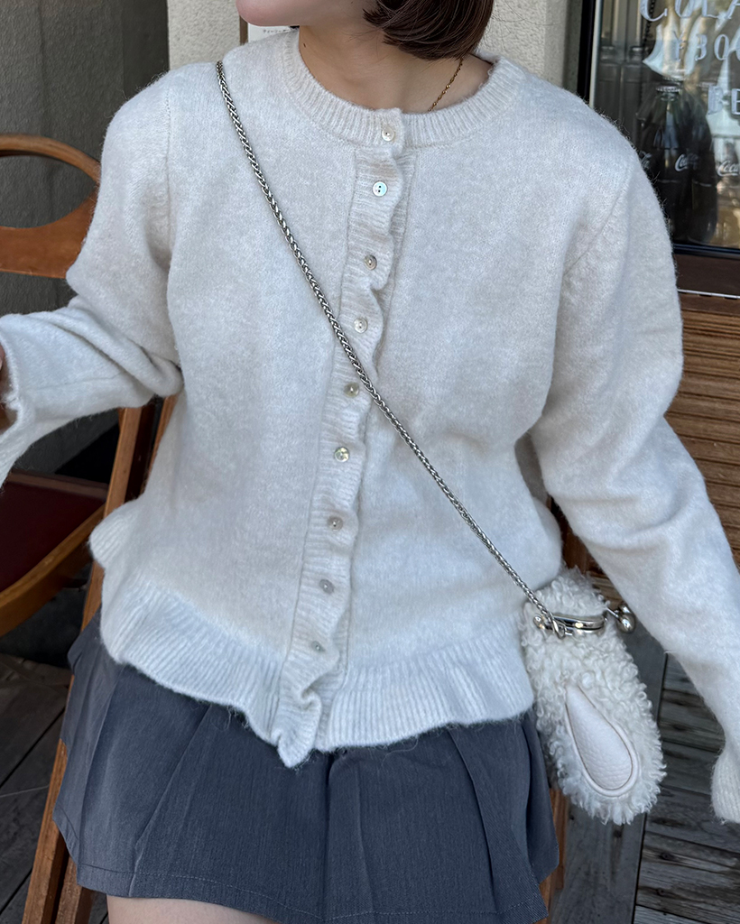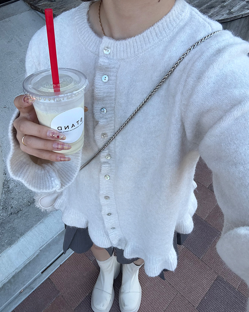 スカラップラインシェルボタンニットカーディガン