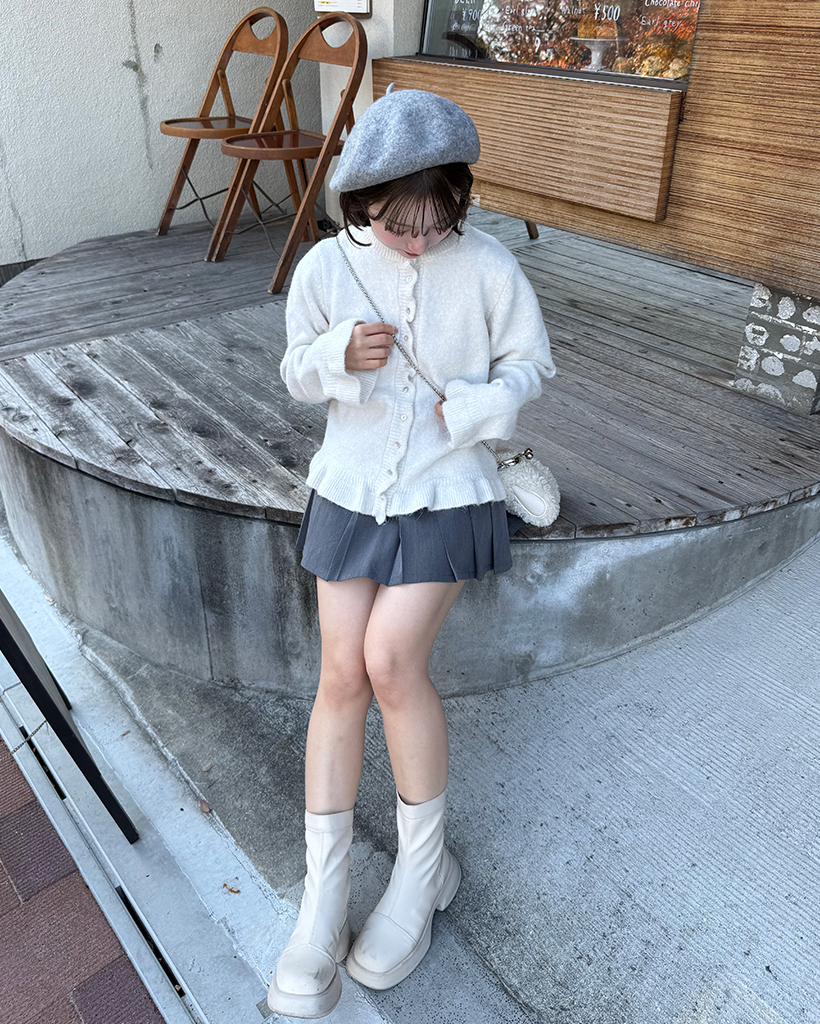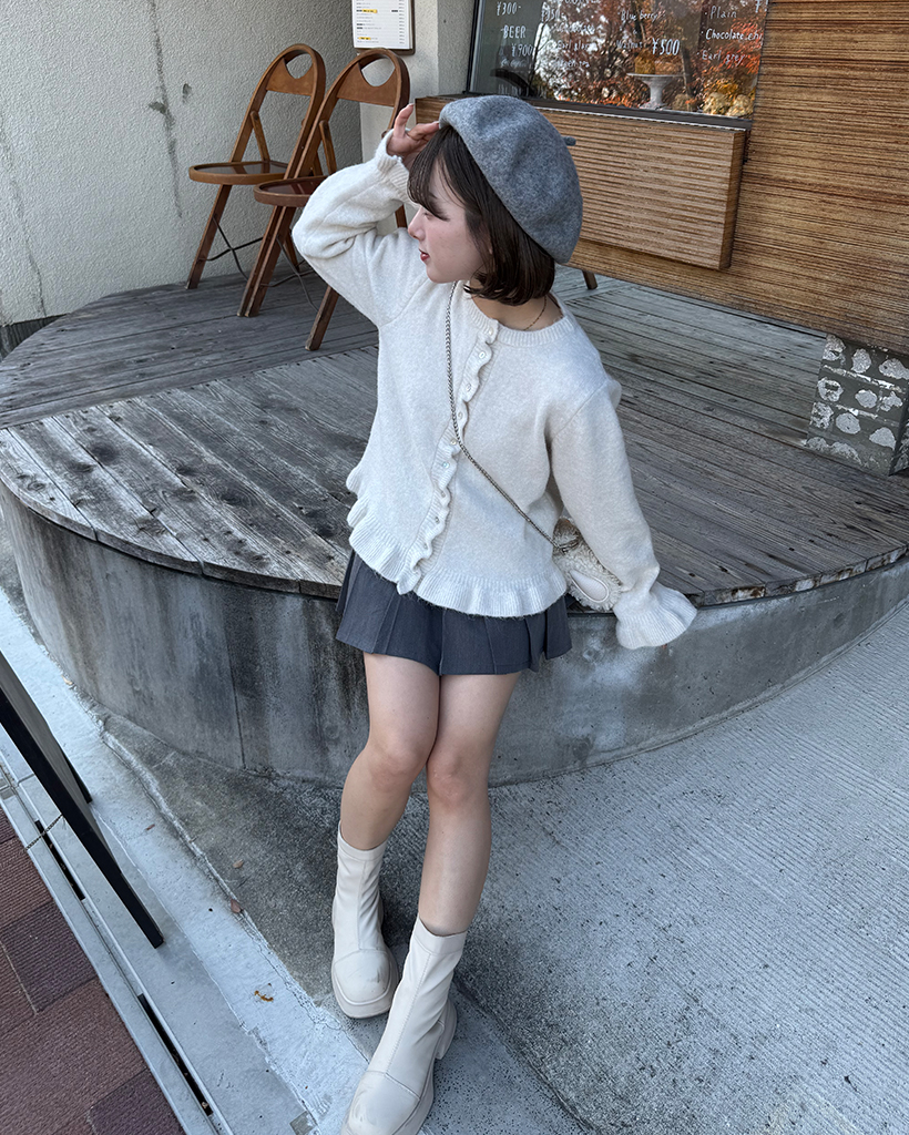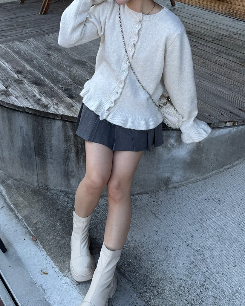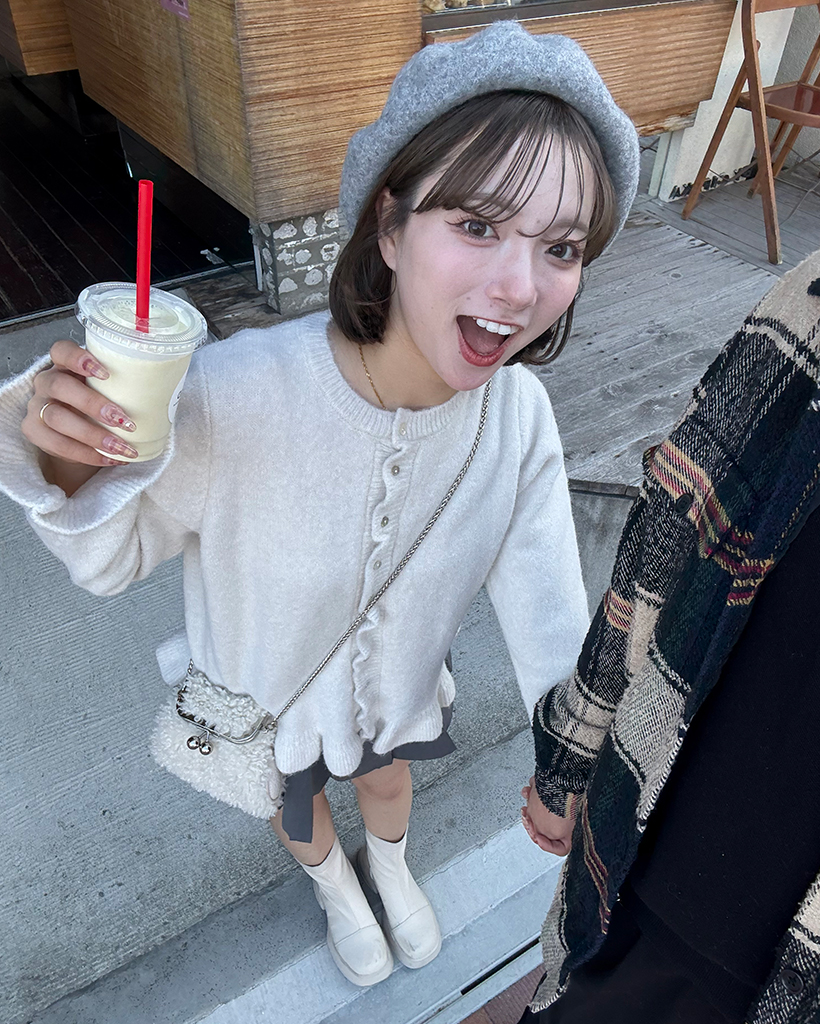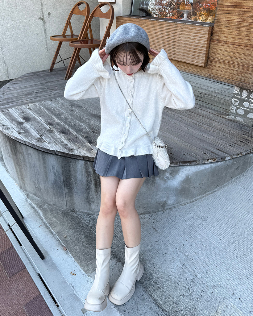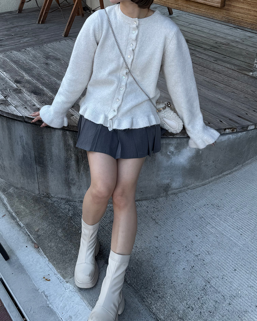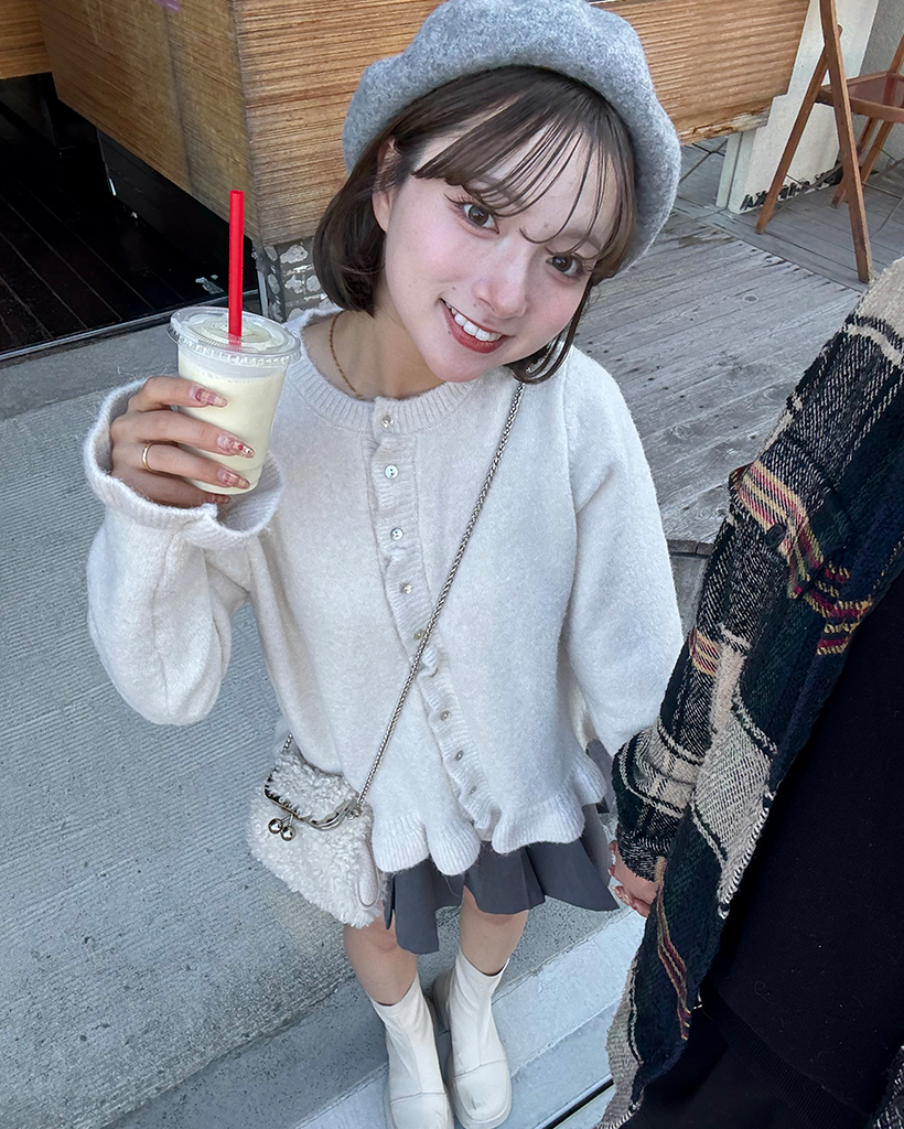 スカラップラインシェルボタンニットカーディガン