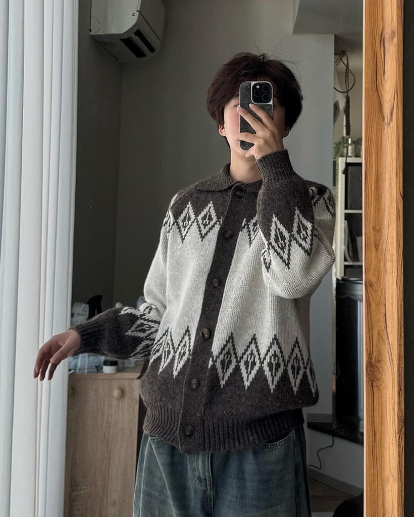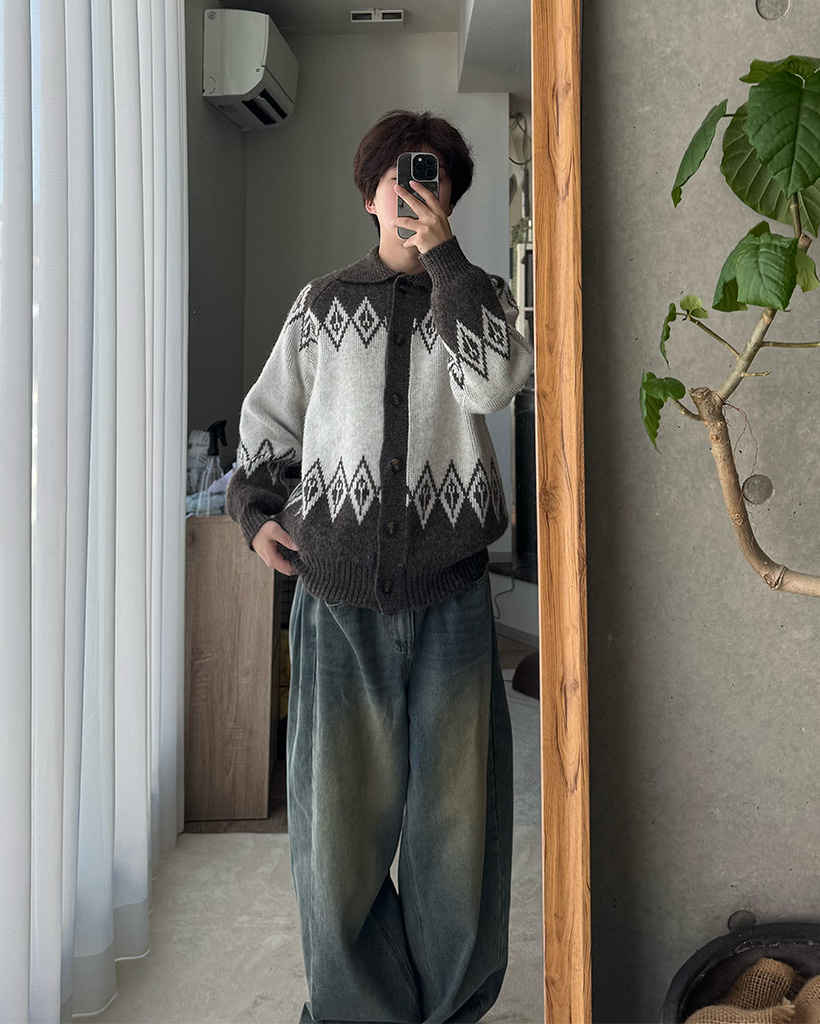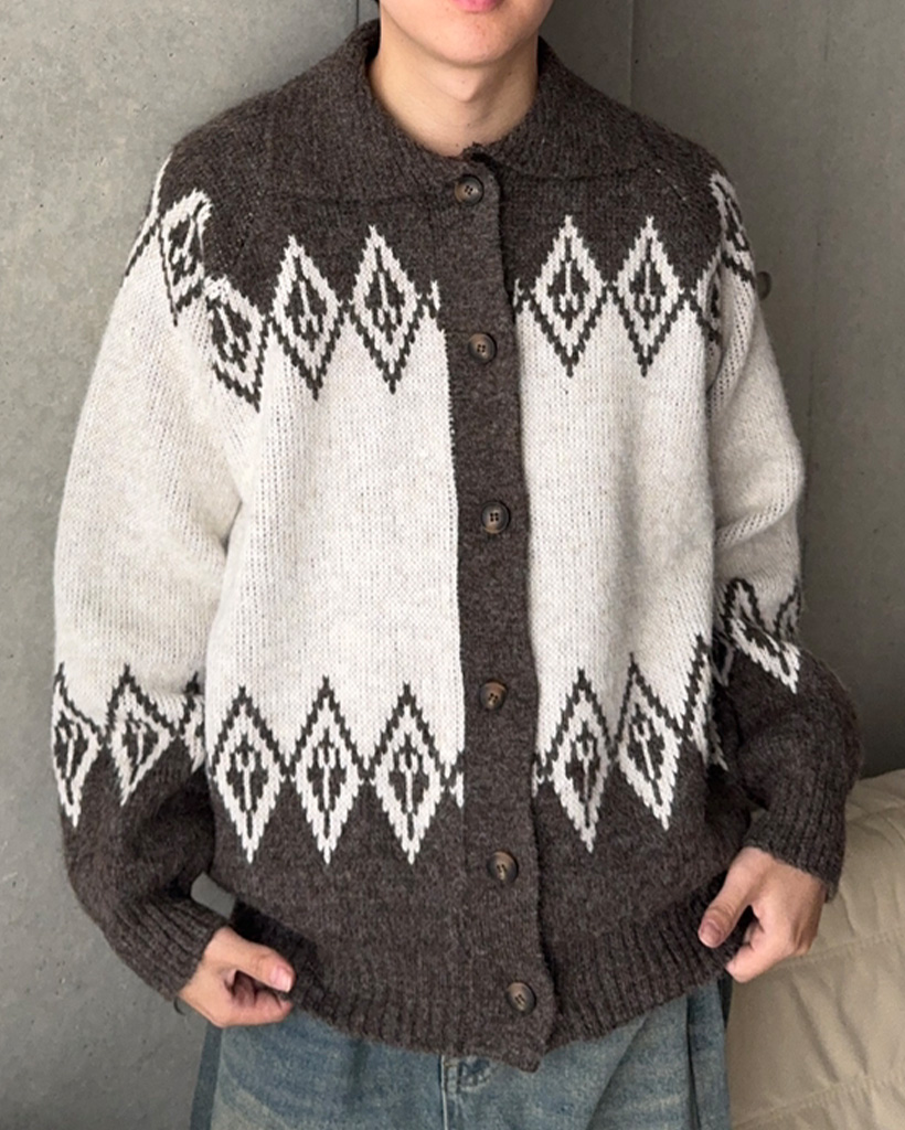(ユニセックス)アーガイルカラーカーディガン
