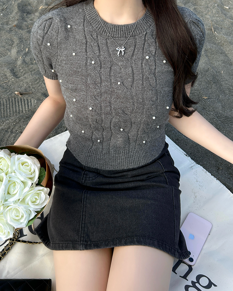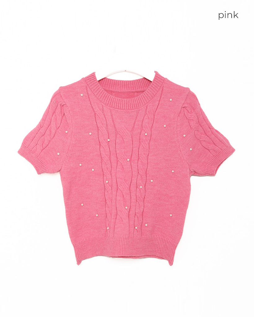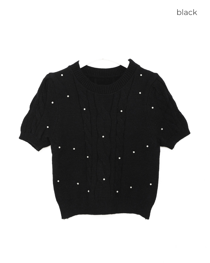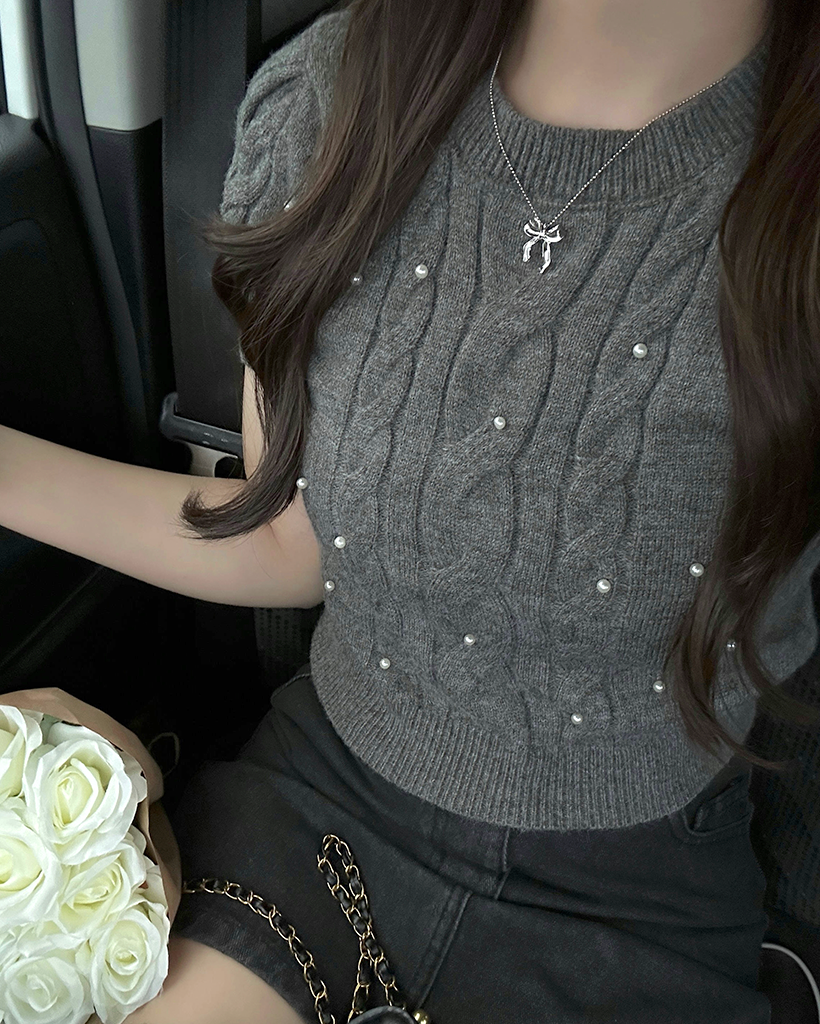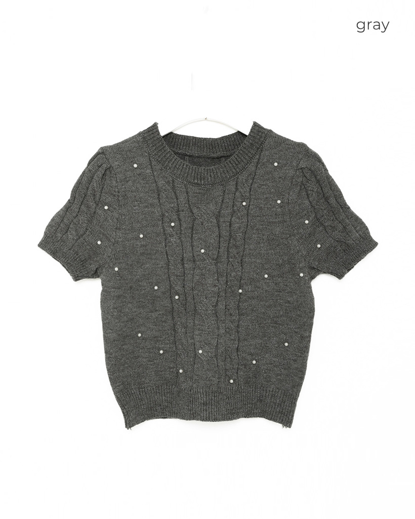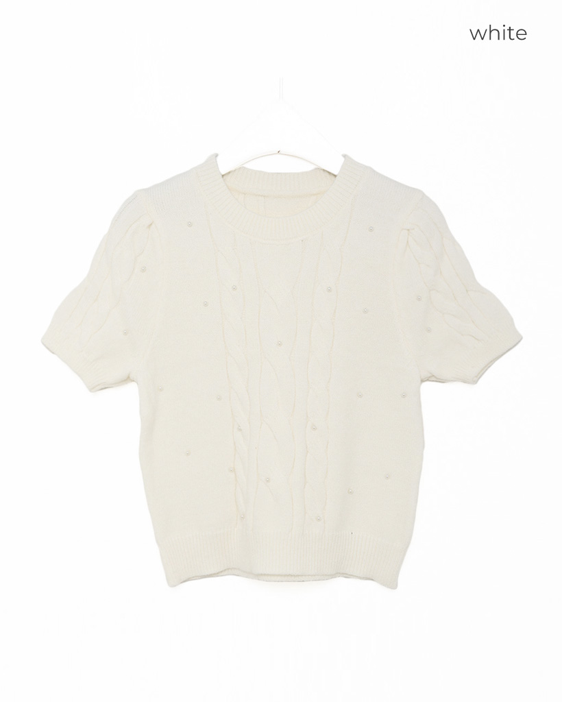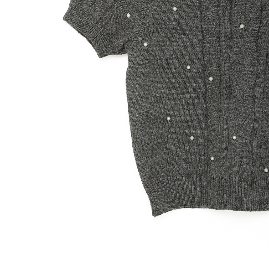 パールケーブル半袖ニット