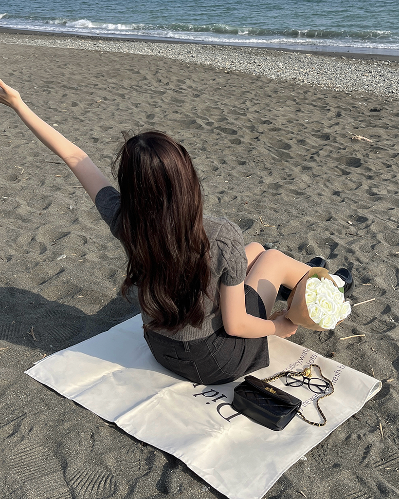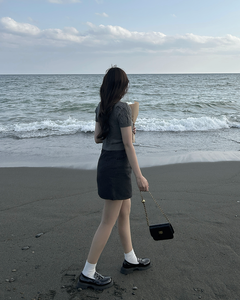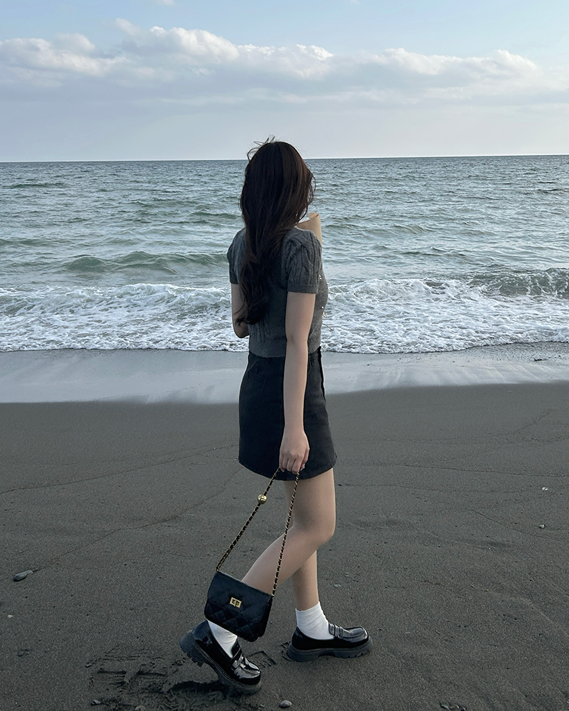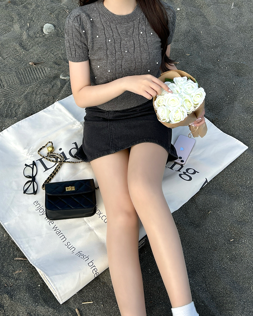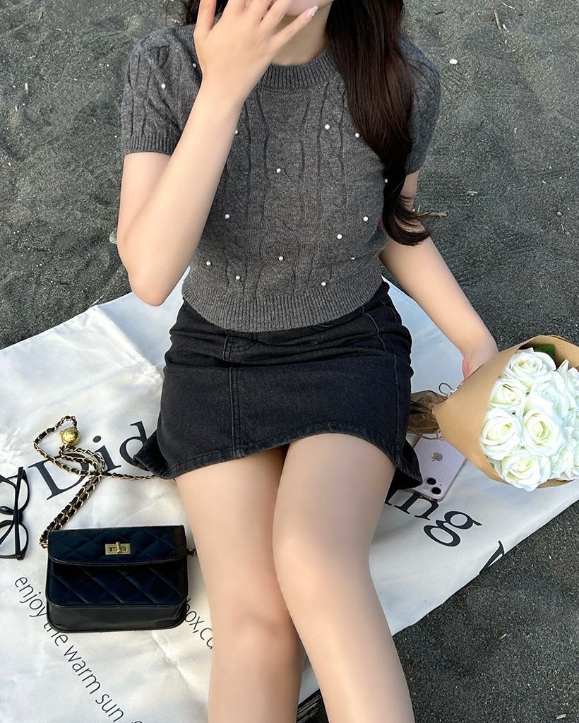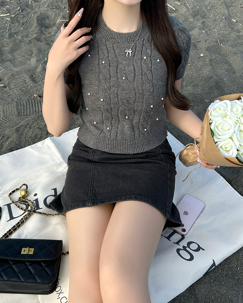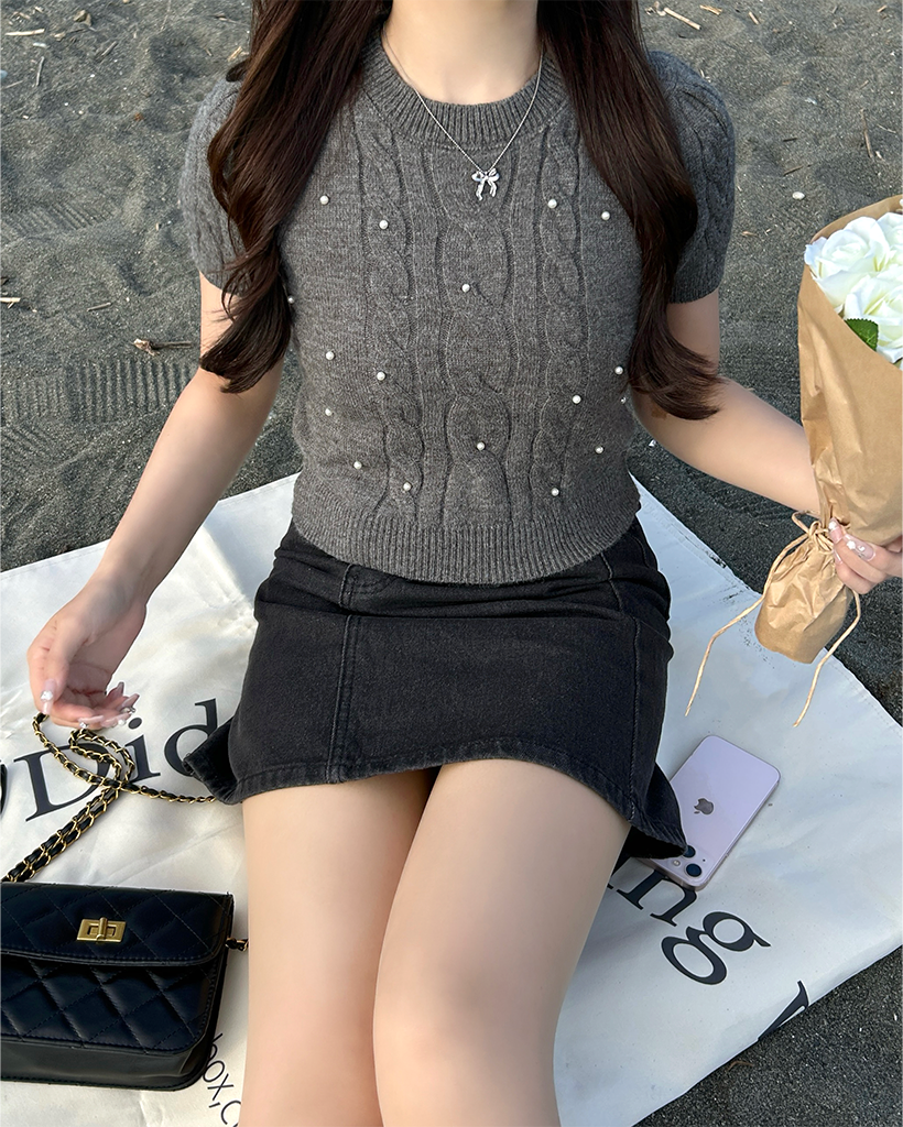 パールケーブル半袖ニット