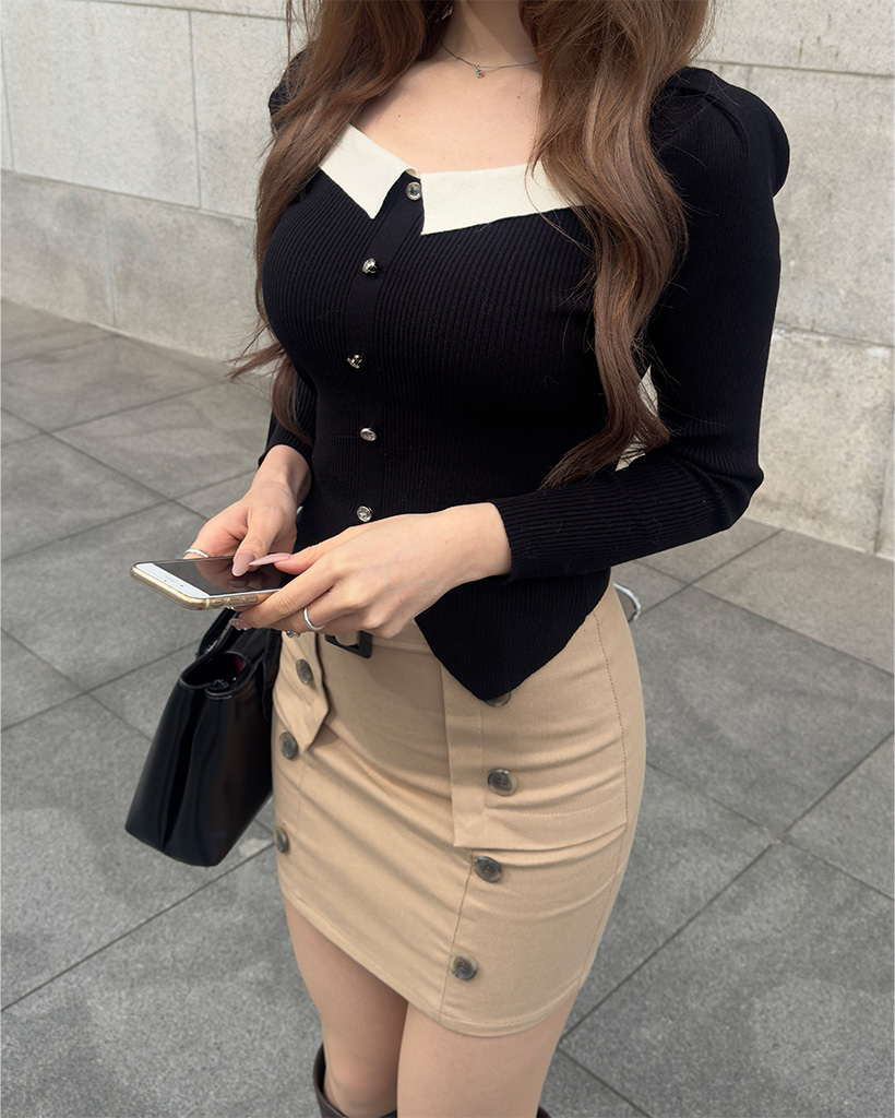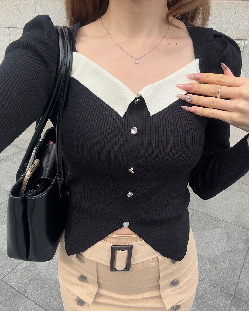 スクエアネックニットブラウス