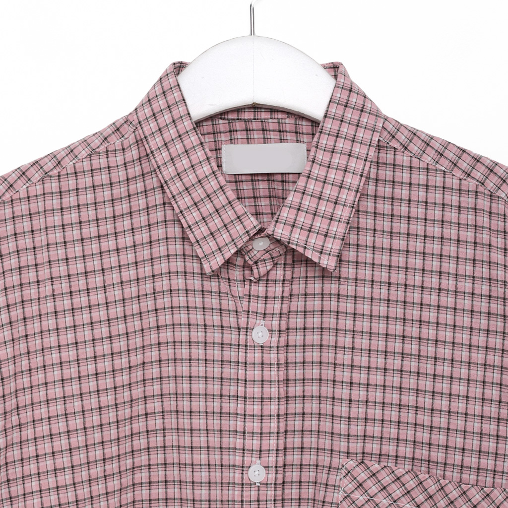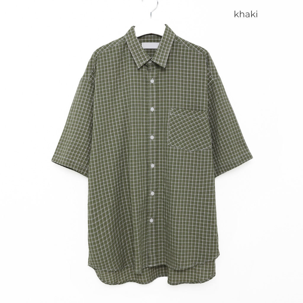 (ユニセックス)タータンチェックオーバーフィットハーフシャツ