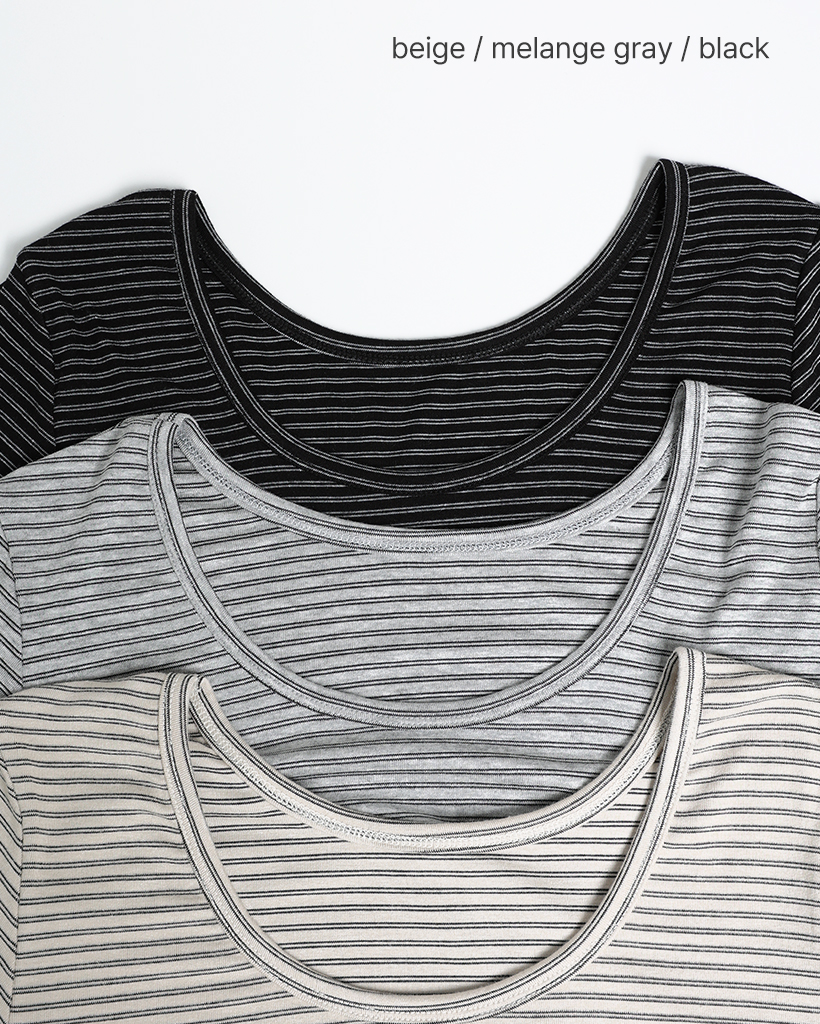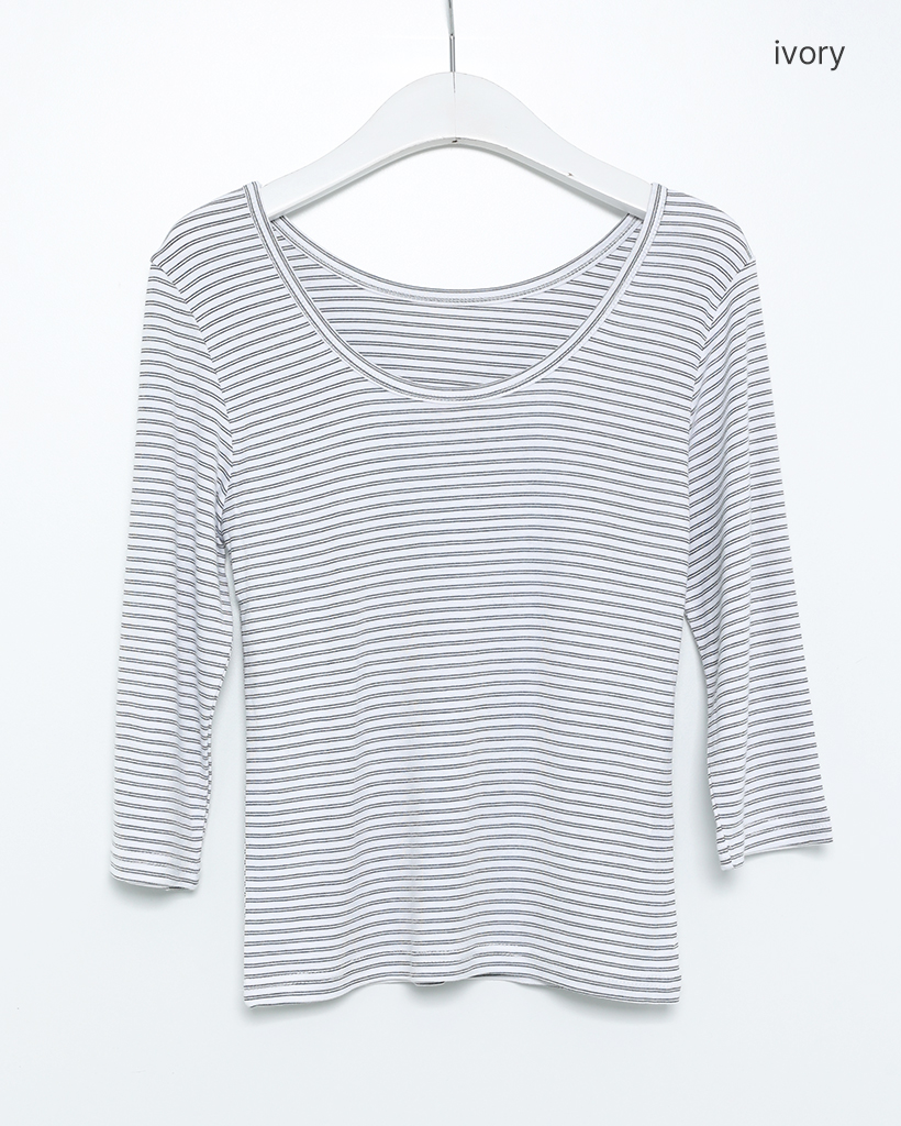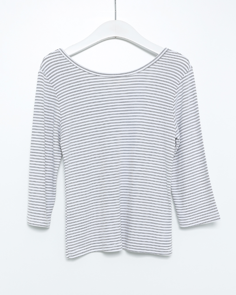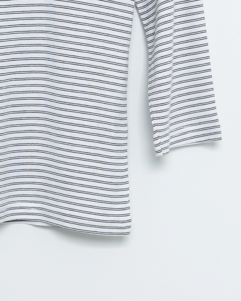 ボーダーオーバルネッククロップドスリーブTシャツ