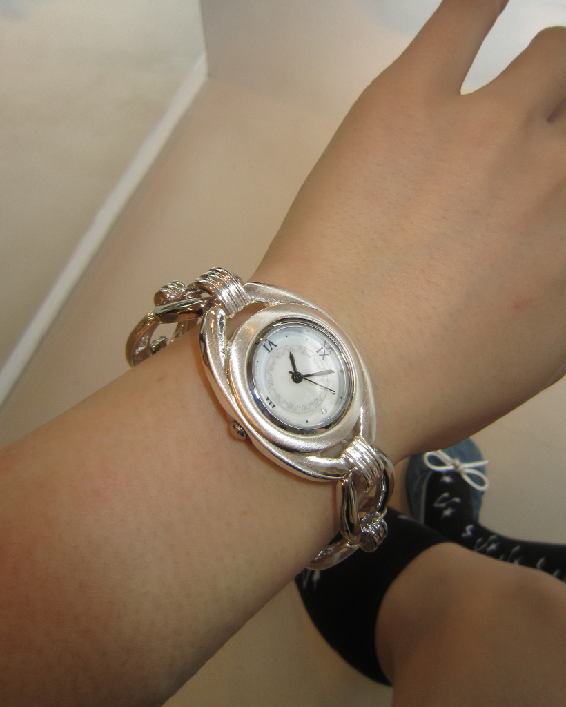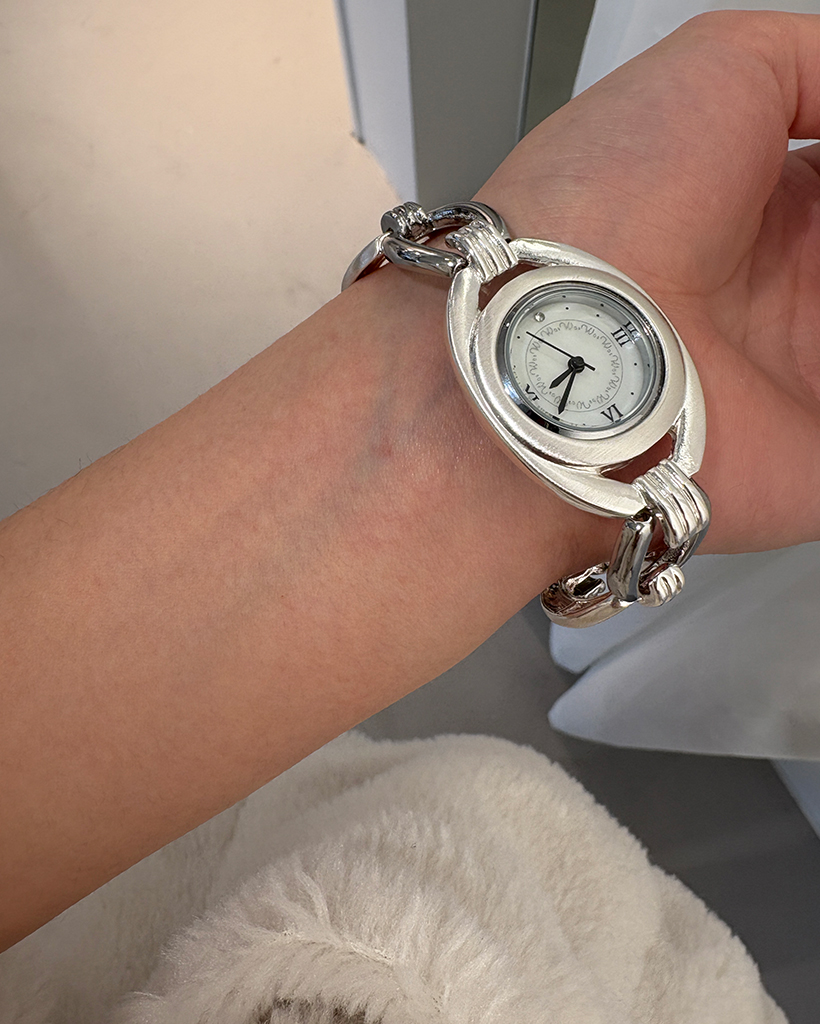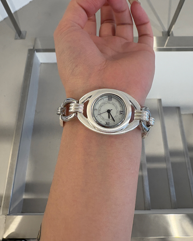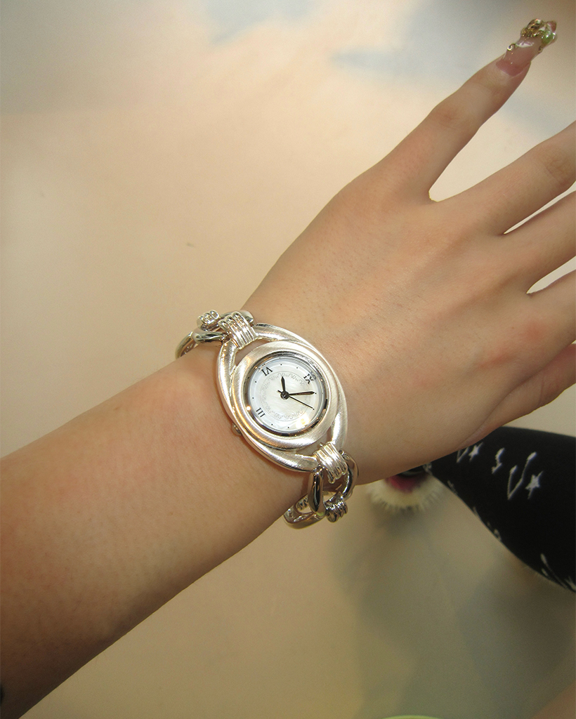 オーバルシルバーチェーンビンテージハンドウォッチ