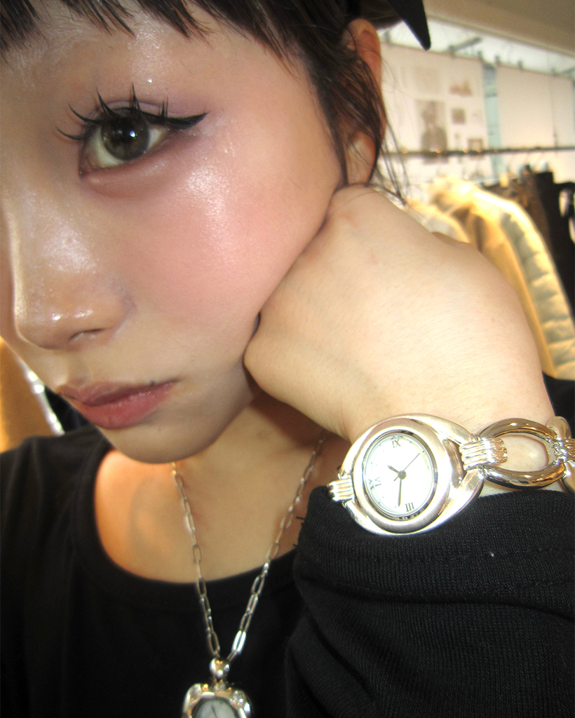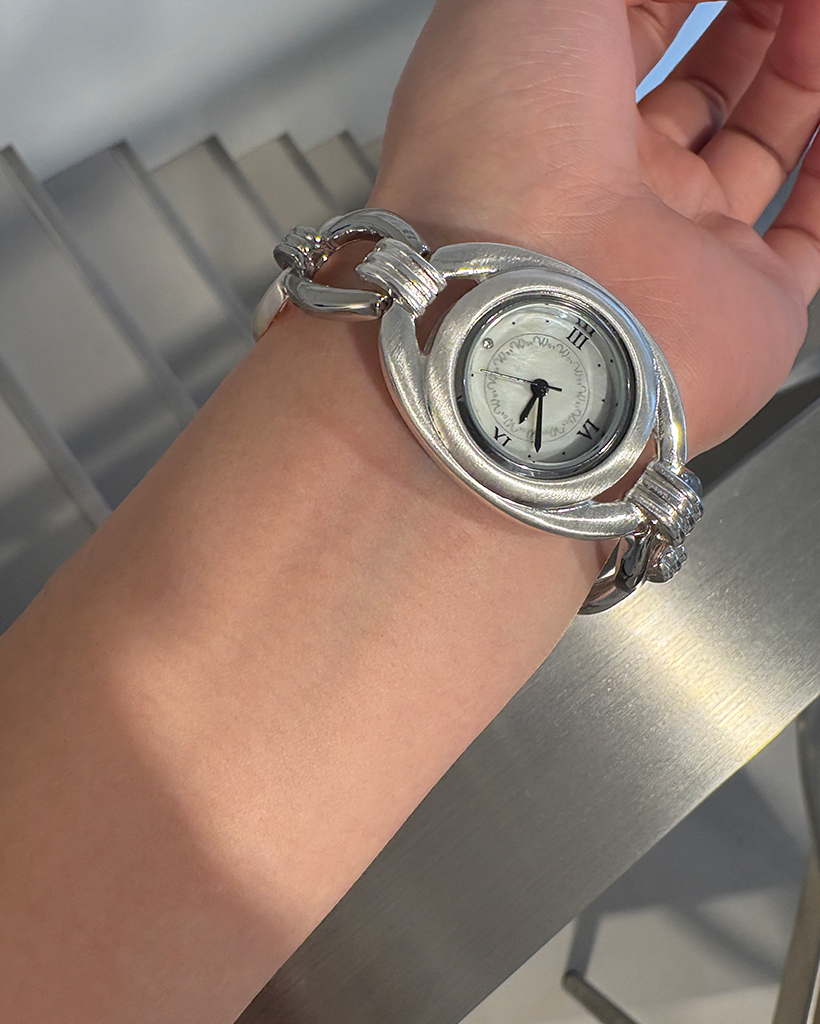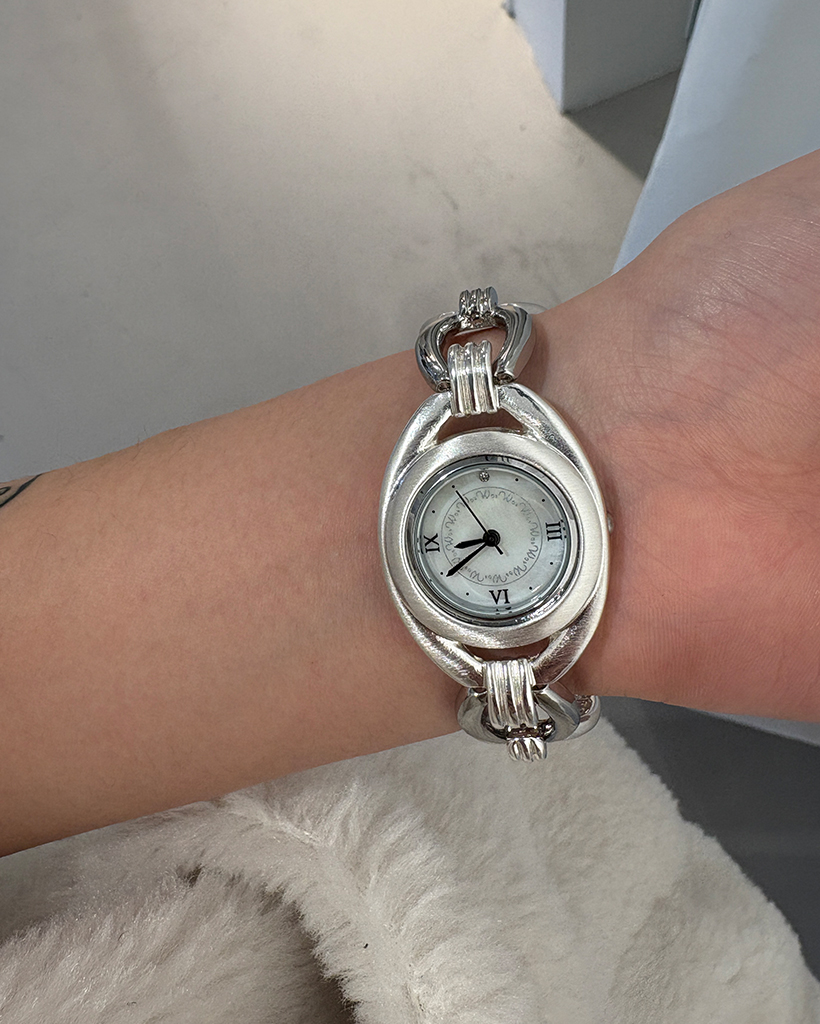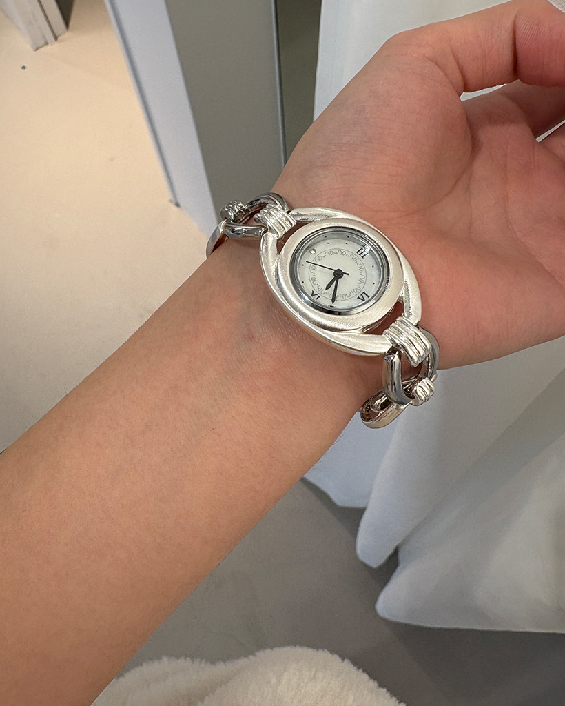オーバルシルバーチェーンビンテージハンドウォッチ