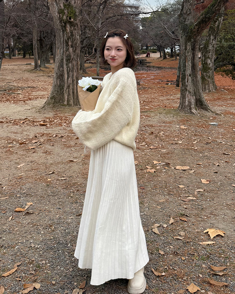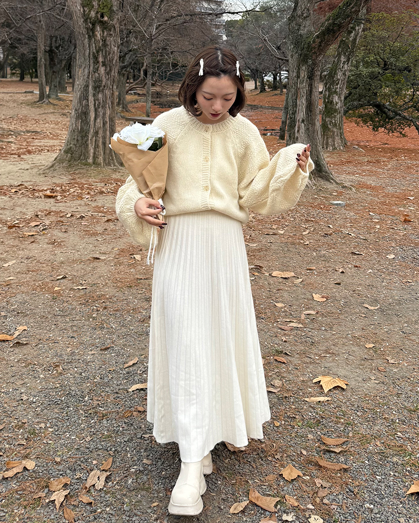 プリーツビスコースニットロングスカート