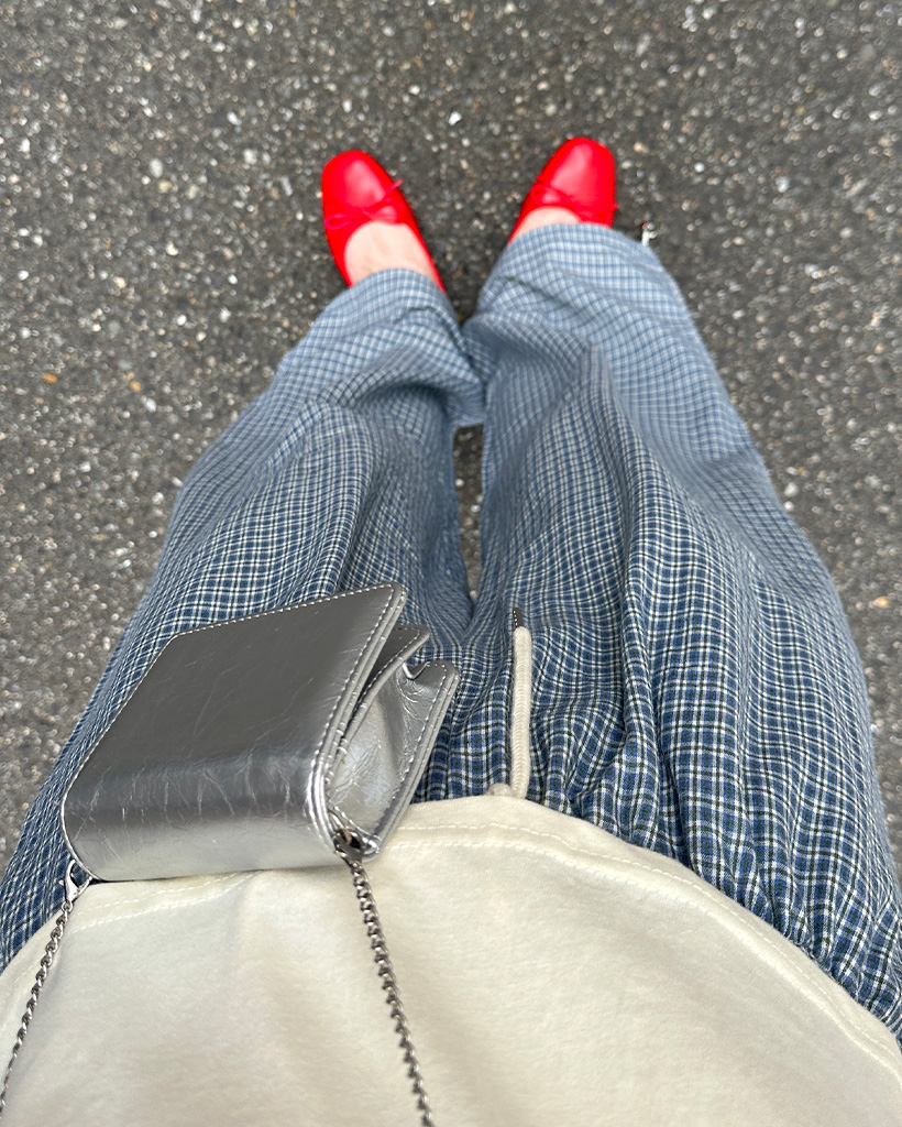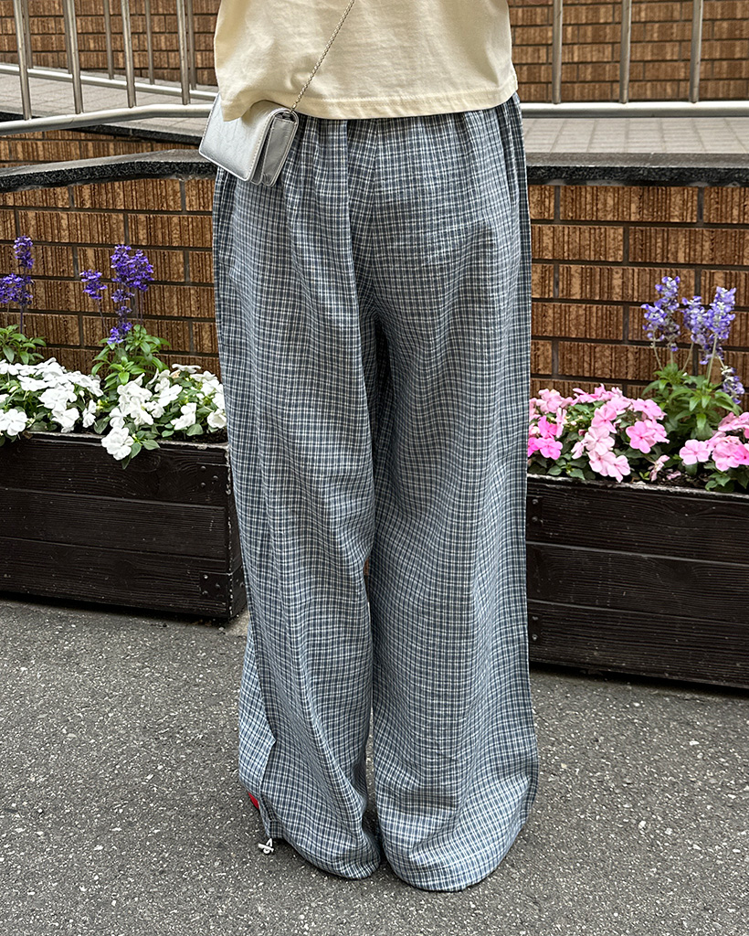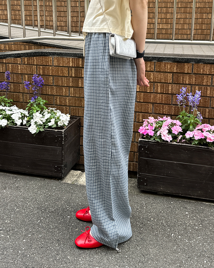 チェックウエストゴムワイドパンツ