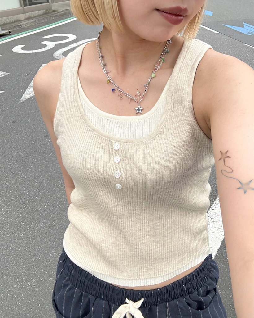 ボタンポイントレイヤードスリーブレス