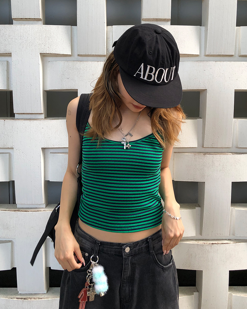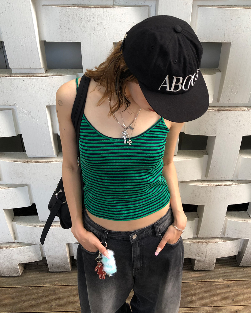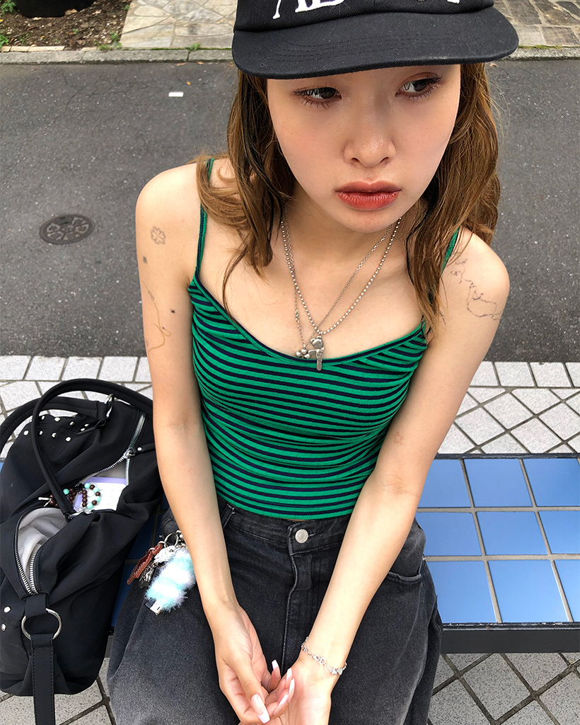 オーバルネックボーダーサーマルキャミソール
