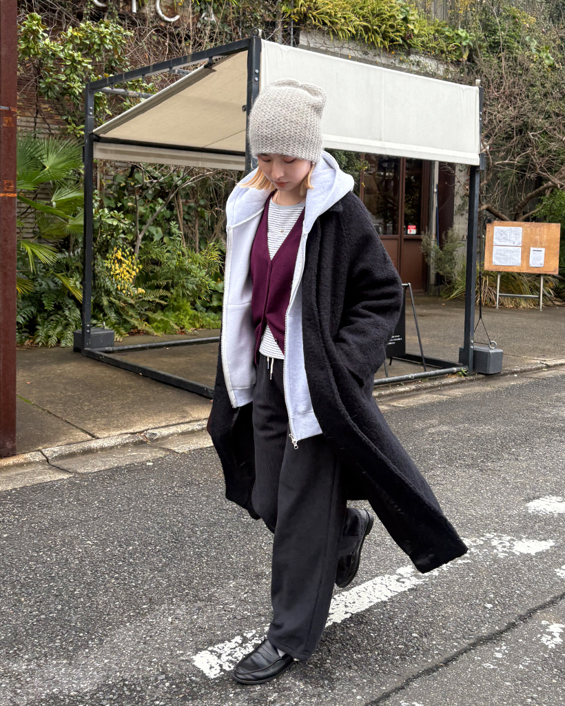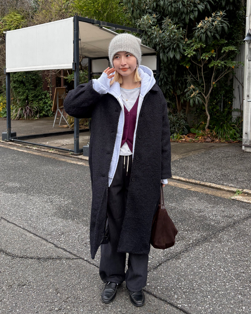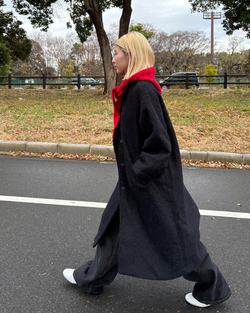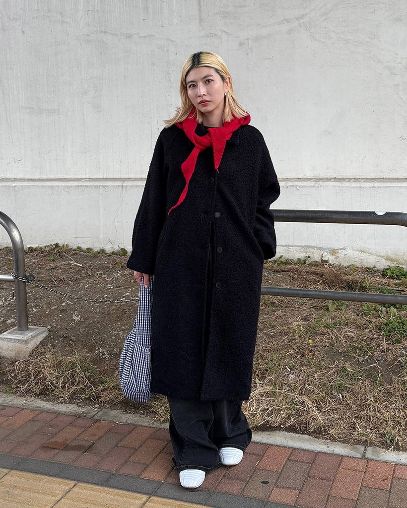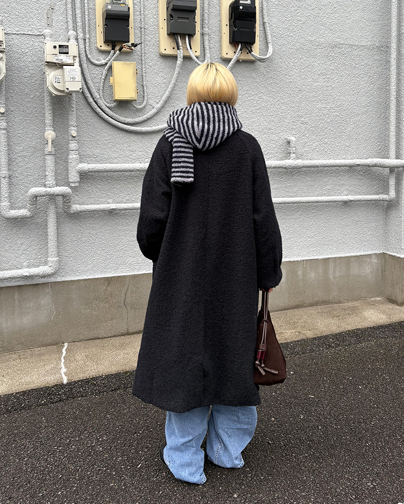 ラグランショルダーウールミックスロングコート