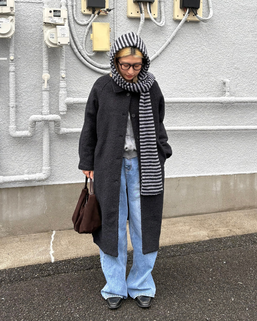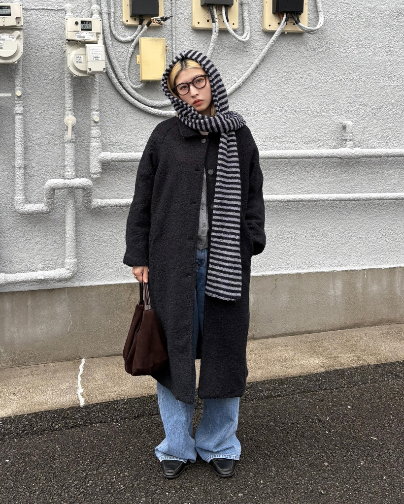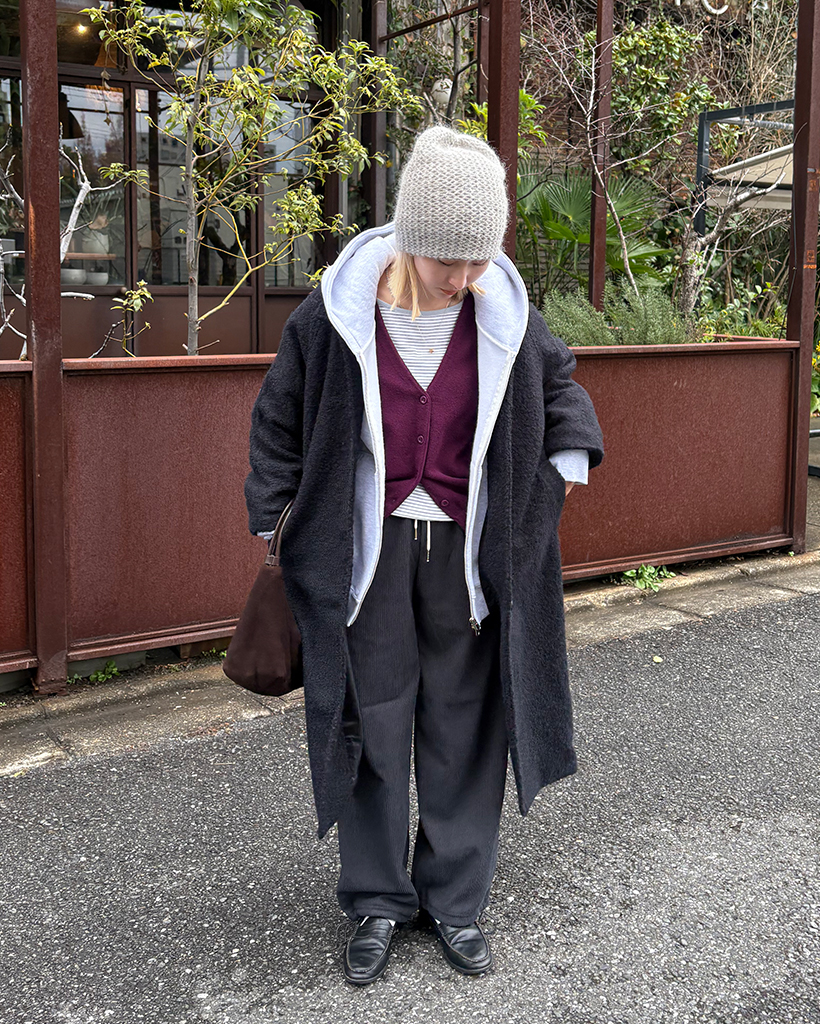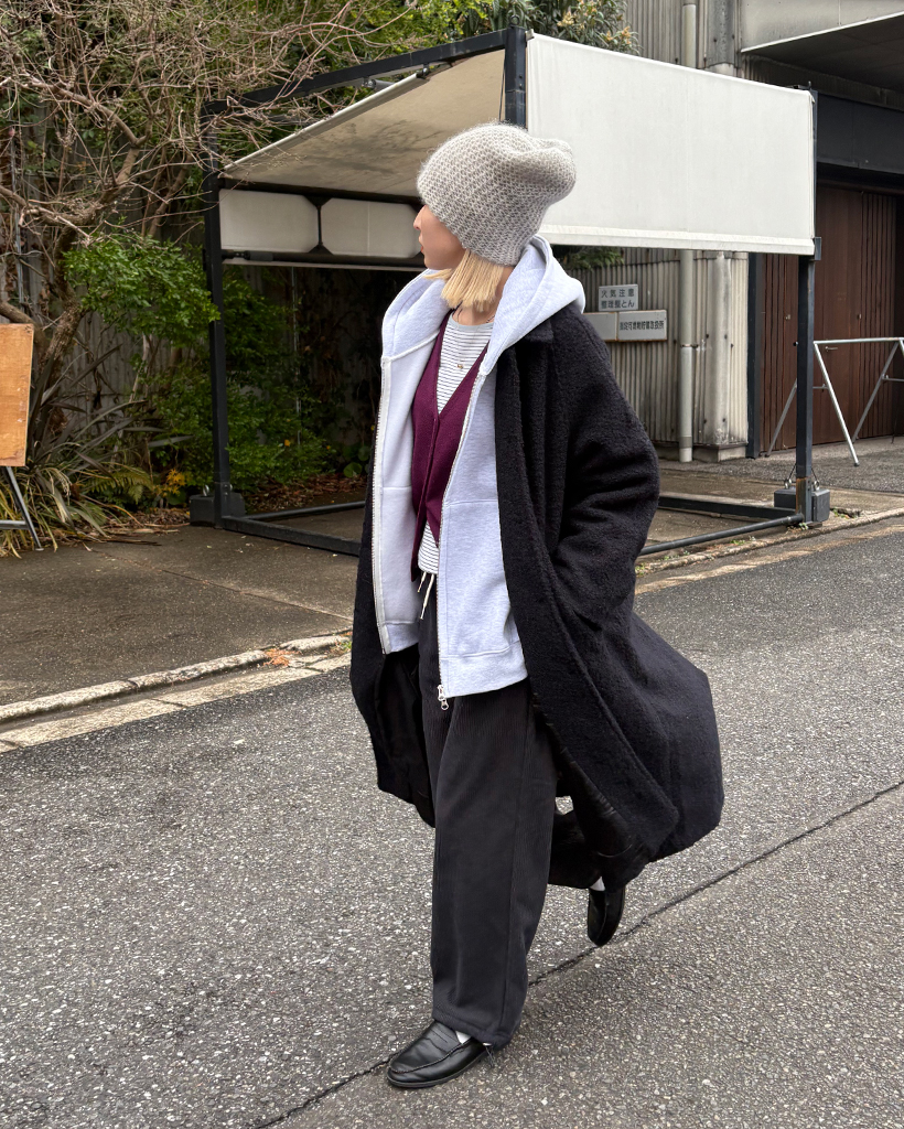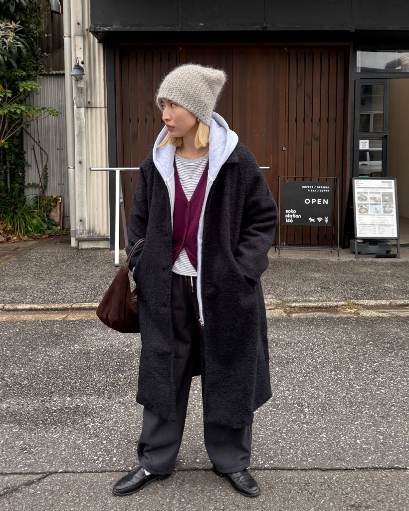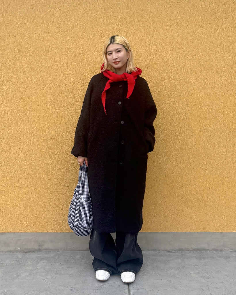 ラグランショルダーウールミックスロングコート