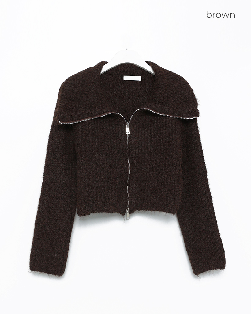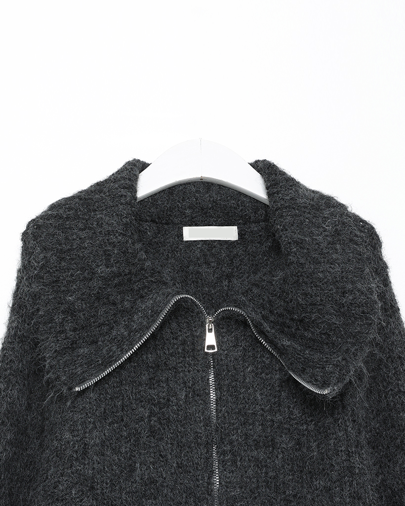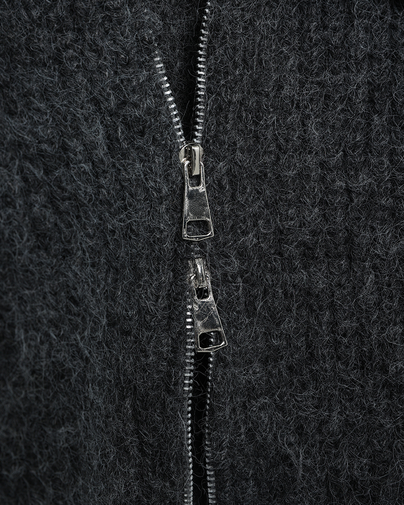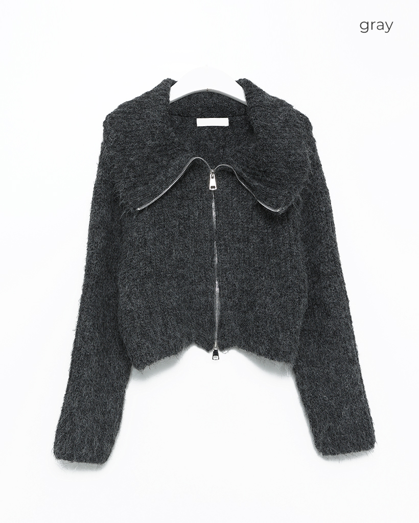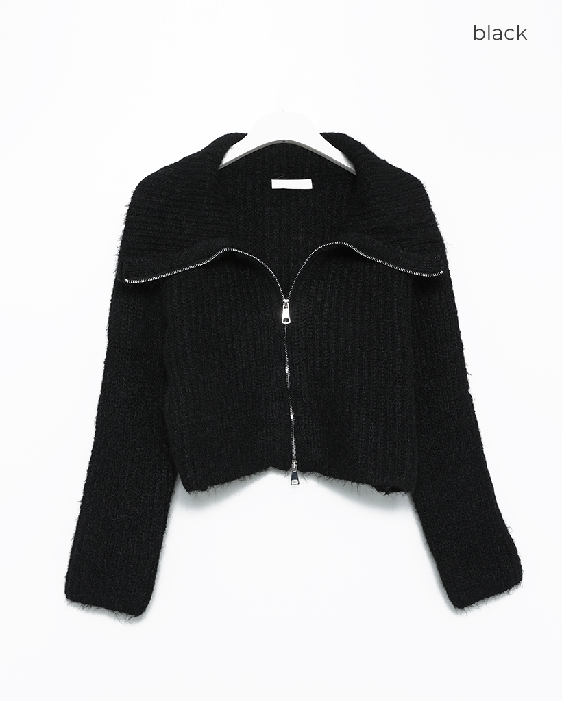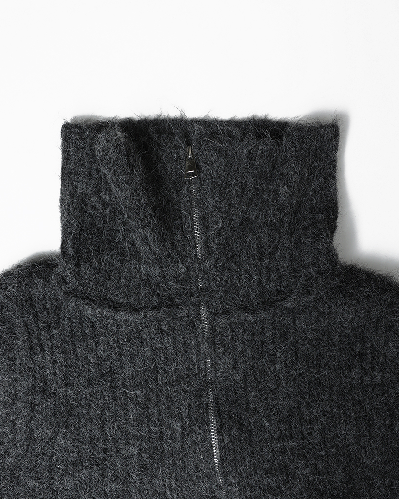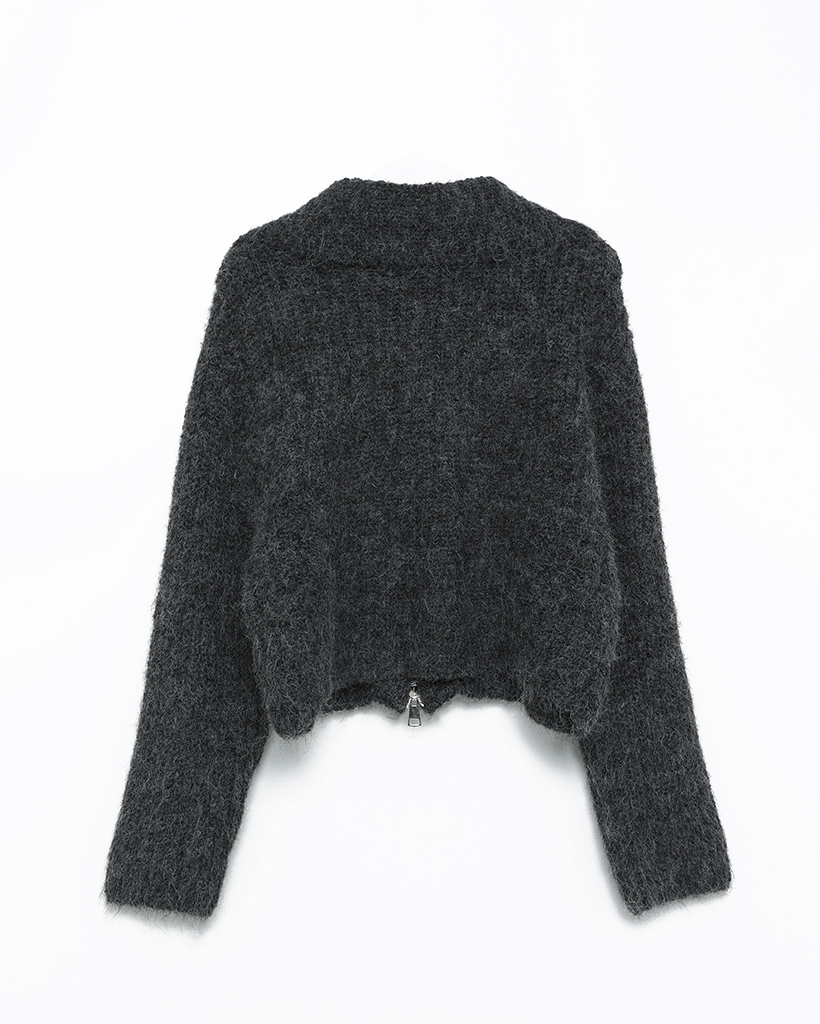 ハイネックダブルジップヘアリーニットジップセーター