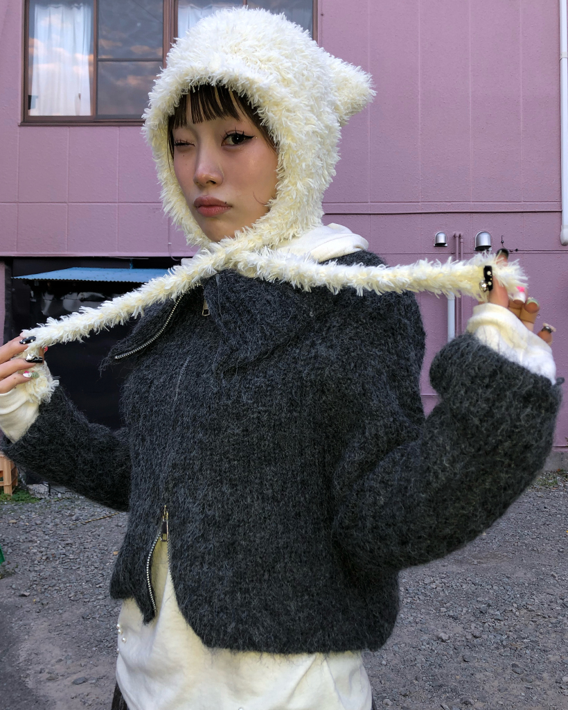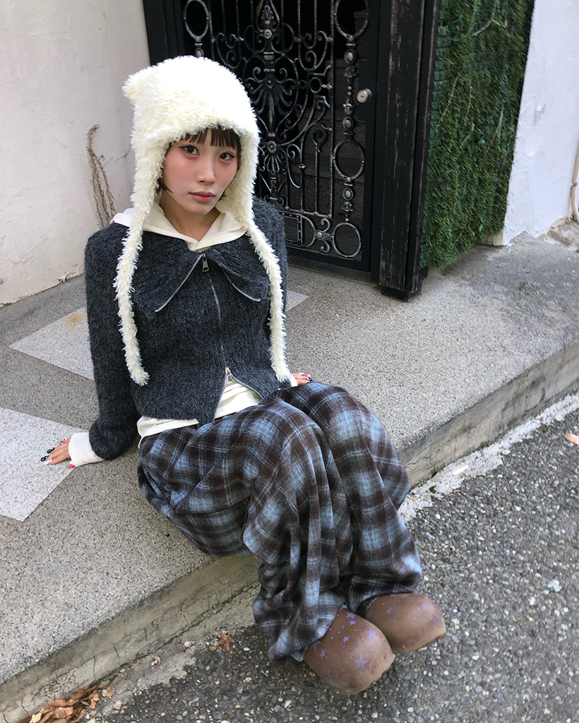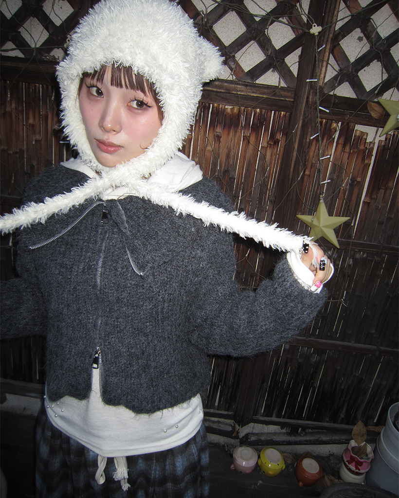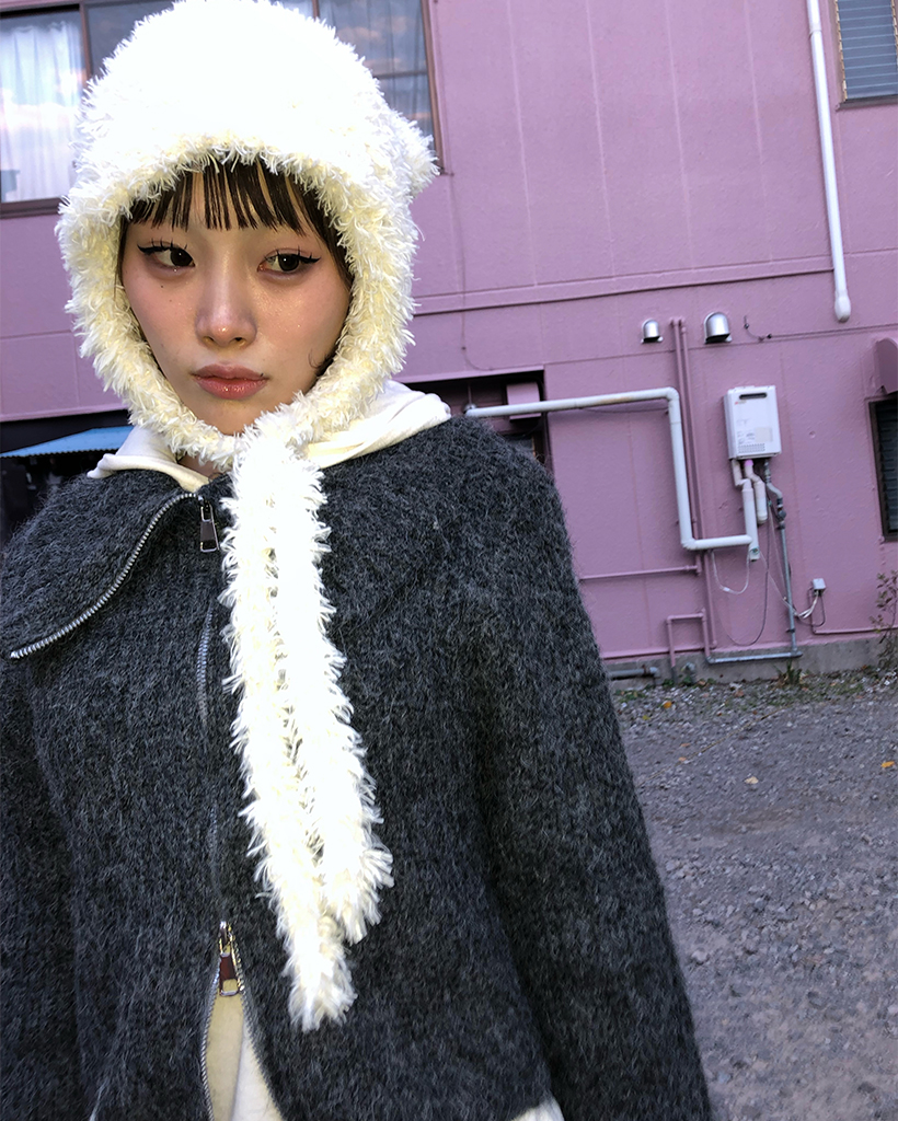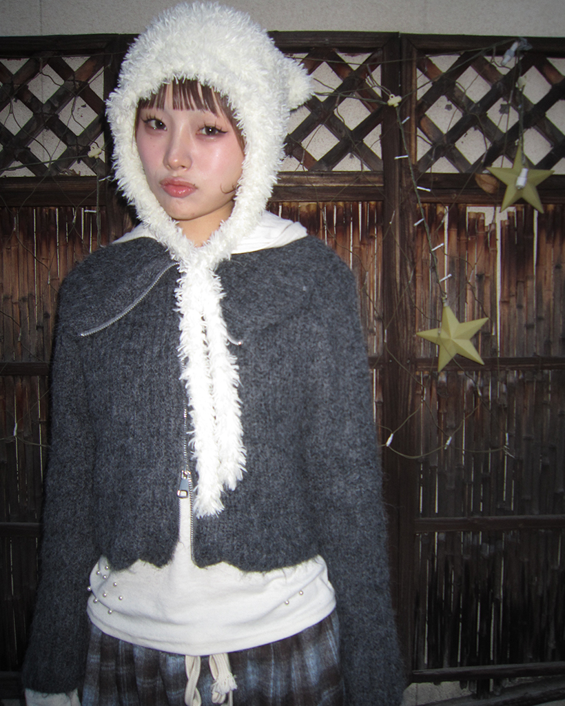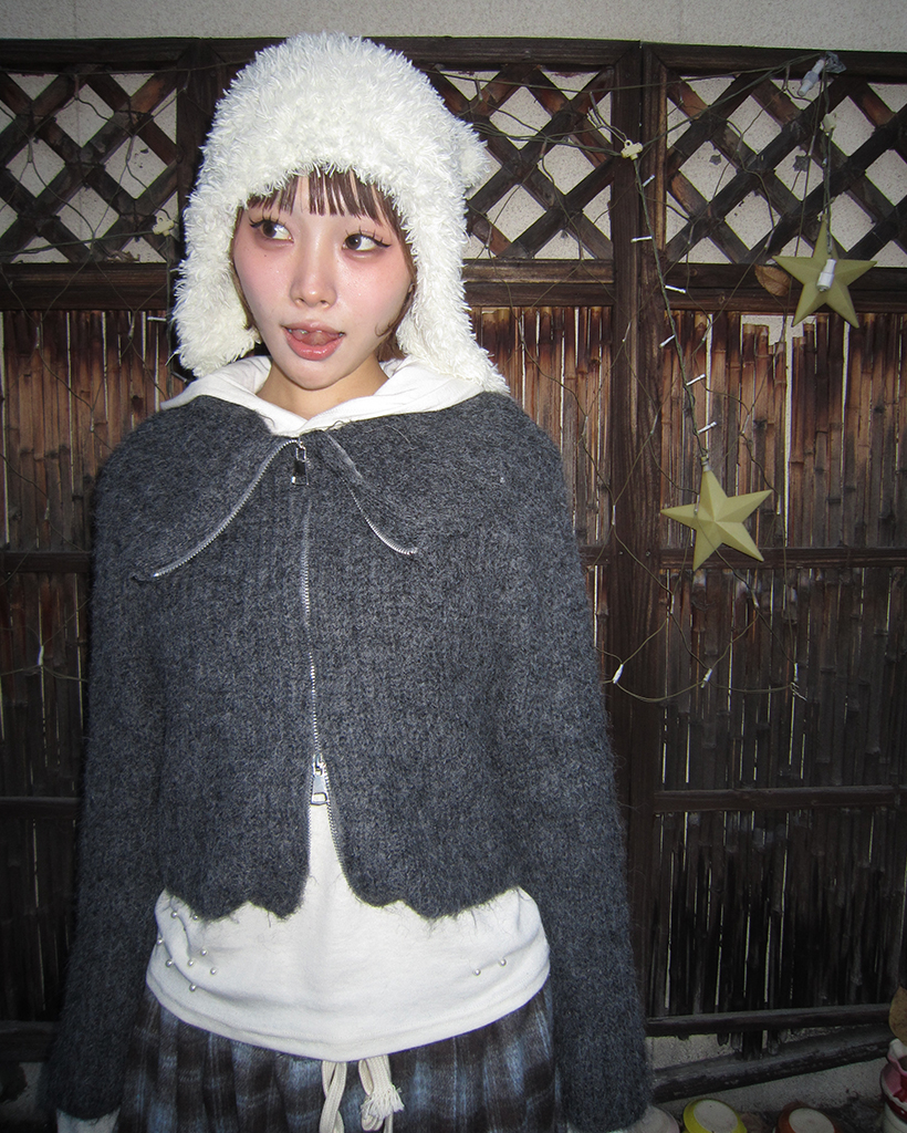 ハイネックダブルジップヘアリーニットジップセーター