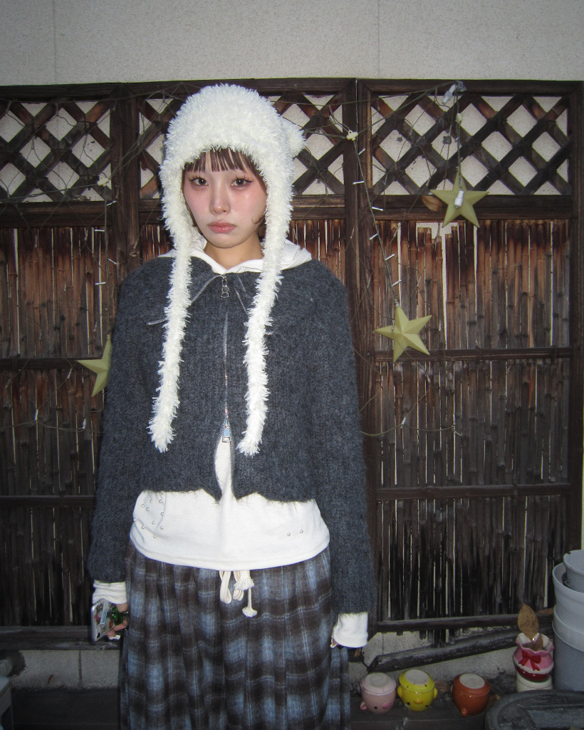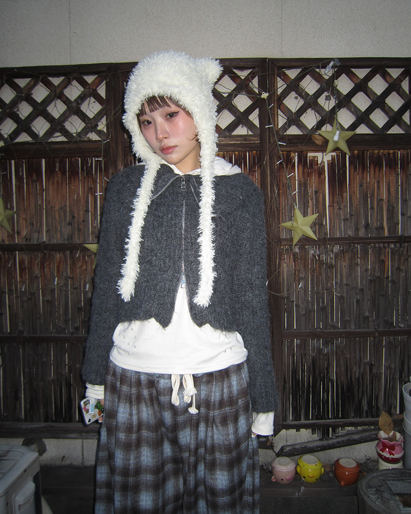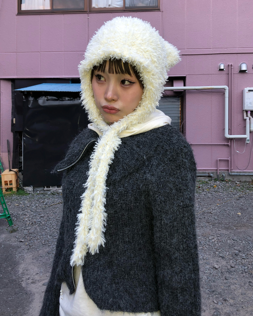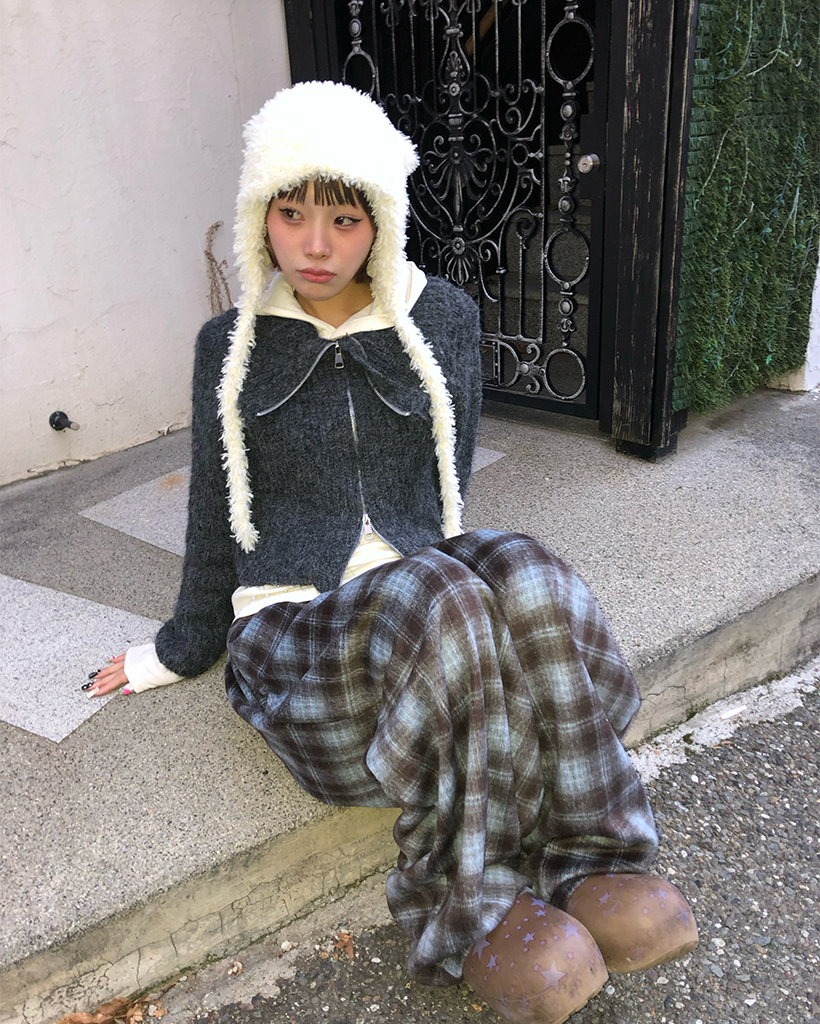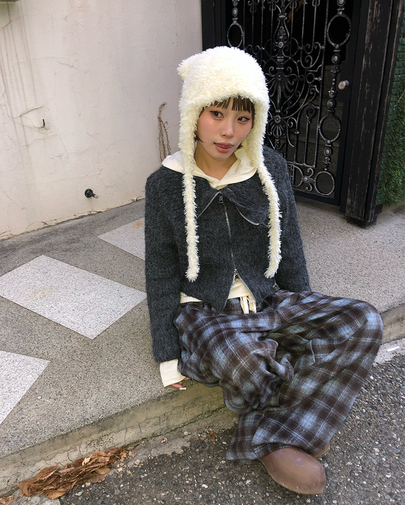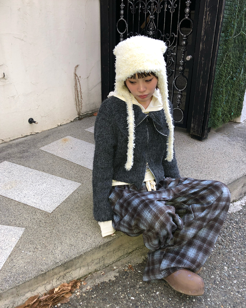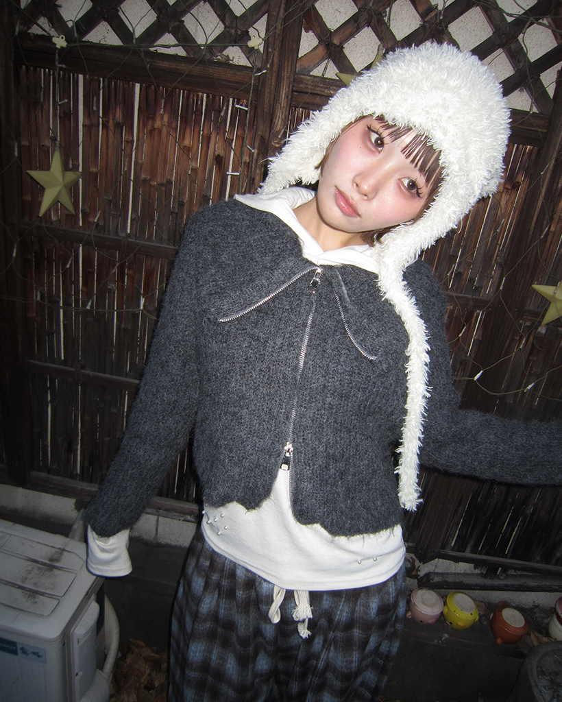 ハイネックダブルジップヘアリーニットジップセーター