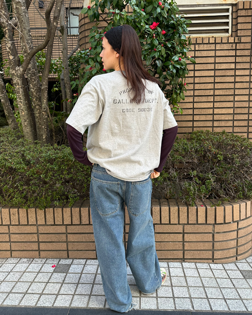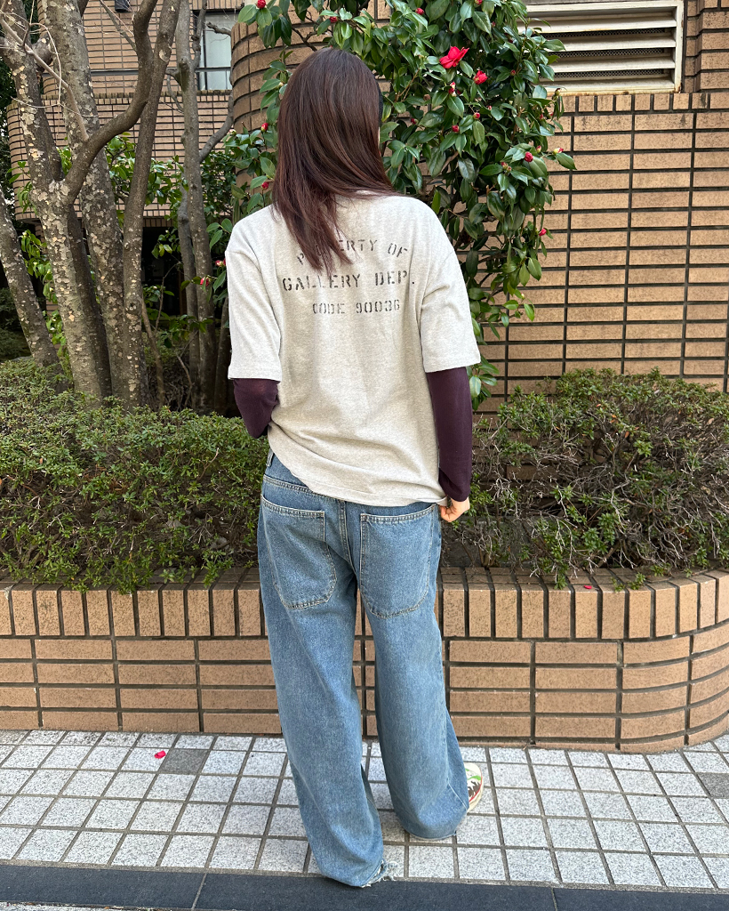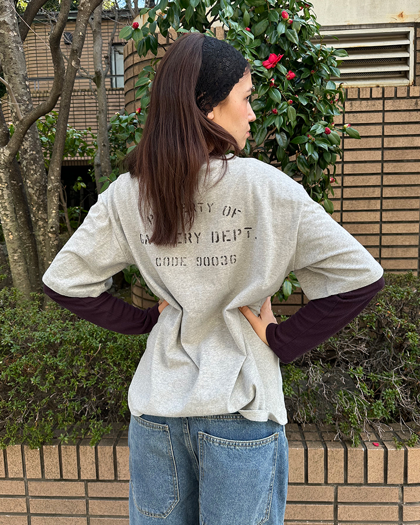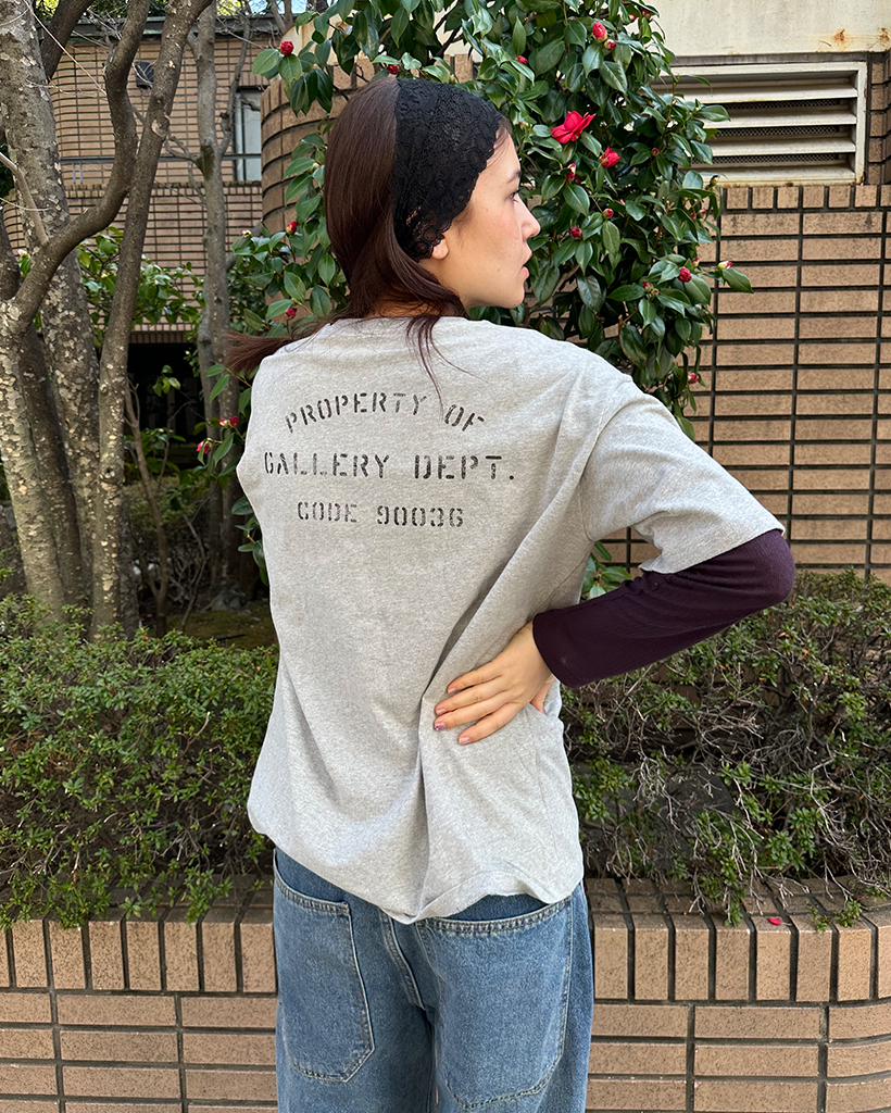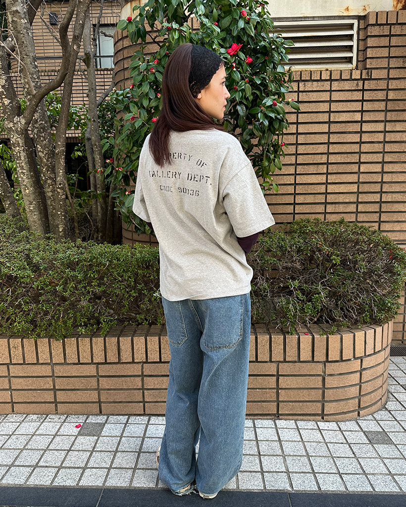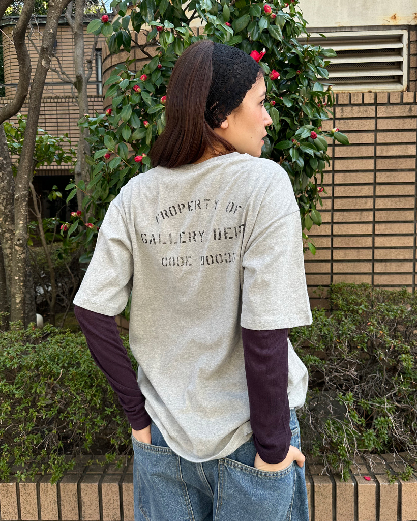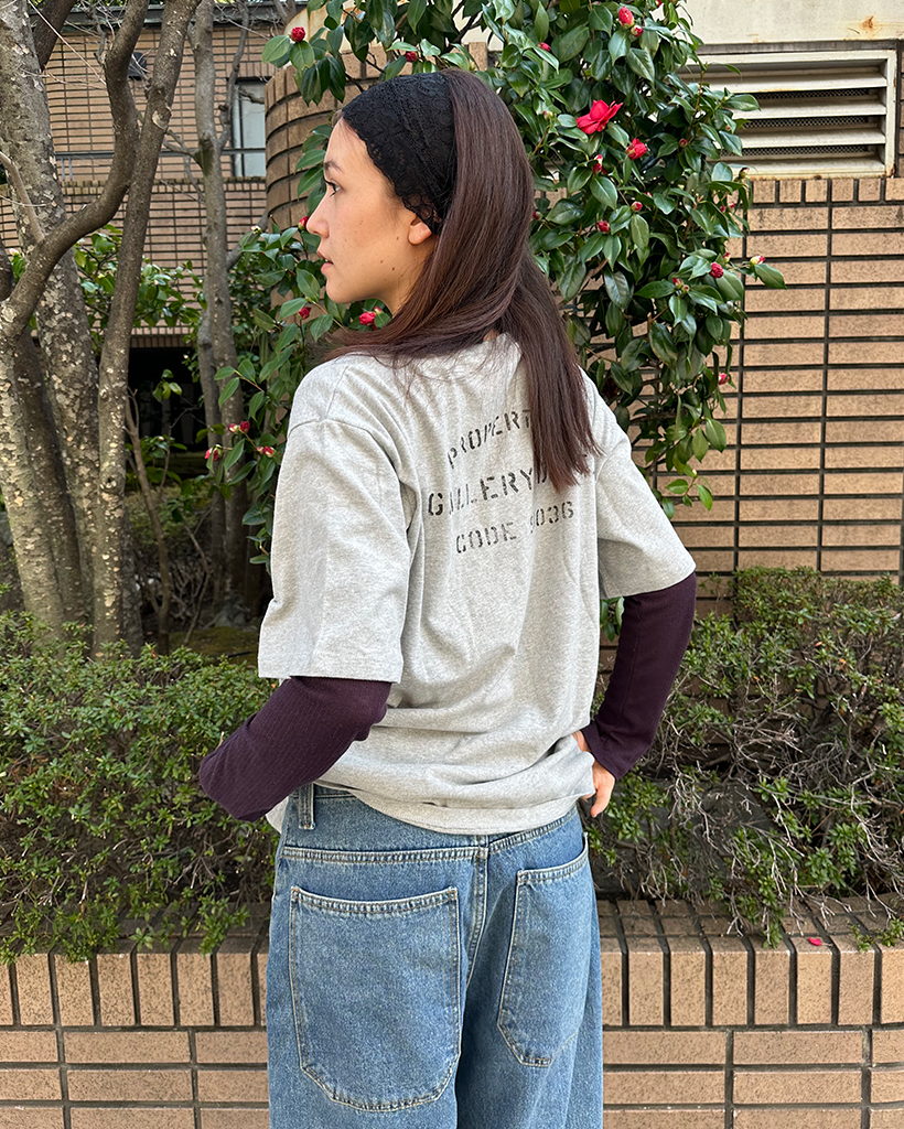 (ユニセックス)バックスタンプレタリングハーフTシャツ