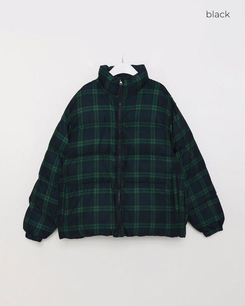 (ユニセックス) チェックパターン中綿ダウンジャンパー