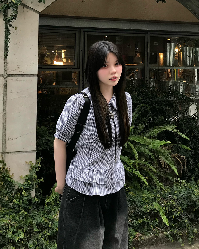 ティアードシャーリングブラウス