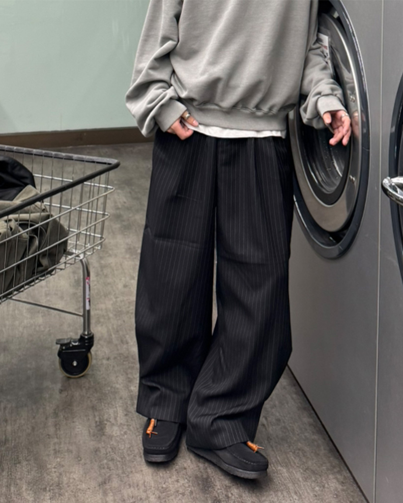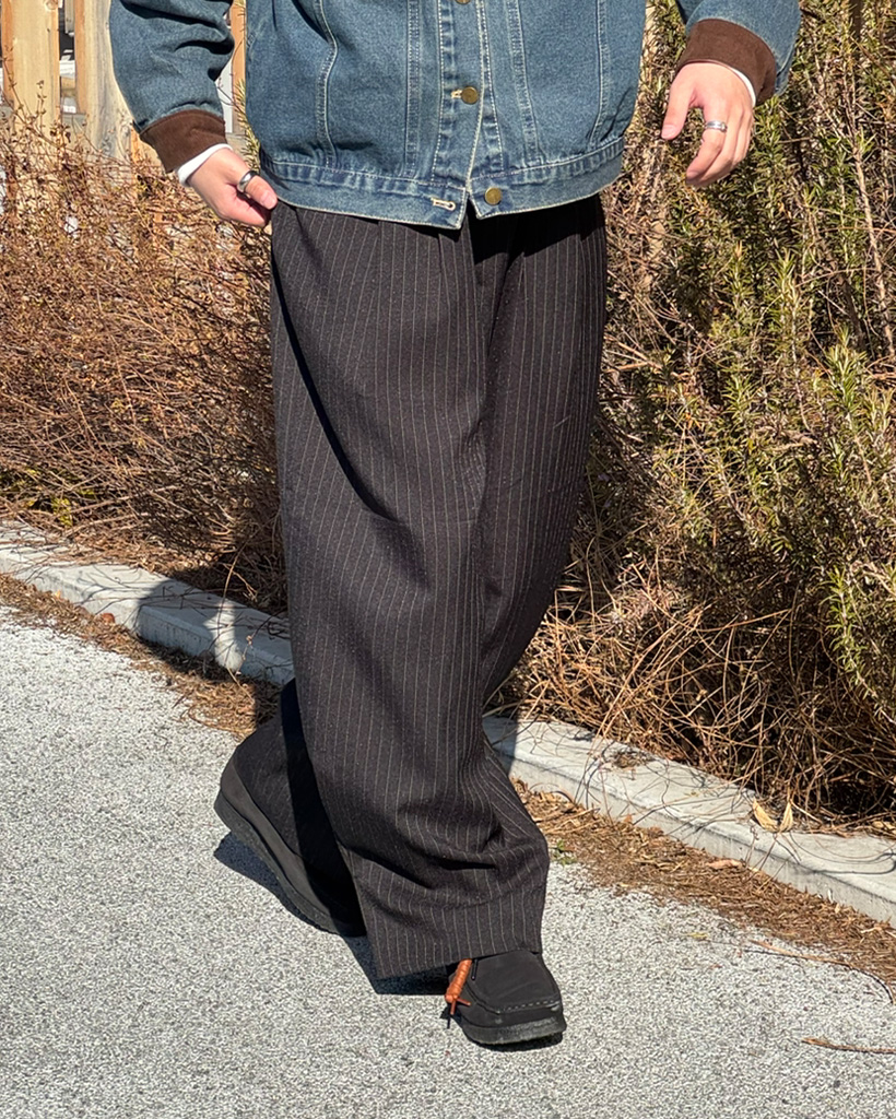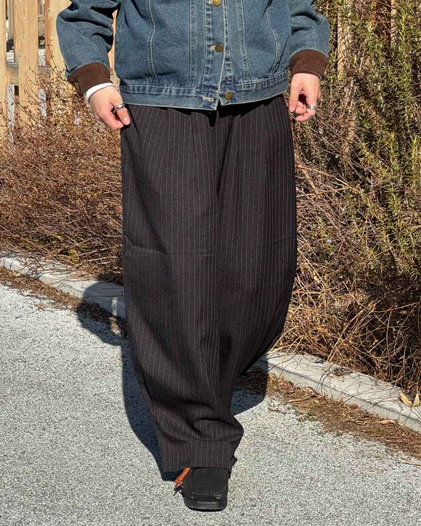 (ユニセックス)ピンタックワイドストライプスラックス