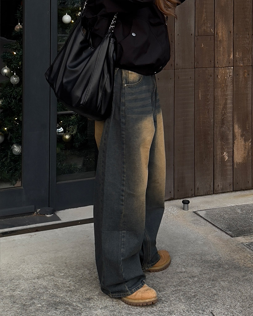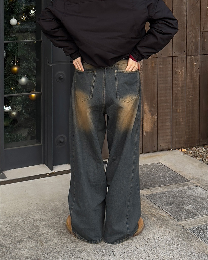 サイドインタックワイドデニムパンツ