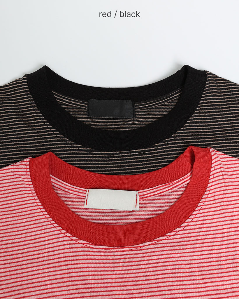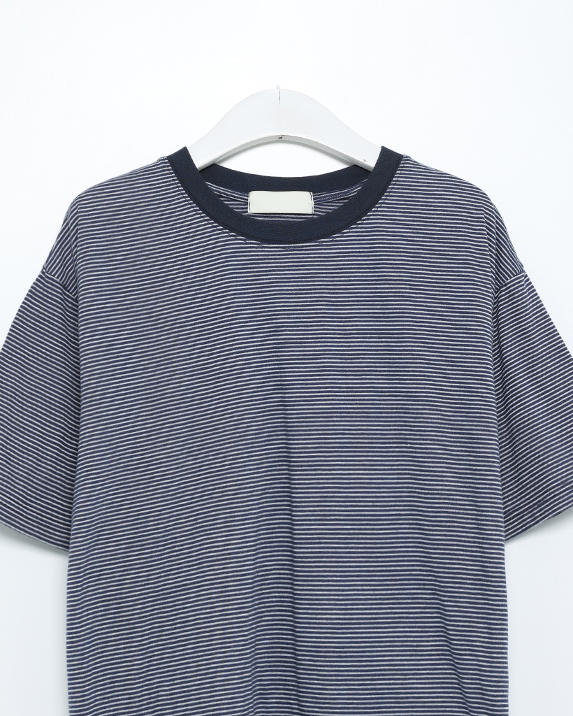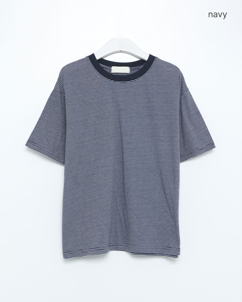 (ユニセックス)ボーダーラウンド半袖Tシャツ