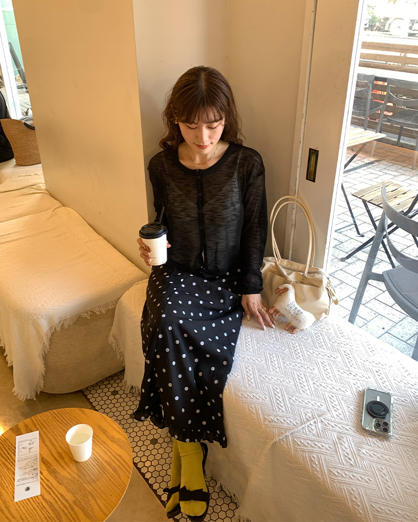 ドットフリルロングスカート
