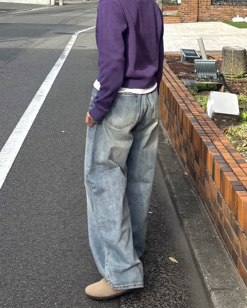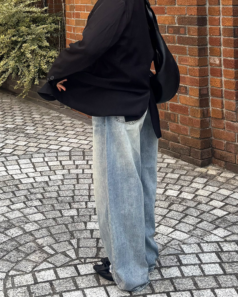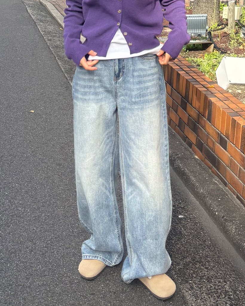 シームステッチワイドデニムパンツ