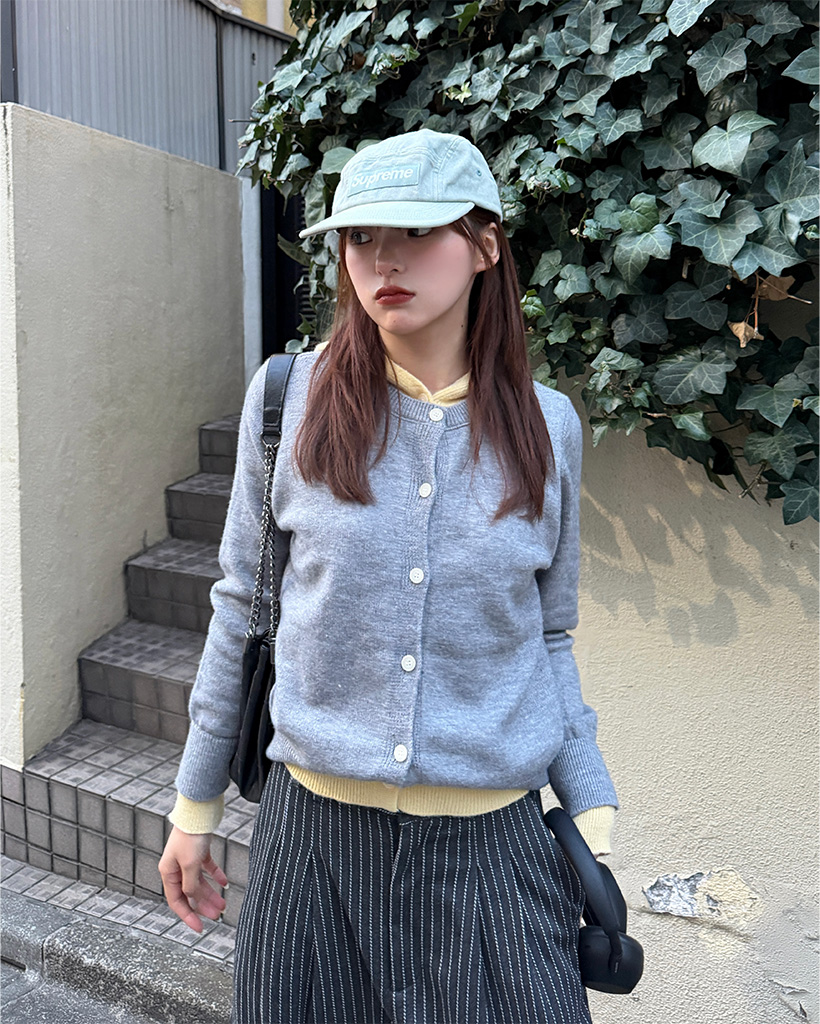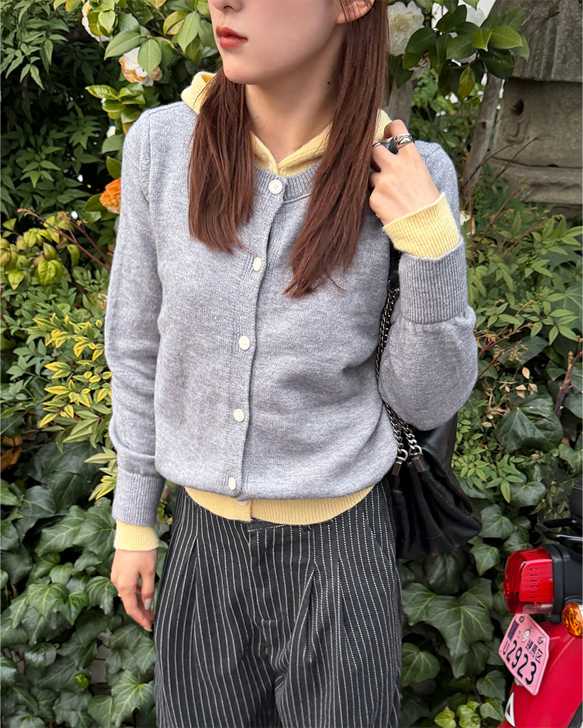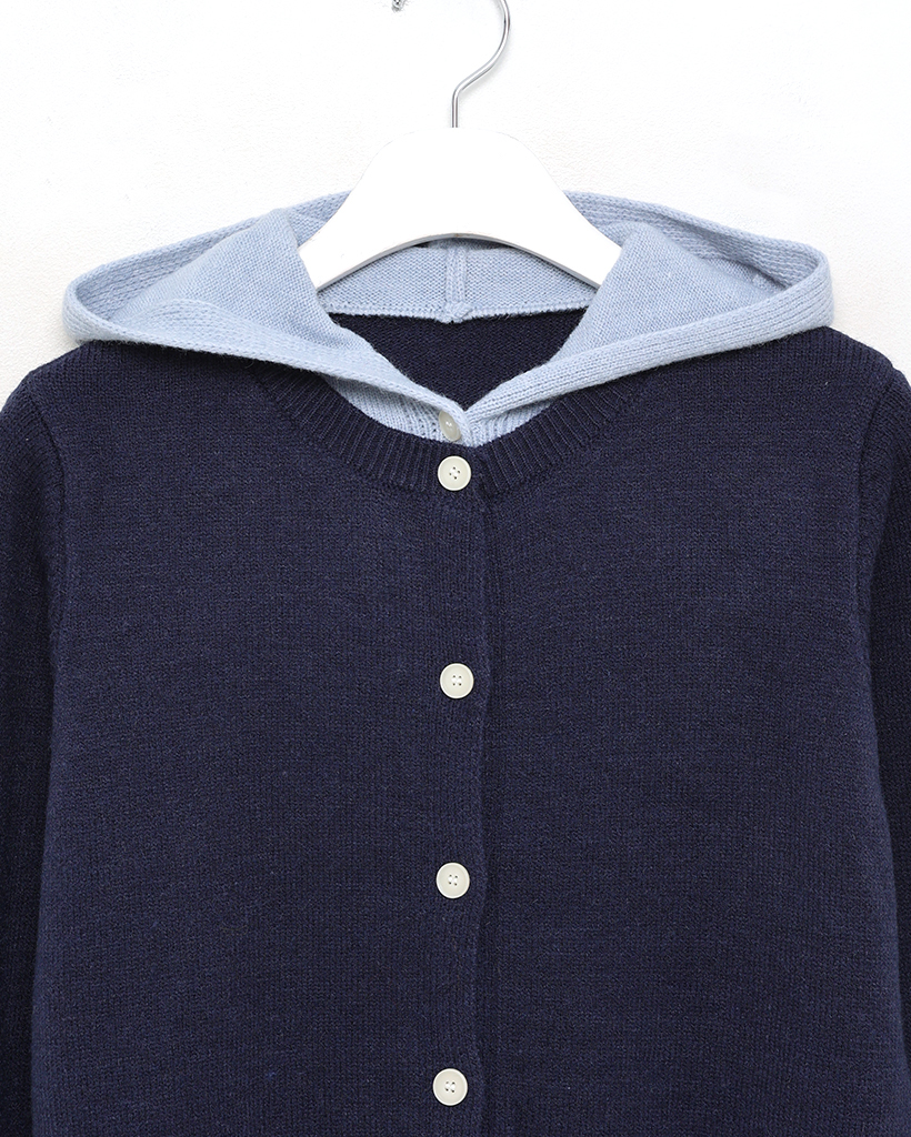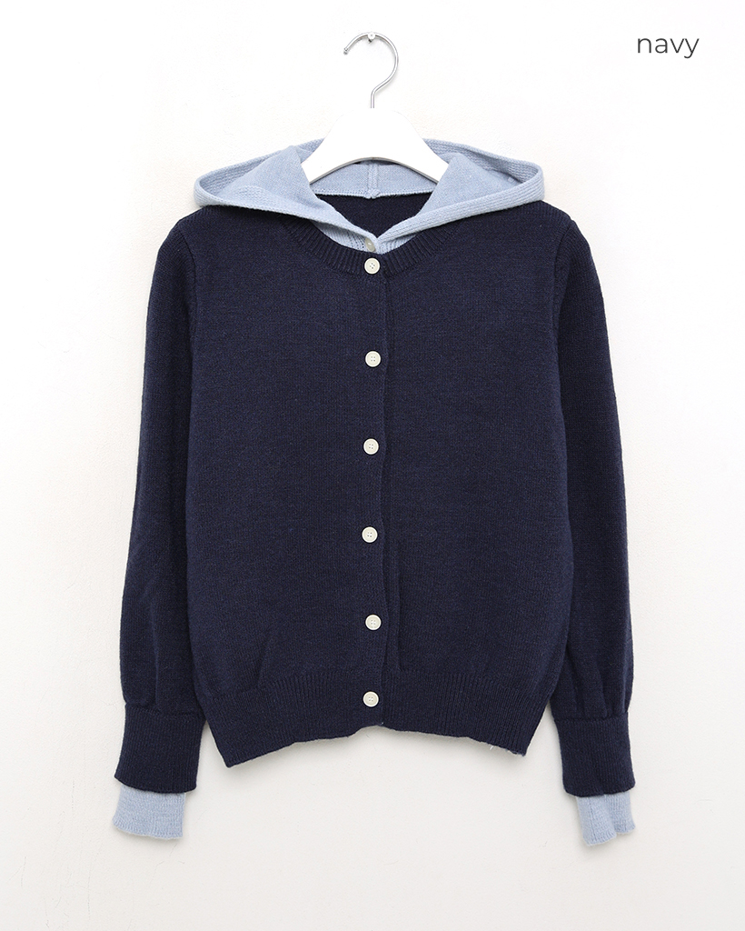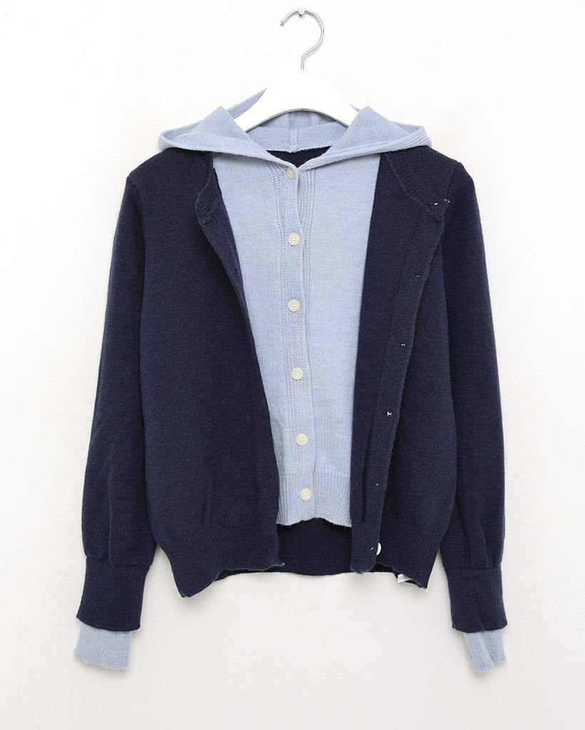 フードレイヤードカーディガン