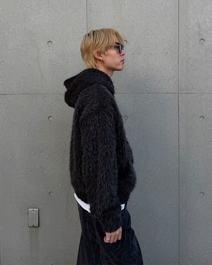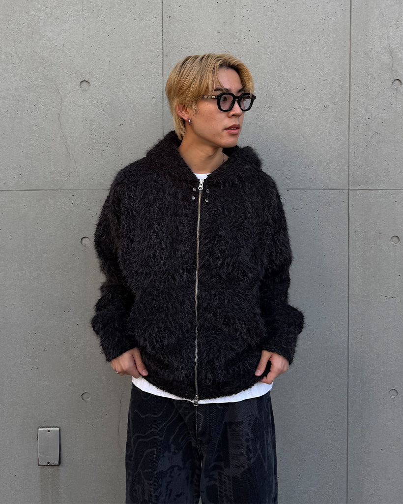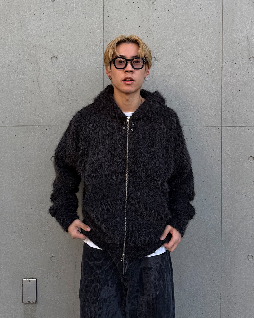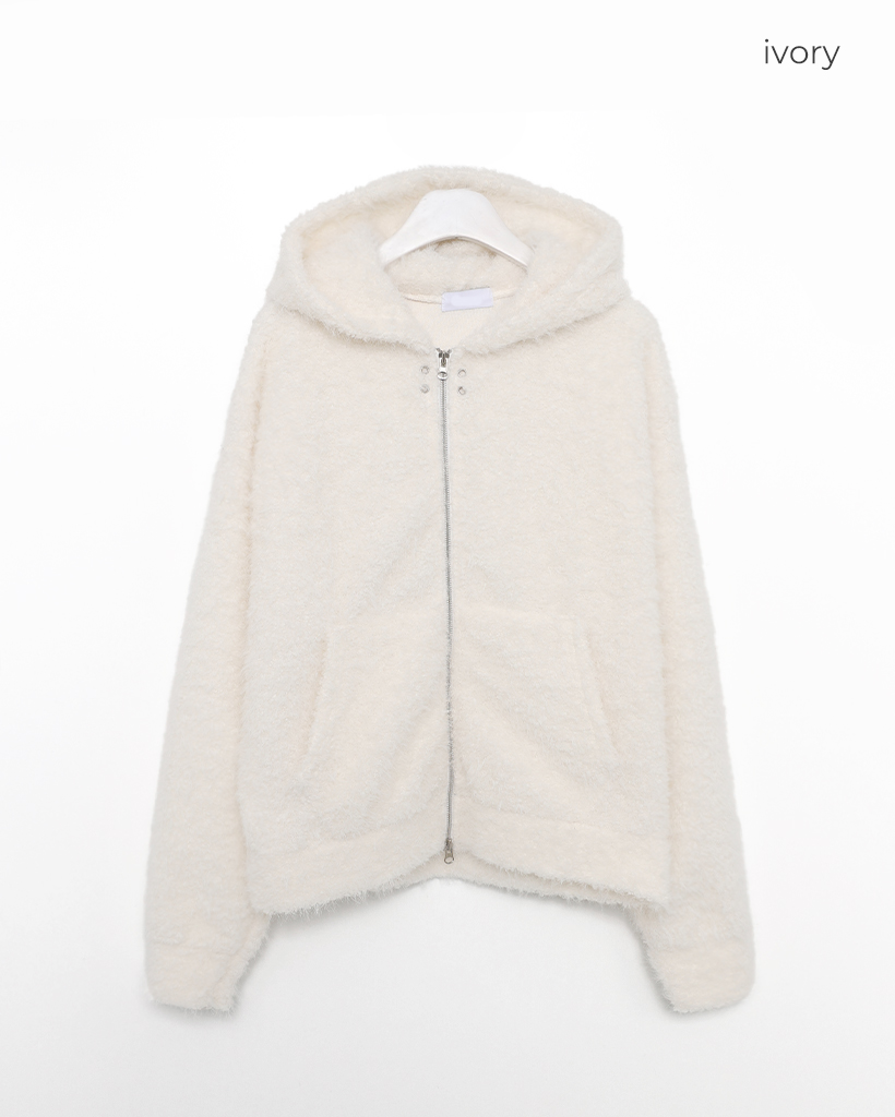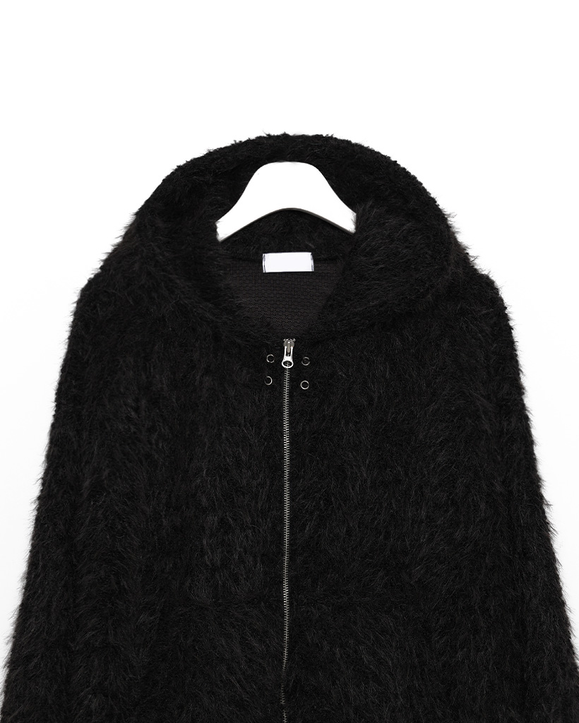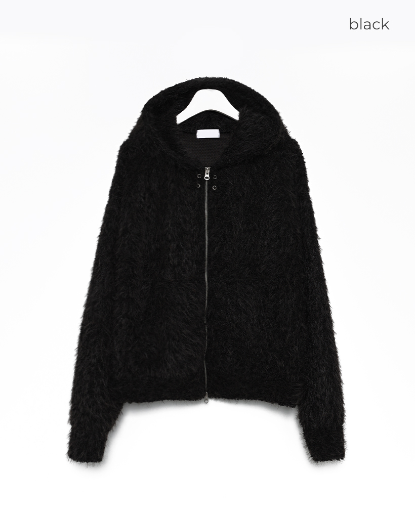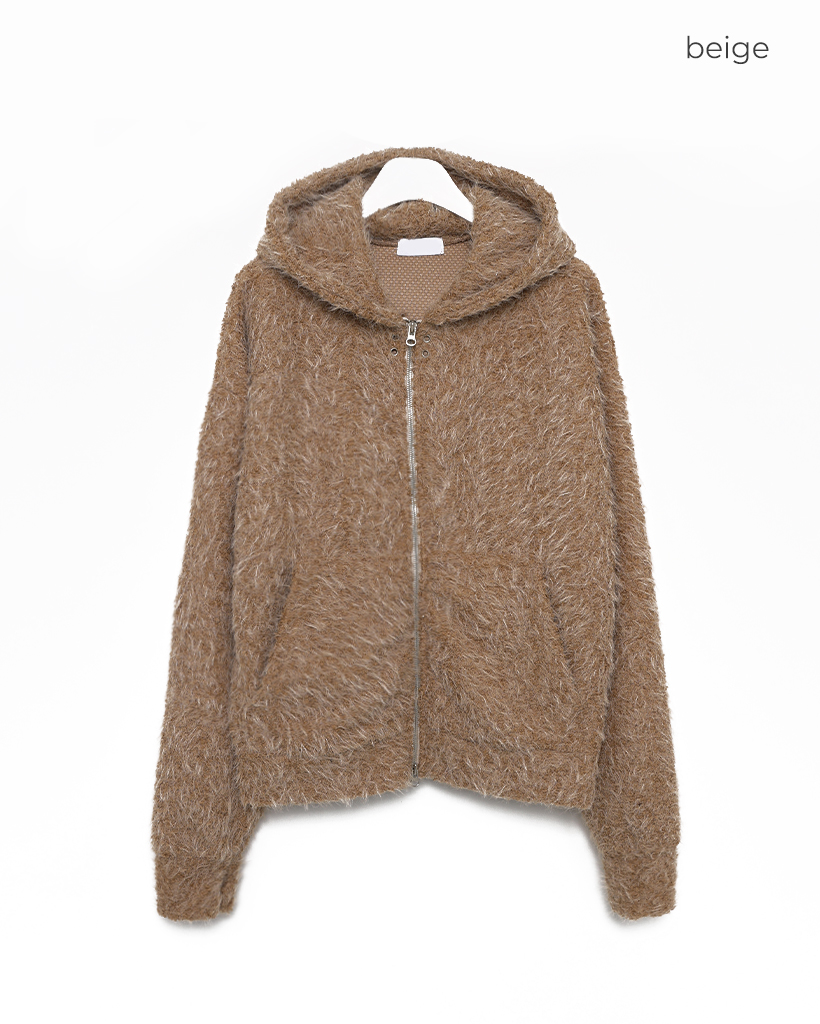 (ユニセックス)ファーファスナーフード付きカーディガン