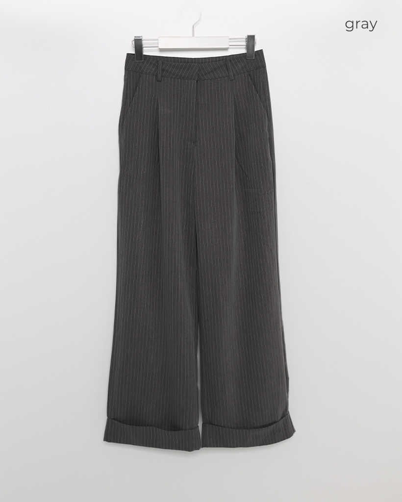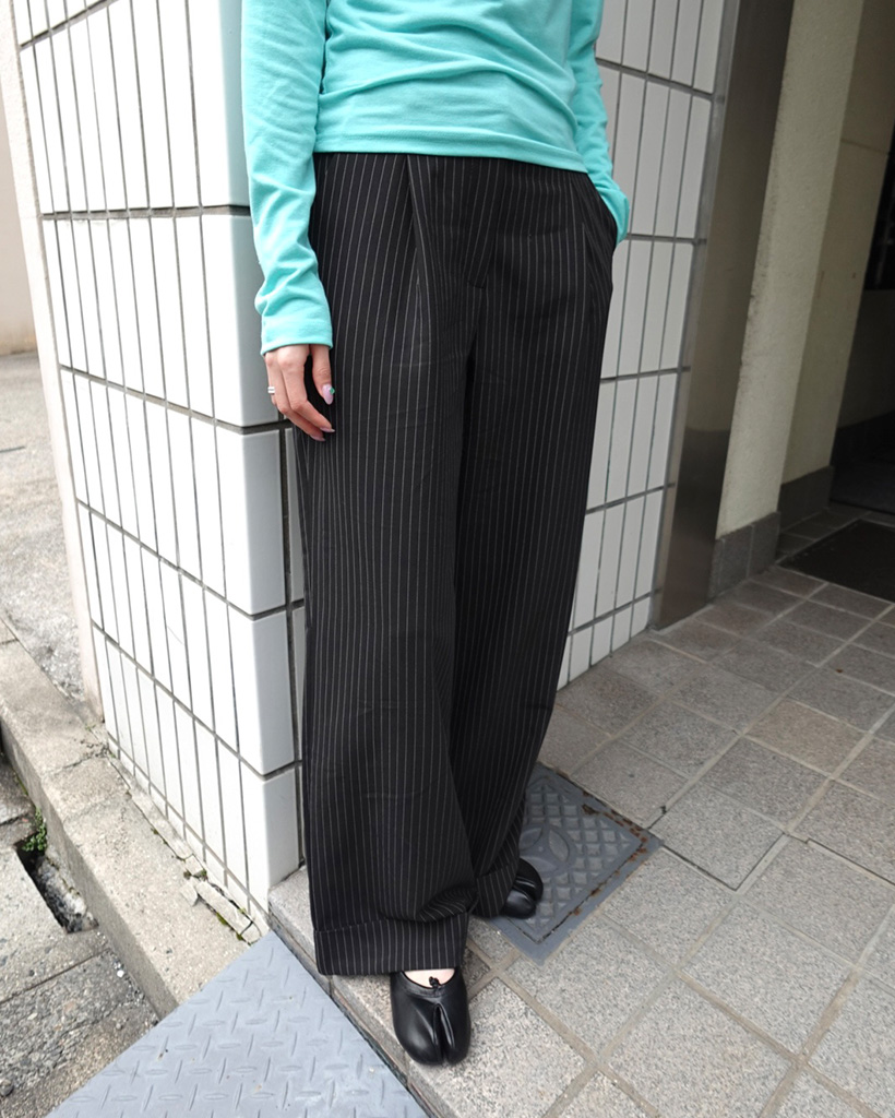 タック入りストライプワイドスラックス