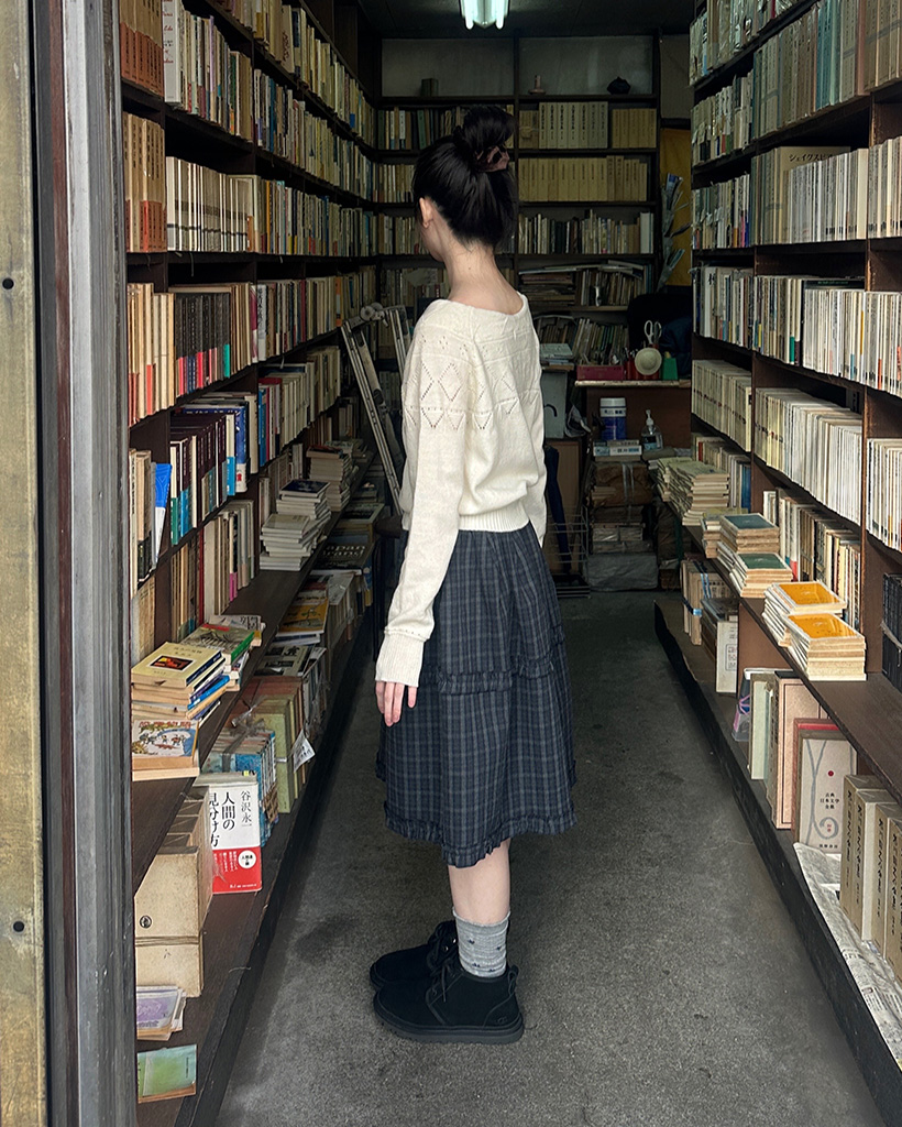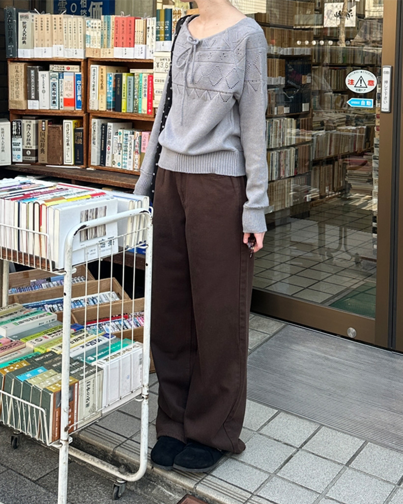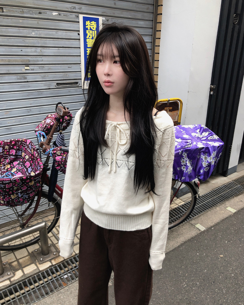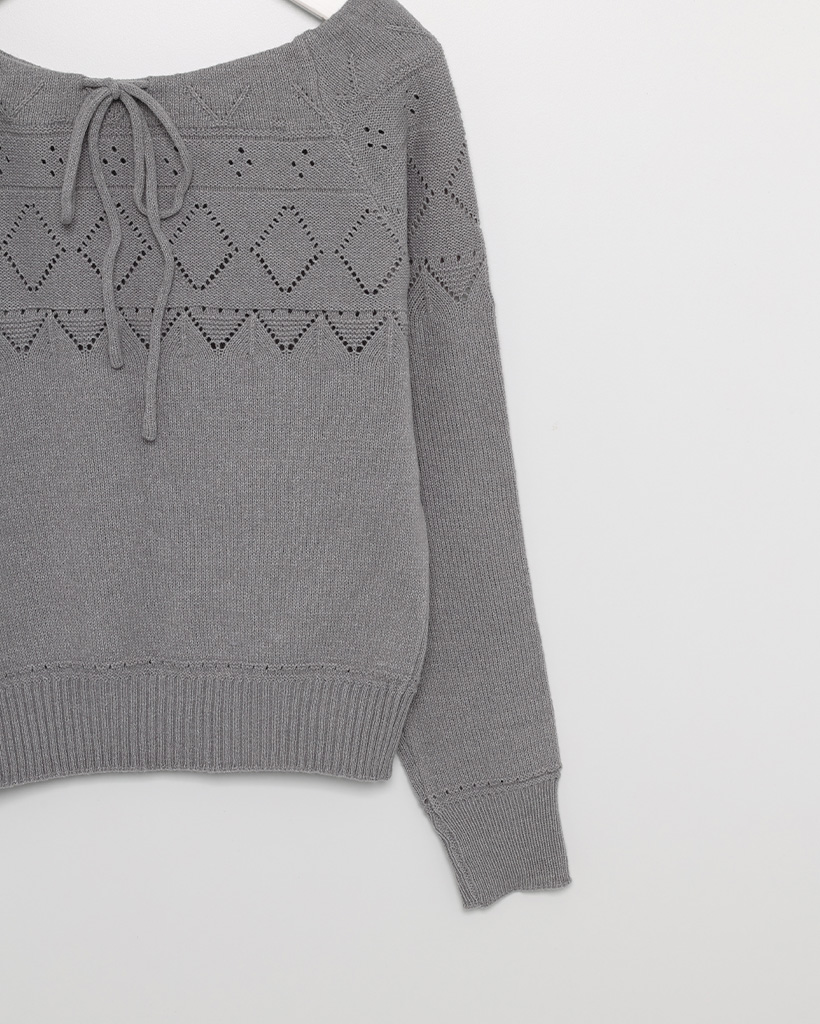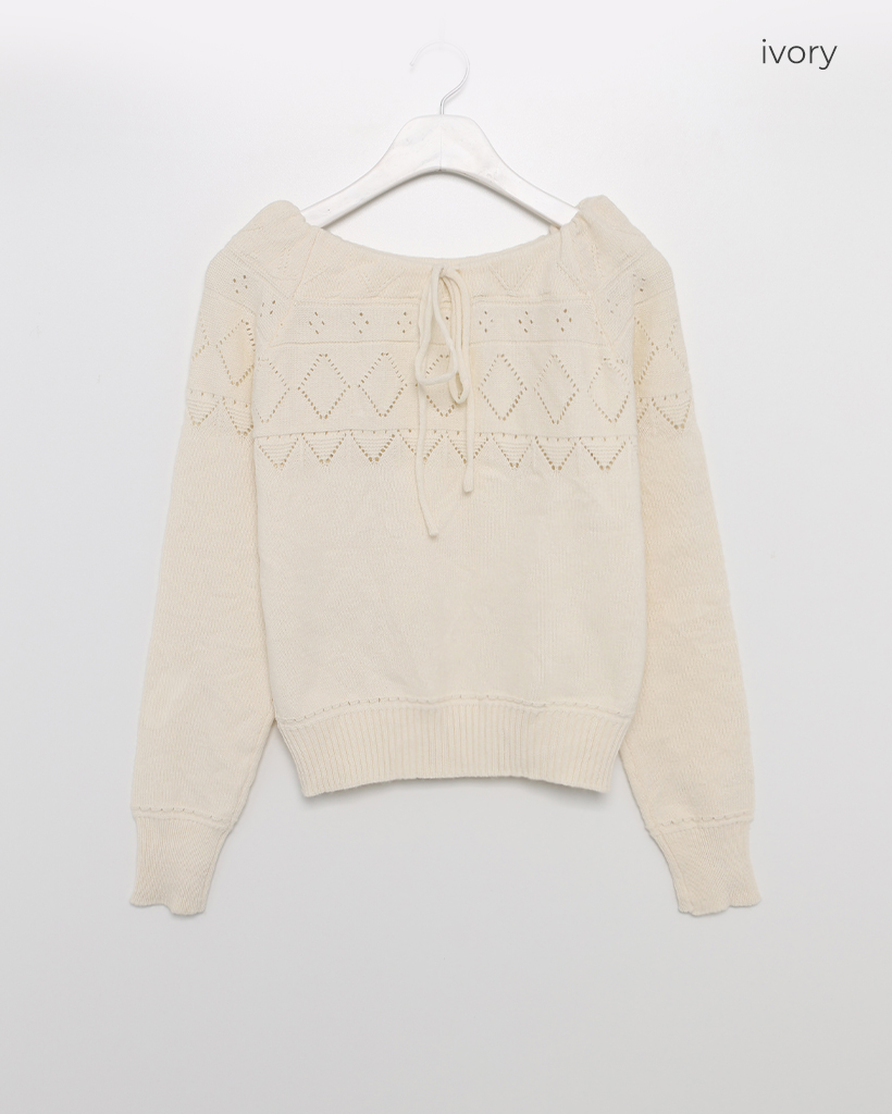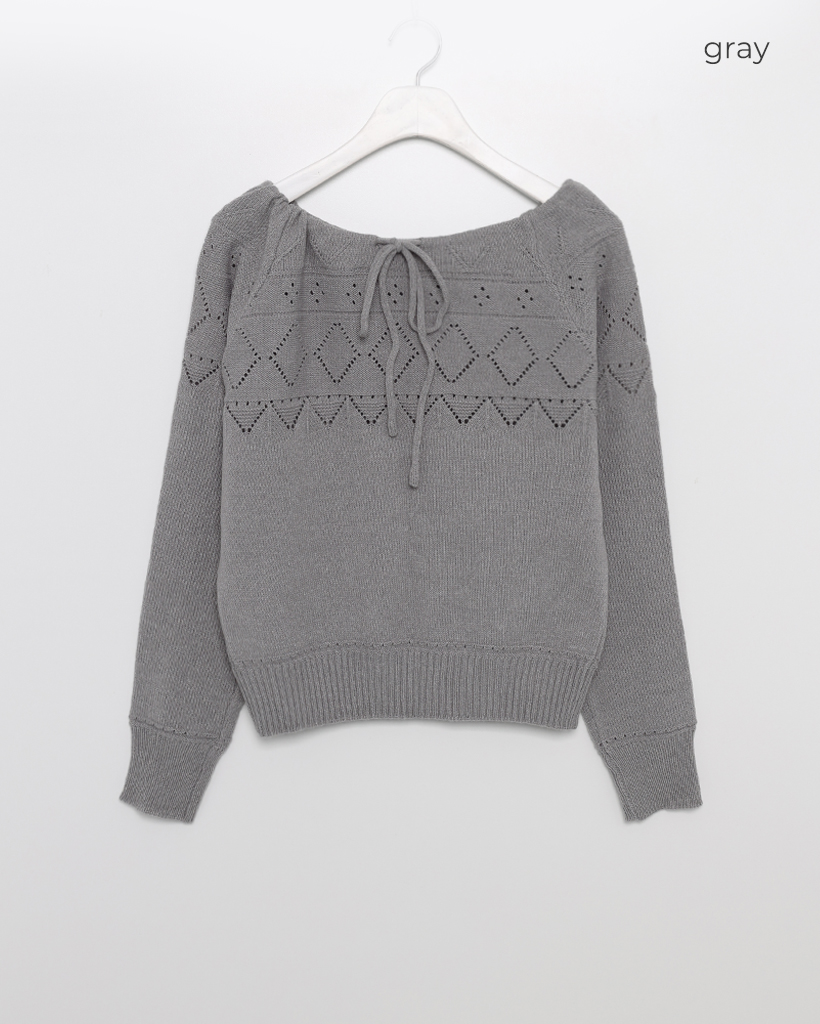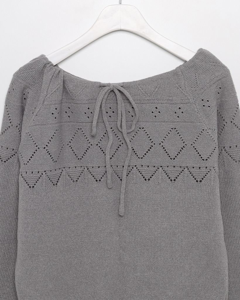 リボンシャーリングポイント長袖ニット