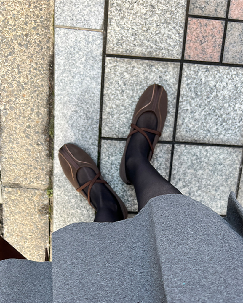 Xストラップフラットバレリーナシューズ