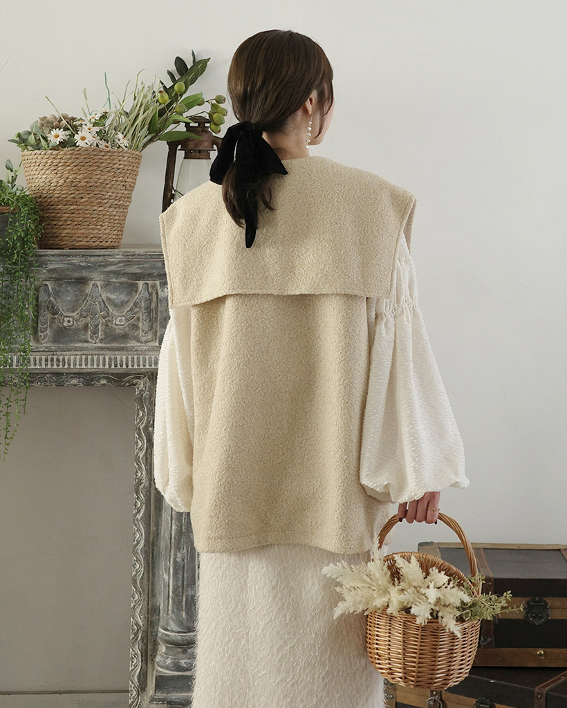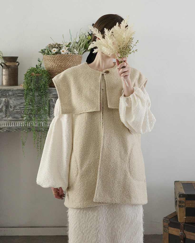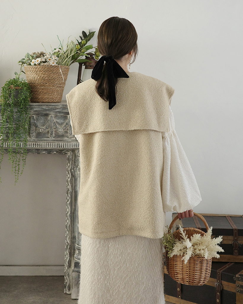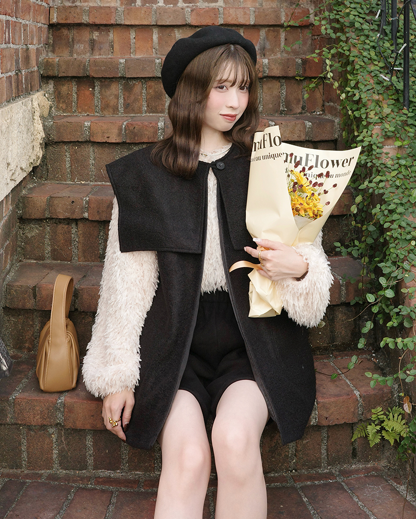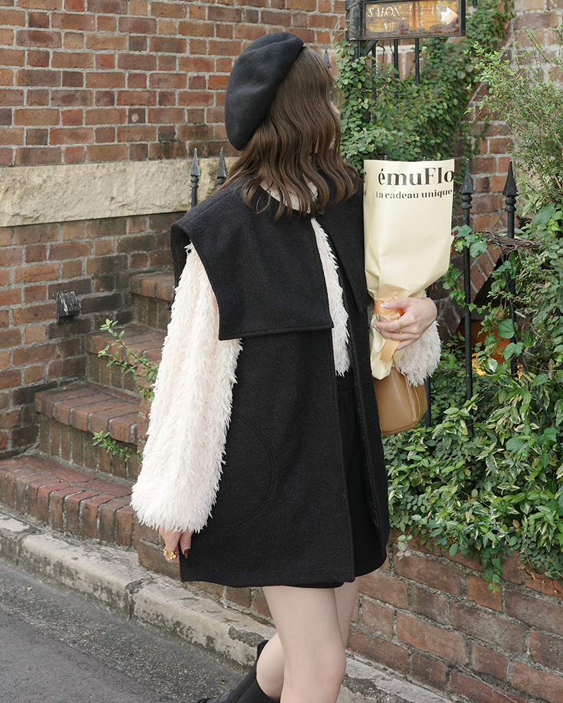 [3回再販](ORIGINAL) ヘアリーウェーブケープボタンベスト