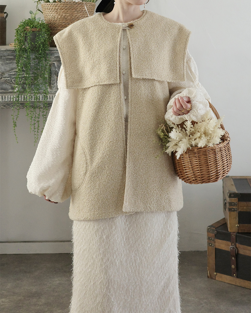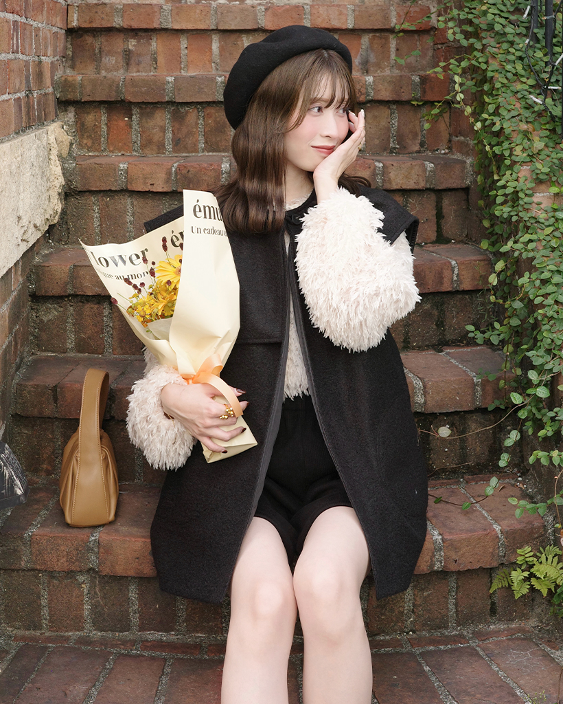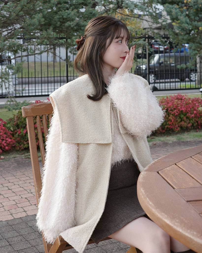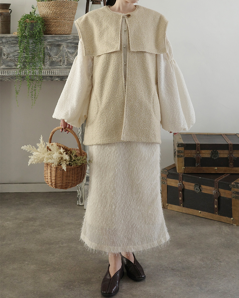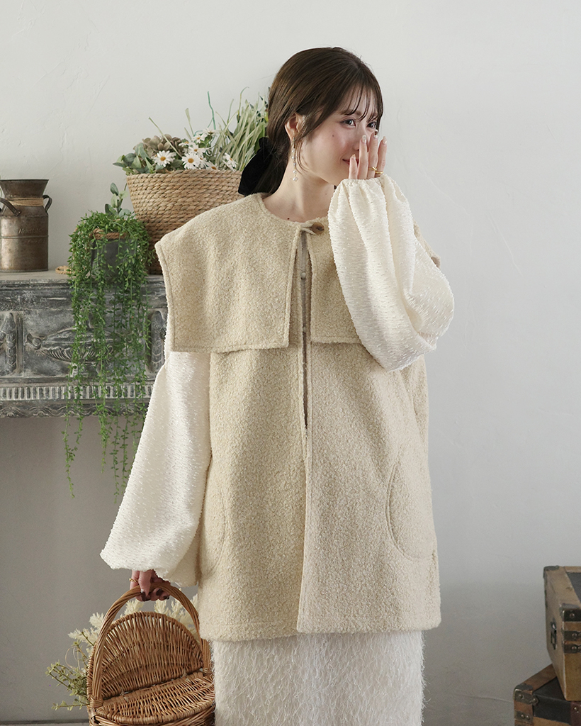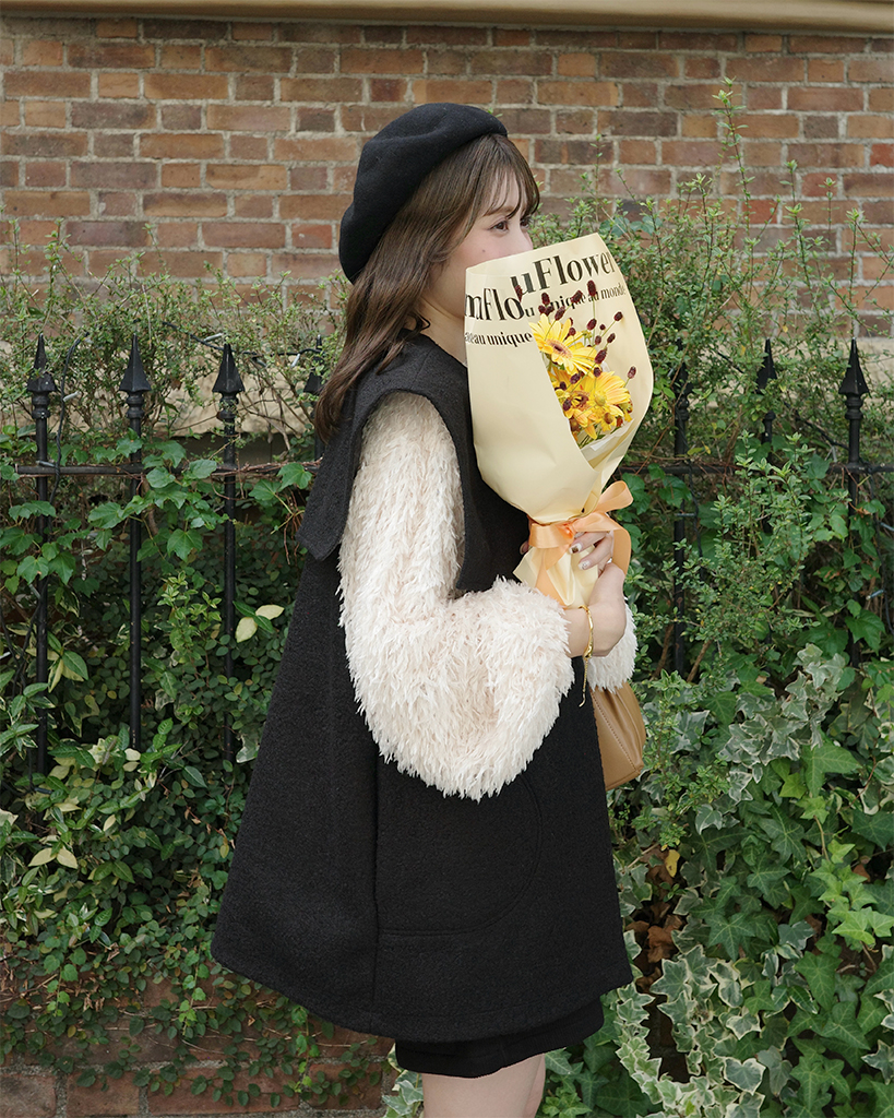 [3回再販](ORIGINAL) ヘアリーウェーブケープボタンベスト